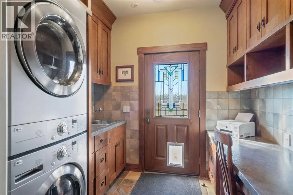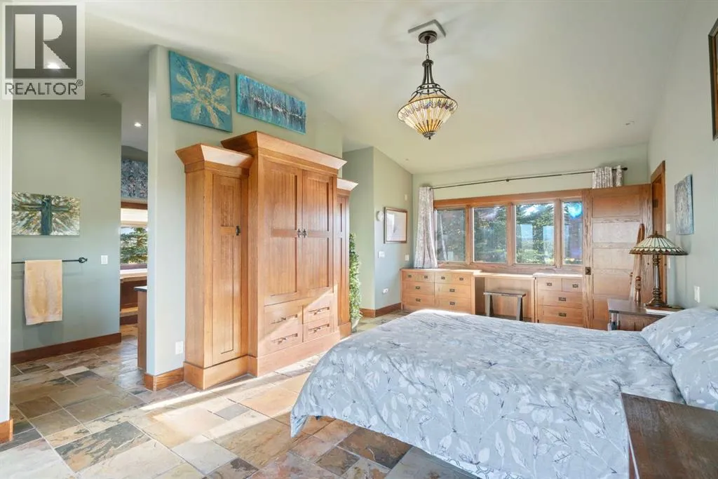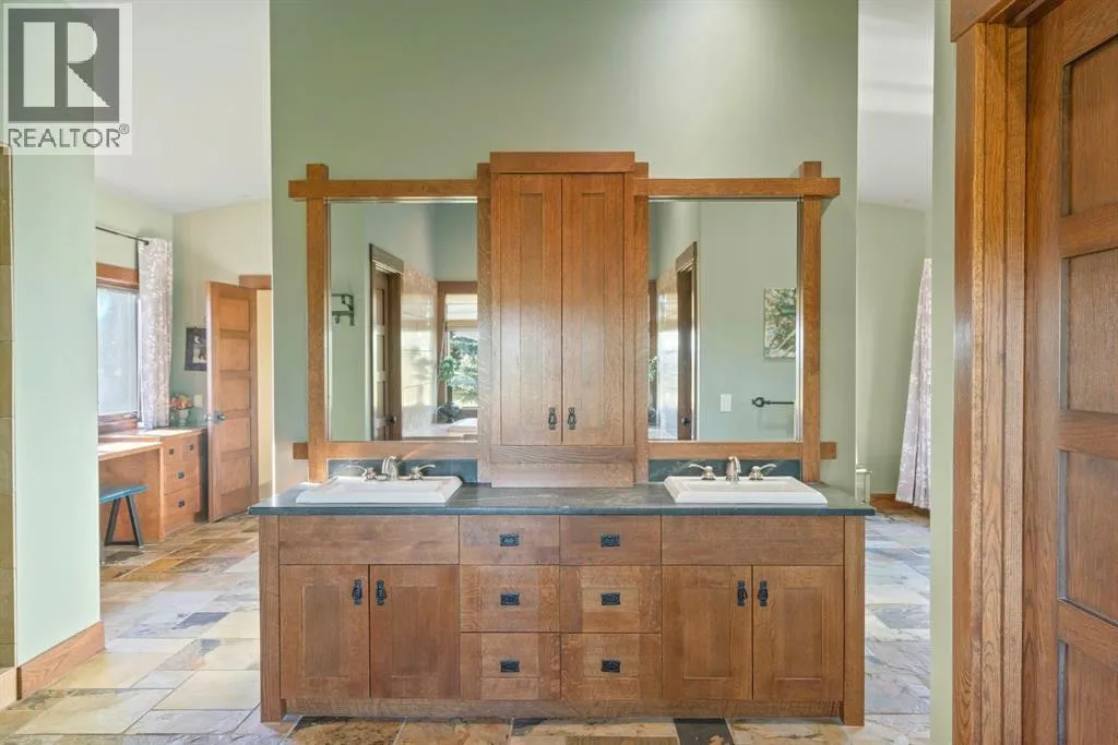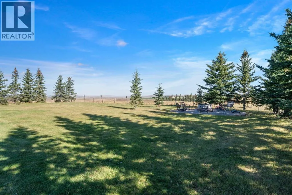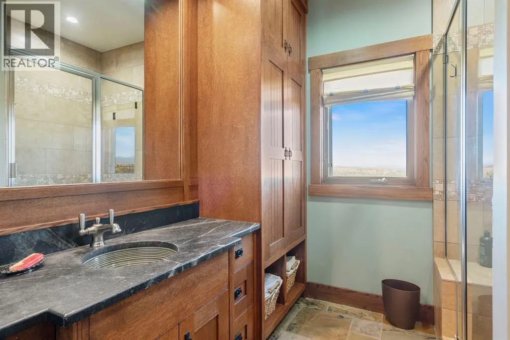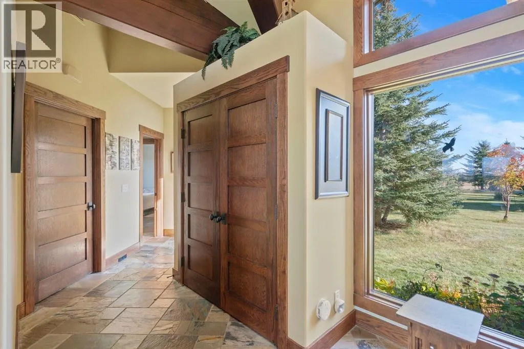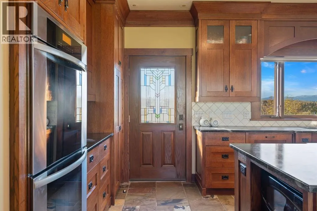 Welcome to 44110 Township Road 242, a one-of-a-kind country estate set on 80 private acres of rolling Alberta prairie, only 15 minutes from Calgary. Blending timeless craftsmanship with breathtaking views, this custom-built 3,388 sq ft bungalow is a true rural retreat. Inside, youâll find vaulted timber-beamed ceilings, expansive windows framing panoramic mountain and valley views, and a massive river rock fireplace that anchors the open-concept living and dining area. The natural slate floors, solid wood doors, and detailed millwork throughout highlight the homeâs enduring quality. The kitchen is both elegant and functional, featuring custom cabinetry, granite counters, a large central island with seating, double wall ovens, a large full height fridge, large full height freezer, gas cooktop, and a stunning handcrafted copper range hood. The primary suite offers a serene escape with treed views and a spa-like ensuite complete with a deep soaker tub overlooking the countryside. Two additional bedrooms, a full bath, and a 2 piece washroom complete the main living quarters. Additional highlights include in-floor heating, a large mudroom, and an oversized attached double garage. Step outside to enjoy the expansive stone patio and firepit area surrounded by mature trees, perfect for evenings under Albertaâs wide-open skies. Wrapping around the South and West sides of the home is a concrete pad, perfect to take in the expansive mountain views, and your dogs can enjoy it as well with the dog run off the back side of the garage. The property also features a 40â x 46â heated shop, offering plenty of workspace and storage. Above the shop is a bonus room with a kitchen, living room, and washroom. With 80 acres of usable land, this property offers endless opportunities, whether youâre looking for recreation, equestrian pursuits, a small-scale agricultural setup, or simply wide-open privacy within easy reach of city amenities. A rare and remarkable acreage where craftsmanship me ets nature, welcome home to 44110 Township Road 242! (id:27476)