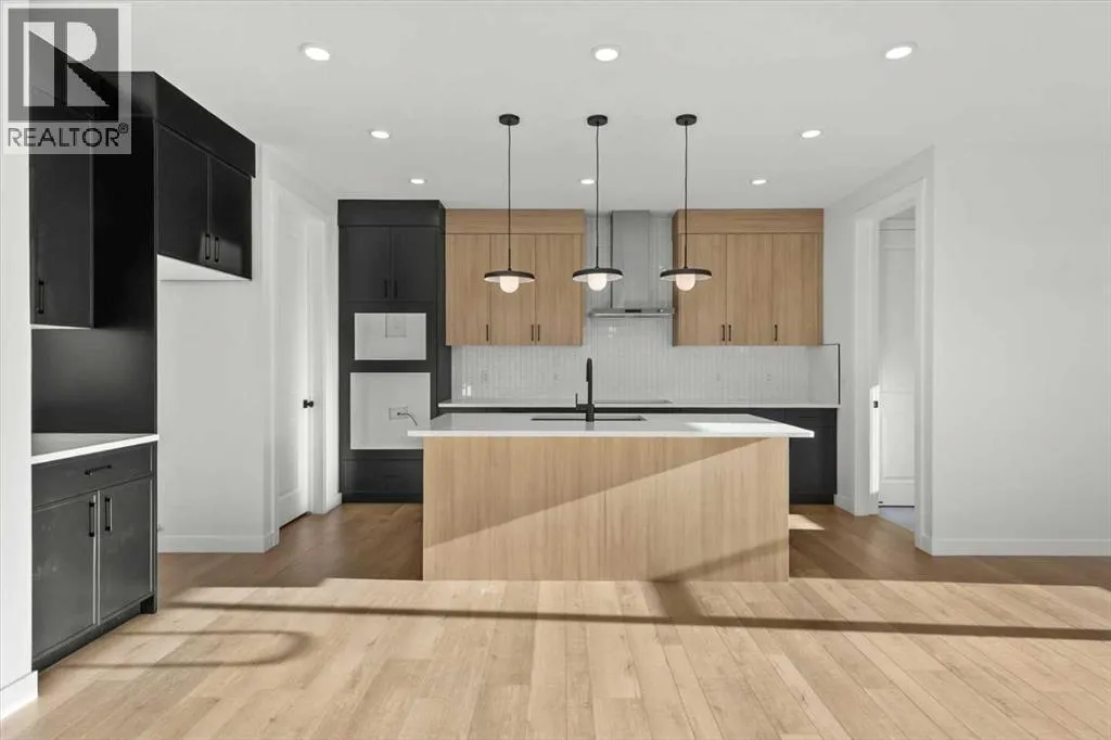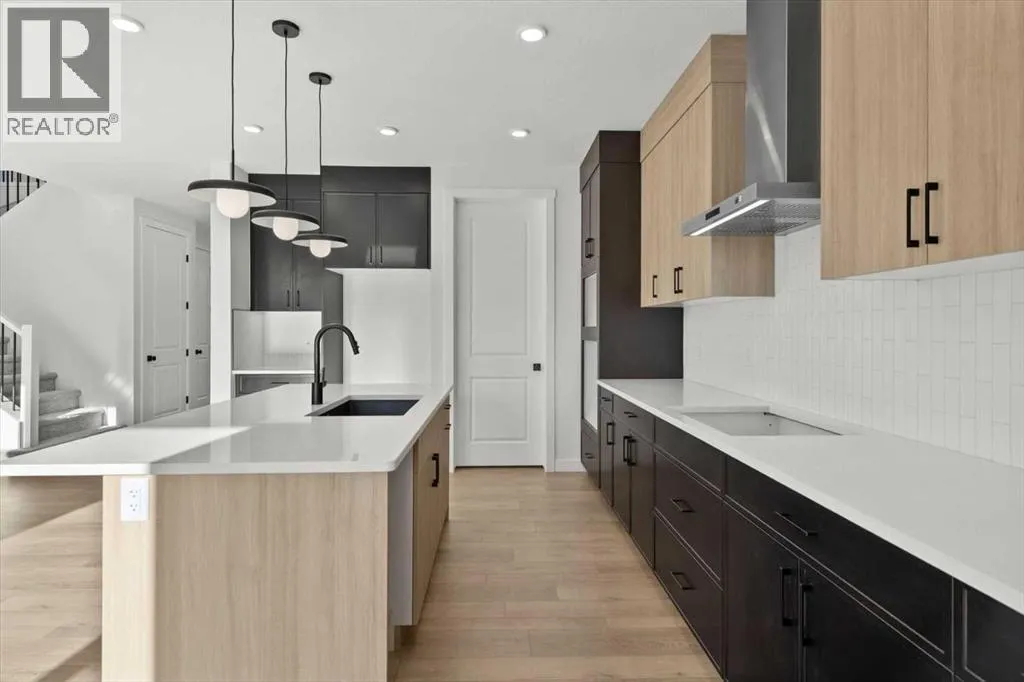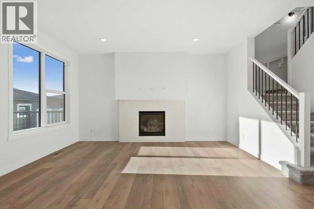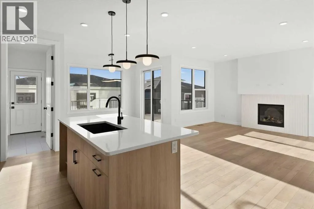 This beautifully designed modern build by Daytona Homes, set on a future lake facing street in Harmony, offers over 2100 sq. ft of thoughtfully designed living space. With exceptional curb appeal, striking black-and-white exterior accents, and a detached triple-car garage, this home makes a bold statement from the moment you arrive. Step inside to a bright, inviting interior with wide plank flooring throughout the main level. A private office is perfectly positioned by the front entrance, while the main-floor laundry and tucked-away half bath enhance everyday convenience. The heart of the home â the open-concept kitchen and living area â is flooded with natural light from expansive windows. The kitchen features natural wood cabinetry paired with sleek black accents, stainless steel appliances, quartz countertops, subway tile backsplash, and a large walk-in pantry. The living room offers a cozy fireplace with neutral, thoughtfully selected tile, seamlessly connecting to the expansive back deck. The rear yard is an open canvas ready for your personal landscaping ideas. Upstairs, the floor plan is designed for both privacy and functionality. A bright bonus room faces the future lake, while the primary suite is a true retreat, complete with a spacious walk-in closet and a luxurious five-piece ensuite with modern tile, freestanding tub, quartz countertops, and sleek black cabinetry and hardware. Two additional well-sized bedrooms share a four-piece bathroom, making the upper level ideal for family living. The basement is undeveloped, offering ample space to create a customized entertainment, recreation, or additional living area. Harmony is a vibrant, award-winning community known for its family-friendly atmosphere, scenic walking and biking trails, parks, playgrounds, and future lake access. Residents enjoy proximity to top-rated schools, the Rocky Mountains, shopping, dining, and recreational amenities, as well as community events that foster a strong neighbourhood spi rit.This home perfectly blends modern living, thoughtful design, and a vibrant community lifestyle in one of Calgaryâs most sought-after neighbourhoods. (id:27476)