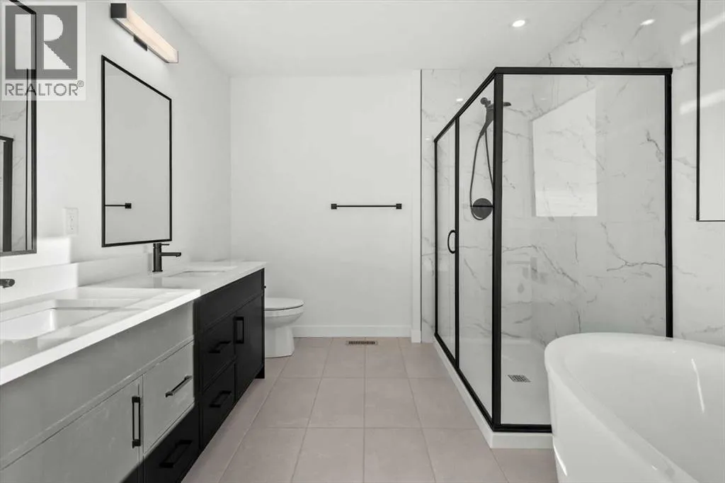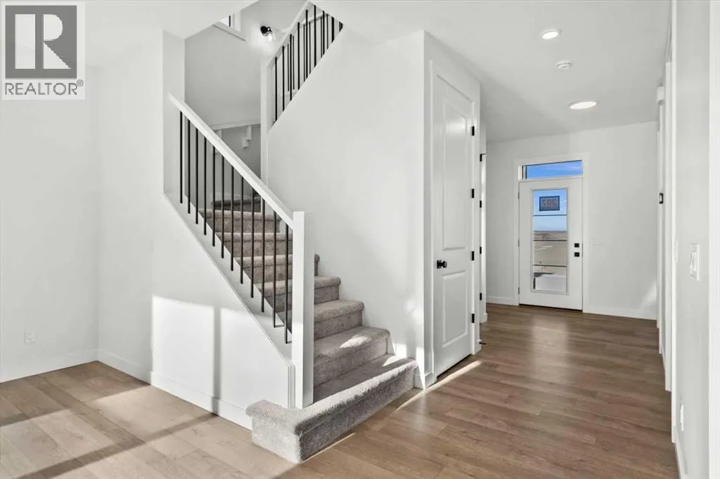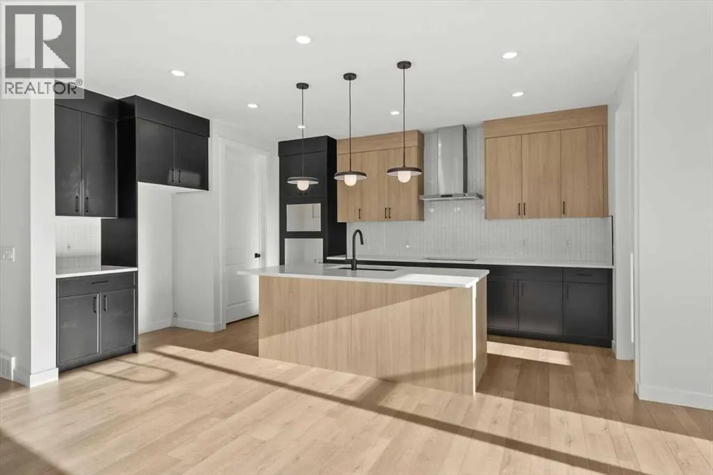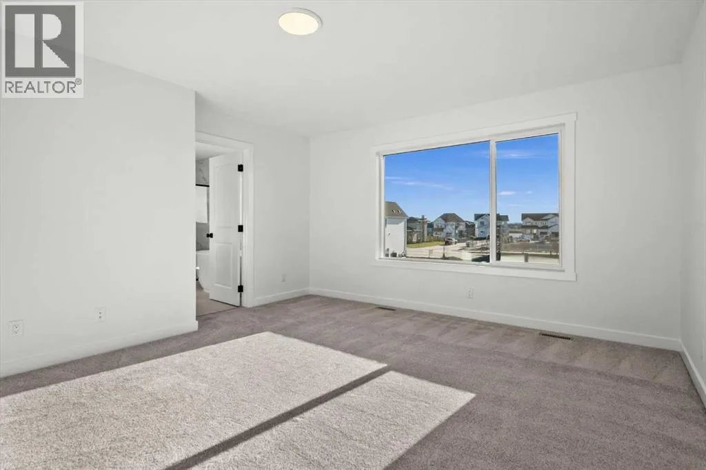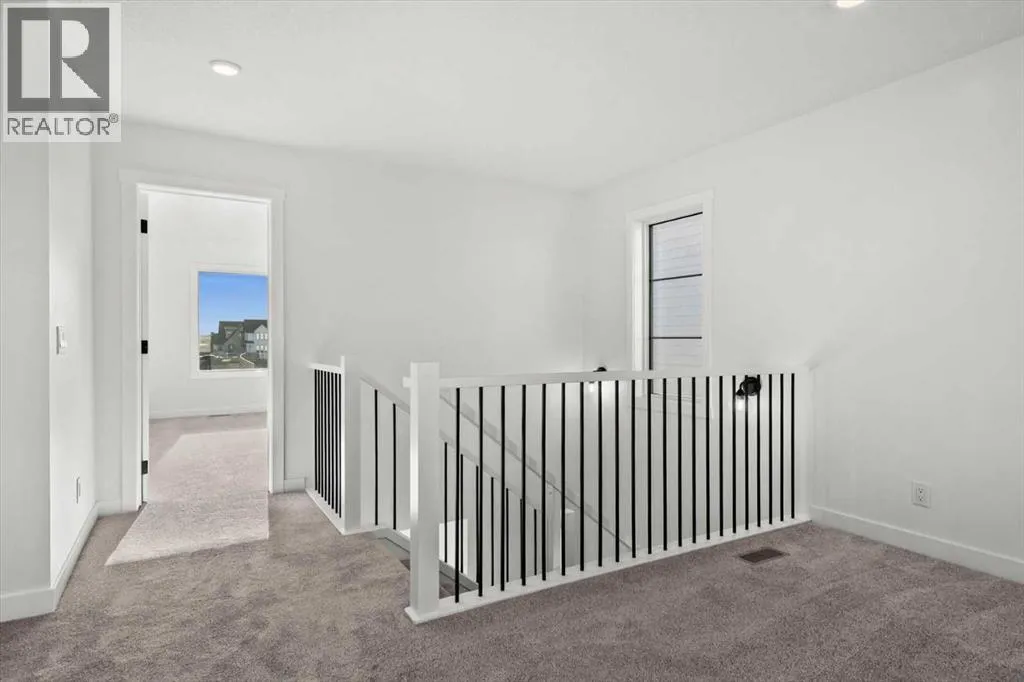 This beautifully designed modern build by Daytona Homes, set on a future lake facing street in Harmony, offers over 2100 sq. ft of thoughtfully designed living space. With exceptional curb appeal, striking black-and-white exterior accents, and a detached triple-car garage, this home makes a bold statement from the moment you arrive. Step inside to a bright, inviting interior with wide plank flooring throughout the main level. A private office is perfectly positioned by the front entrance, while the main-floor laundry and tucked-away half bath enhance everyday convenience. The heart of the home â the open-concept kitchen and living area â is flooded with natural light from expansive windows. The kitchen features natural wood cabinetry paired with sleek black accents, stainless steel appliances, quartz countertops, subway tile backsplash, and a large walk-in pantry. The living room offers a cozy fireplace with neutral, thoughtfully selected tile, seamlessly connecting to the expansive back deck. The rear yard is an open canvas ready for your personal landscaping ideas. Upstairs, the floor plan is designed for both privacy and functionality. A bright bonus room faces the future lake, while the primary suite is a true retreat, complete with a spacious walk-in closet and a luxurious five-piece ensuite with modern tile, freestanding tub, quartz countertops, and sleek black cabinetry and hardware. Two additional well-sized bedrooms share a four-piece bathroom, making the upper level ideal for family living. The basement is undeveloped, offering ample space to create a customized entertainment, recreation, or additional living area. Harmony is a vibrant, award-winning community known for its family-friendly atmosphere, scenic walking and biking trails, parks, playgrounds, and future lake access. Residents enjoy proximity to top-rated schools, the Rocky Mountains, shopping, dining, and recreational amenities, as well as community events that foster a strong neighbourhood spi rit.This home perfectly blends modern living, thoughtful design, and a vibrant community lifestyle in one of Calgaryâs most sought-after neighbourhoods. (id:27476)