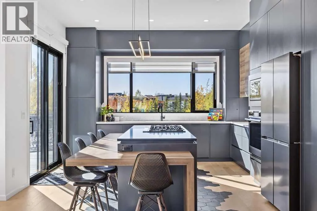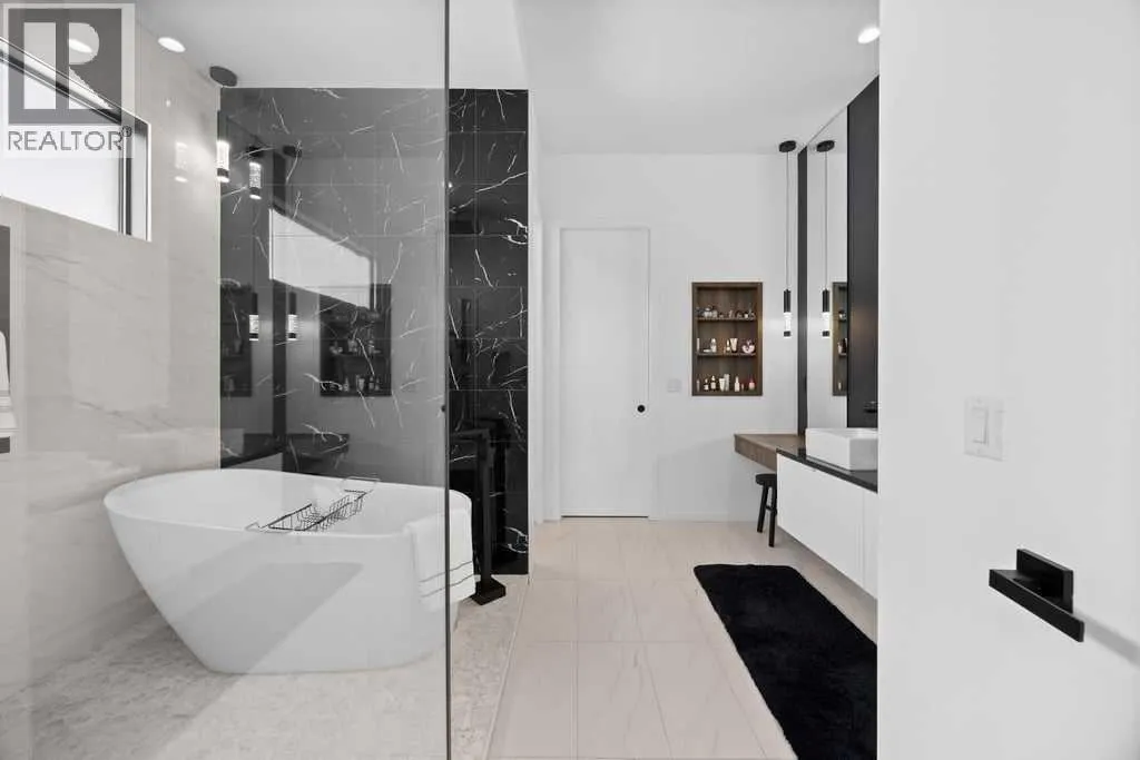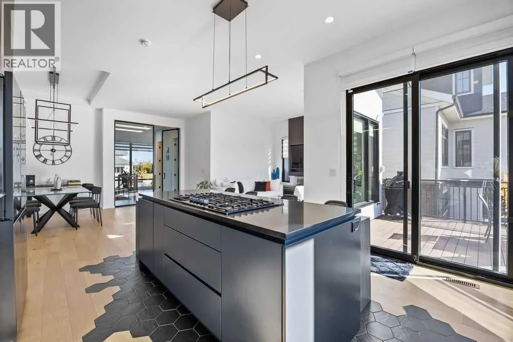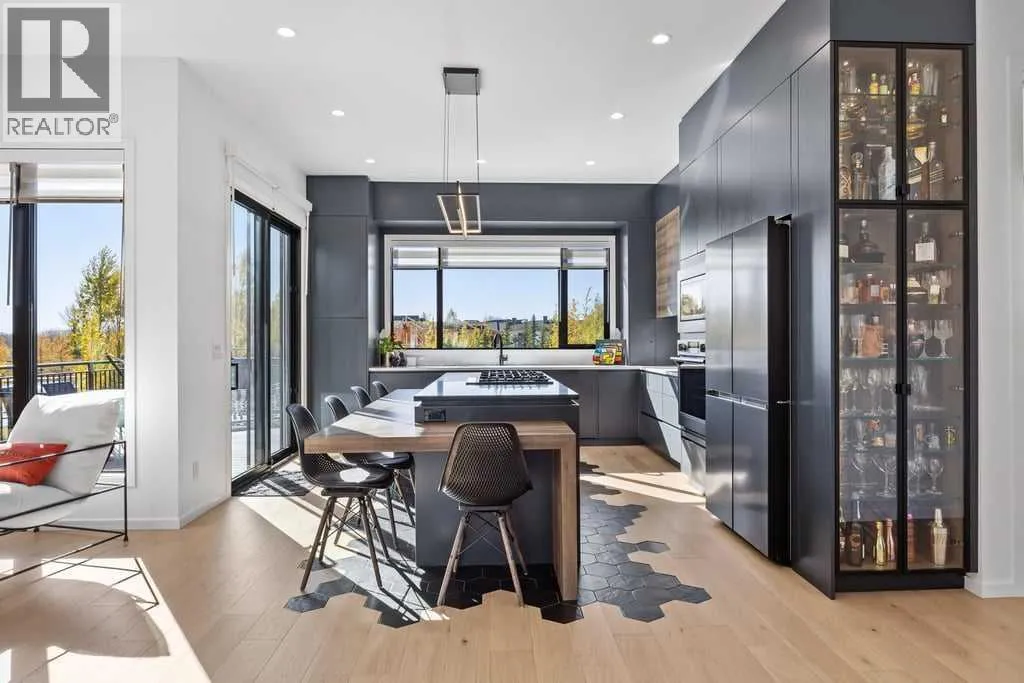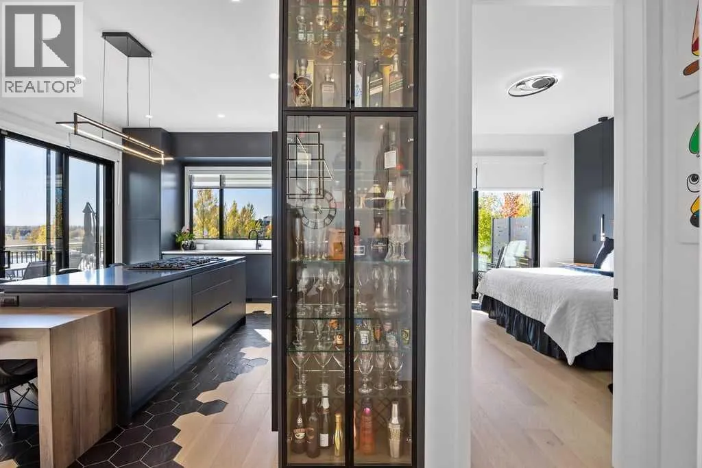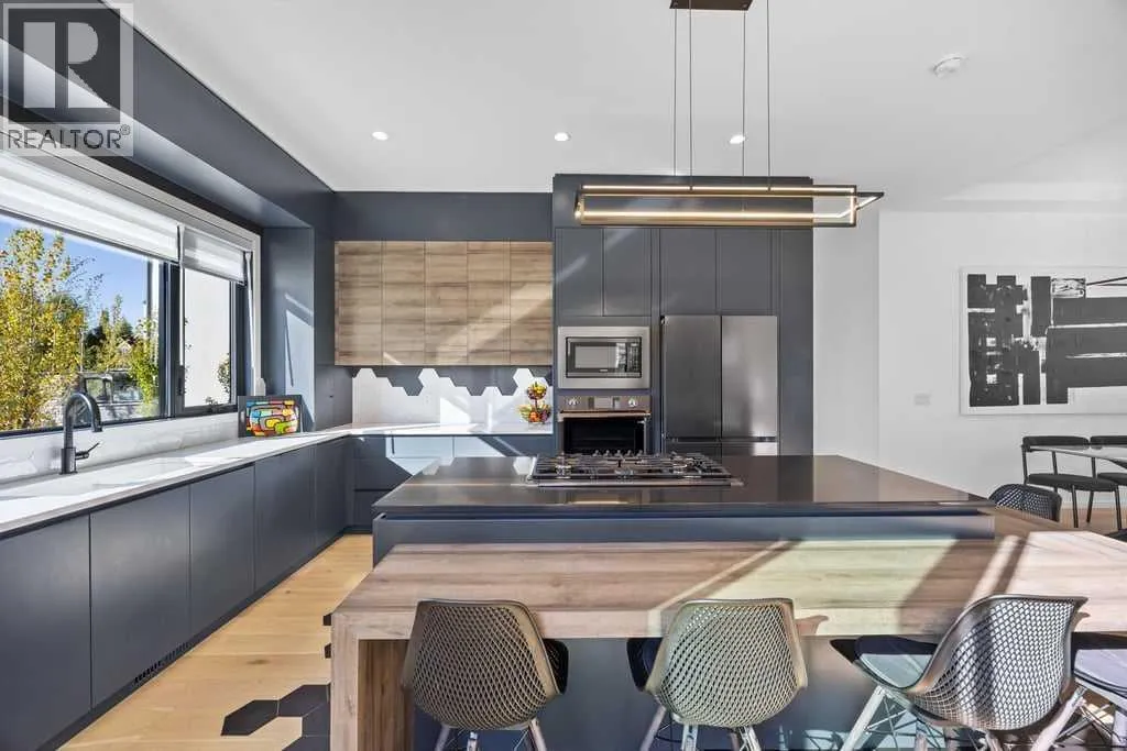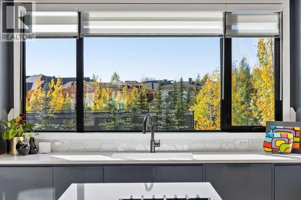 Experience the perfect balance of sophistication and comfort in this stunning modern bungalow, offering over 3,400 sq. ft. of beautifully designed living space. Set in the prestigious community of Elbow Valley West, this residence pairs architectural simplicity with high-end finishes and a seamless open-concept layout.Backed by peaceful pond views and the communityâs impeccably kept pickleball courts, the setting is as serene as it is private. Step outside to an expansive deckâideal for morning coffee, relaxed dinners, or evenings in the private hot tub surrounded by nature. The professionally landscaped yard completes the outdoor sanctuary, with uninterrupted views and space to unwind.Inside, every detail reflects thoughtful craftsmanship. The gourmet kitchen features sleek custom cabinetry, quartz countertops, and premium built-in appliances, all designed to inspire culinary creativity. High ceilings and oversized windows fill the home with natural light, creating an airy, inviting atmosphere.The primary suite is a true retreat, offering calming views, a walk-in closet, and a spa-inspired ensuite that blends luxury and function. Additional bedrooms provide versatilityâwhether for guests, a home office, or hobbiesâeach finished with the same refined touch found throughout the home.Warm engineered hardwood floors, designer lighting, and a striking custom fireplace in the great room add depth and character to every space. The lower level continues to impress with three large bedrooms, two full bathrooms, a second washer and dryer, and plenty of room to relax or entertain.Enjoy access to walking trails, community amenities, and recreational spaces just steps from your door. A triple oversized heated garage, smart home security, electronic key locks, and automated window coverings add convenience and peace of mind.Perfect for anyone seeking refined single-level living, this home delivers the best of modern elegance.This exclusive enclave offers the best o f both worlds: quiet country-style living with convenient city access. Residents enjoy beautifully maintained walking paths, scenic ponds, tennis and basketball courts, and nearby playgrounds â perfect for an active lifestyle or quiet evening strolls.With easy access to Highway 8, Stoney Trail, and the new West Calgary Ring Road, youâre only a short drive from top-rated schools, West Springs and Aspen Landing shopping, Westside Recreation Centre, and the mountains beyond. Whether youâre heading downtown or escaping to the Rockies for the weekend, this location makes it effortless.Elbow Valley West is known for its welcoming community spirit, stunning natural setting, and elegant homes â the perfect place to call home for those seeking space, comfort, and connection. (id:27476)