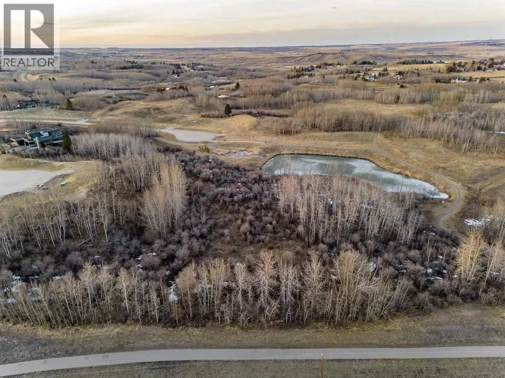 Experience the rare opportunity to own one of the most desirable properties in Silverhorn, an exclusive enclave in the heart of Bearspaw. This magnificent 2.12-acre estate lotâthe largest in Phase 1âis perfectly positioned on a serene cul-de-sac surrounded by distinguished luxury residences, offering a remarkable setting for your dream home. Nestled into a wooded hillside overlooking a tranquil natural pond, this southeast-facing homesite is ideally suited for a walkout design, allowing you to fully embrace the peaceful beauty of its natural surroundings. The lot offers exceptional servicing, including water co-op, gas, power, electricity, Shaw high-speed fiber optic cable, and septic connectionâall conveniently located at the lot line. Silverhornâs architectural guidelines ensure enduring quality, refined aesthetics, and design integrity throughout the community, safeguarding your investment and maintaining the neighbourhoodâs prestigious character. You also have the freedom to select your own builder, and *included* with *this* property are IBI Groupâapproved plans for a 3820 sq. ft. modern bungalow with a triple garage, and fully finished walk-out lower level with an additional 2800 square feet. The home has been meticulously and thoughtfully crafted and designed to harmonize with the land itselfâits clean, contemporary architecture takes full advantage of the southeast orientation, expansive pond views, and the gentle contours of the wooded hillside. Every detail, from the window placement to the outdoor living spaces, has been thoughtfully crafted to celebrate the natural topography and serene setting, creating a home that feels both rooted in nature and refined in design. With a conservation-first vision, Silverhorn features over 50% open space, 7 kilometres of scenic walking trails, and ample privacy buffers between each property. Perfectly located just minutes west of Calgary, it offers a seamless balance between peaceful country living and urban convenience .Embrace the lifestyle youâve been waiting forâa sanctuary of space, serenity, and sophistication in Silverhorn, Bearspawâs premier estate community.Embrace the lifestyle youâve been waiting forâa sanctuary of space, serenity, and sophistication in Silverhorn, Bearspawâs premier estate community. (id:27476)