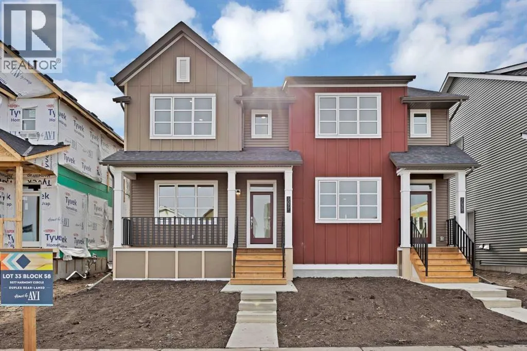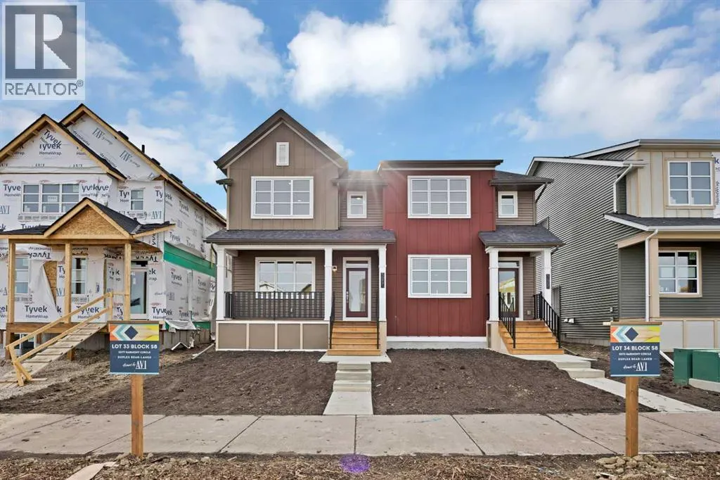 Introducing this beautiful QUICK POSSESSION semi-detached home in Harmony, expertly built by Homes by AVI, offering 1,524 sq. ft. of modern and functional living space. Thoughtfully designed, this home features 3 spacious bedrooms, 2.5 bathrooms, a large rear deck, a front porch, and a concrete parking pad. The main floor welcomes you with a bright, open-concept layout â a generous living room and a spacious kitchen ideal for entertaining, complete with high-end finishes throughout. Step outside to the rear deck, perfect for summer BBQs and outdoor gatherings. Upstairs, the primary suite includes a walk-in closet and a 3-piece ensuite, while the additional two bedrooms share a 4-piece bathroom and a convenient laundry area. The basement offers excellent potential for future development with a separate side entrance, 9-ft ceilings, 3-piece rough-in, and an extra window for added light. Nestled in the vibrant lake community of Harmony, surrounded by nature trails, parks, and upcoming amenities, this move-in-ready home perfectly blends style, comfort, and lasting quality. (id:27476)