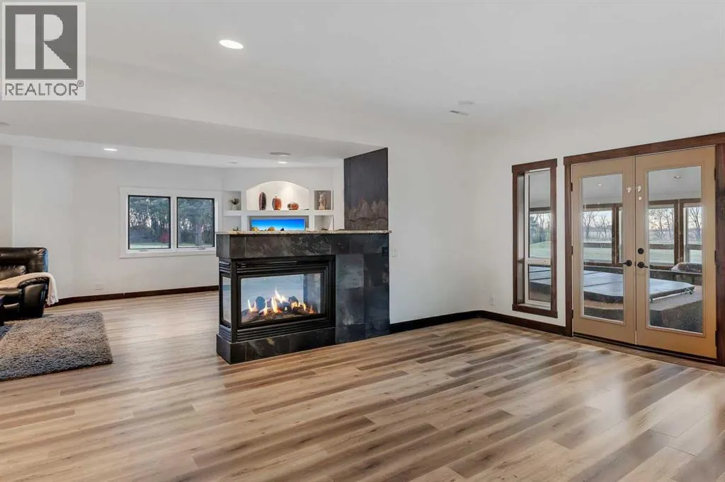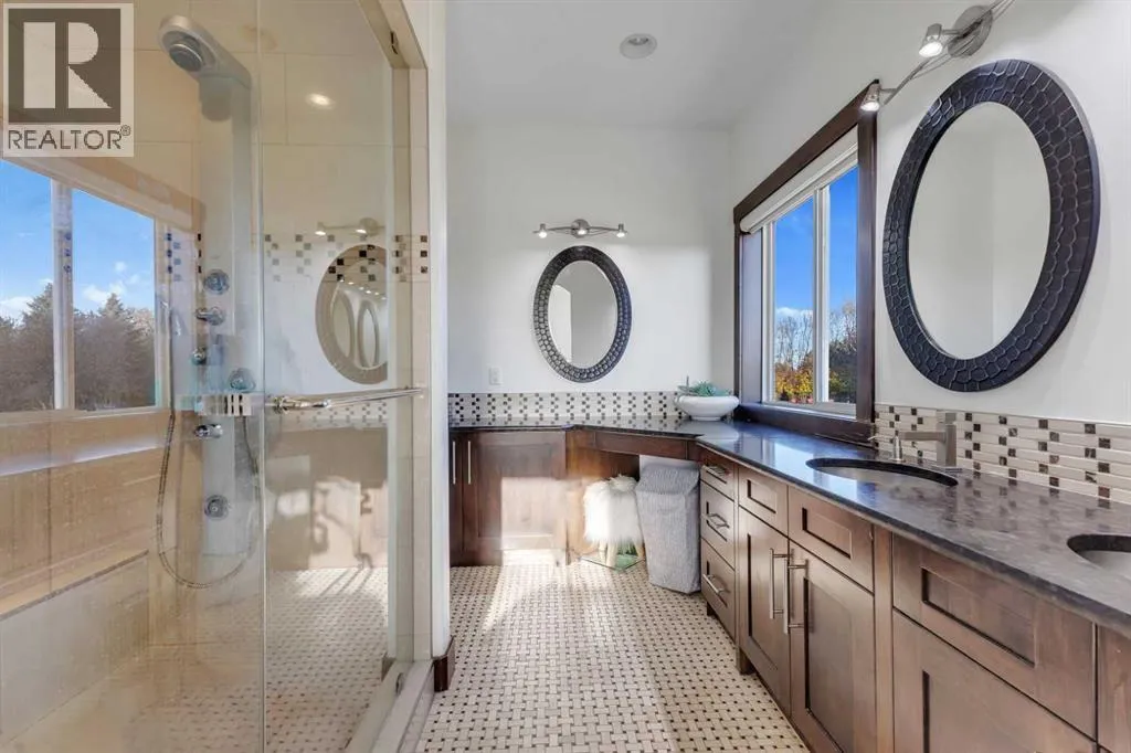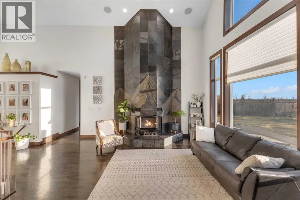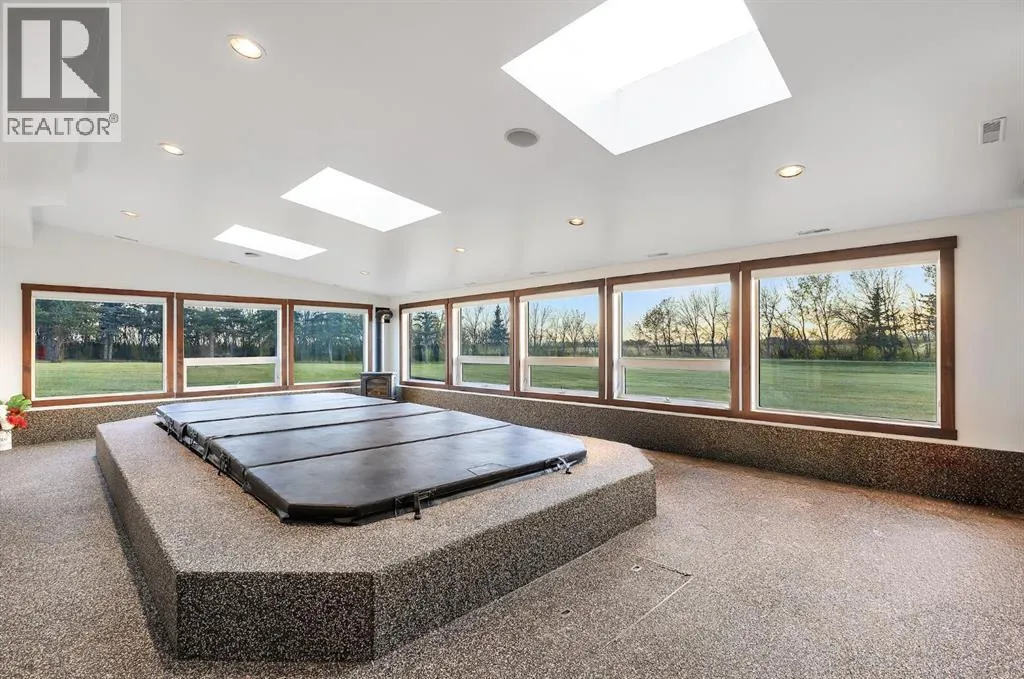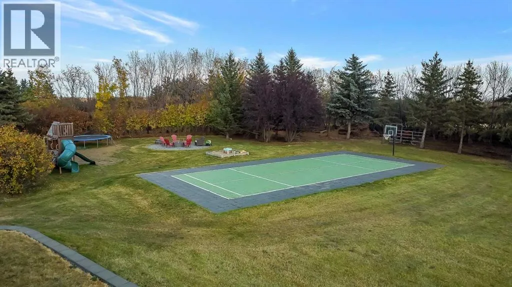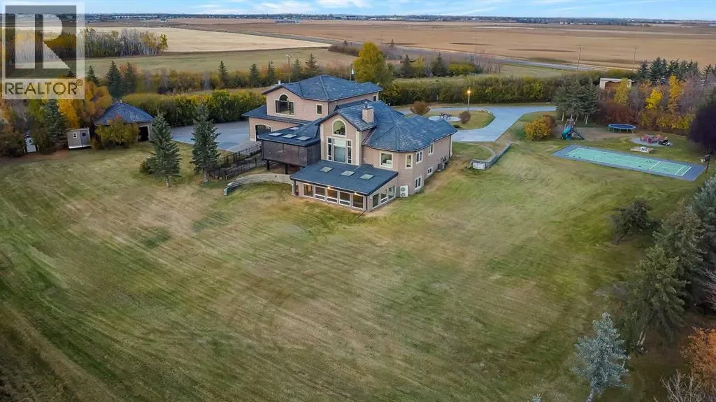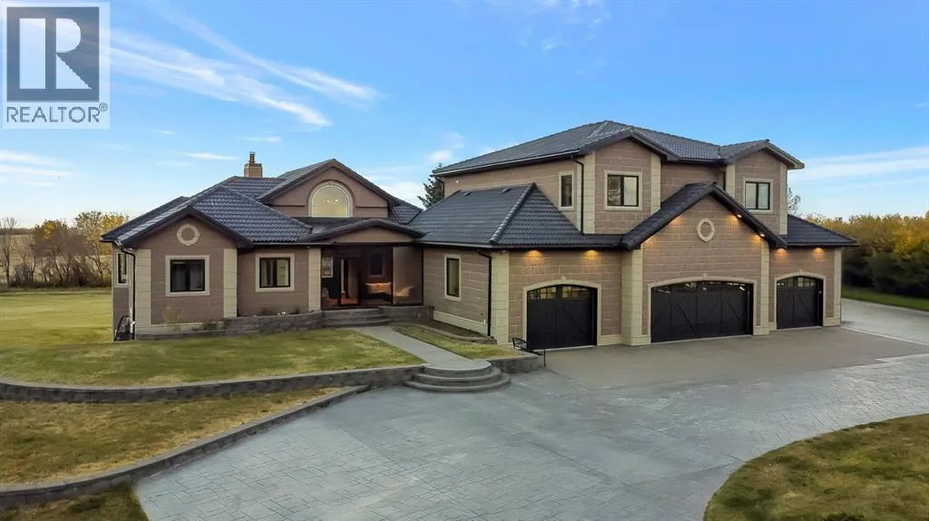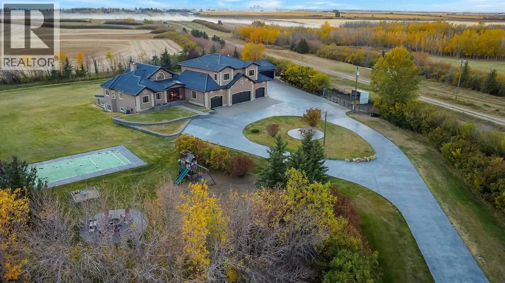 Set on a private GATED, beautifully landscaped property surrounded by open skies and mature trees, this CUSTOM-BUILT ESTATE combines timeless design with thoughtful functionality across 6,000+ sq ft of living space! The long, STAMPED CONCRETE driveway leads to an impressive front entry and a garage large enough to hold everything from collector cars to recreational gear â OVER 2,000 SQ FT OF HEATED SPACE FOR WORK, STORAGE, OR PLAY. Step inside to a grand foyer with soaring ceilings and sunlight spilling through oversized windows. The main floor unfolds in a way that feels both open and intimate, centered around the living roomâs striking stone fireplace and two-story windows. The kitchen anchors the space â rich wood cabinetry, granite counters, high-end appliances, and a generous island for gatherings. A connected dining area overlooks the backyard, while the COVERED SUNROOM WITH SKYLIGHTS AND BUILT-IN BBQ extends entertaining outdoors year-round. Down the hall, the main-floor PRIMARY SUITE offers comfort and privacy with a walk-in closet and spa-inspired ensuite. Two additional bedrooms, a full bath, and a convenient powder room make this level perfect for family living. A large mudroom with walk-in closet and a DOG WASH connects directly to the garage â a layout designed for real life. Upstairs, an open riser curved staircase leads to a bright LOFT overlooking the living area below â a relaxed space for lounging, movie nights, or quiet reading by the fireplace. Two generous bedrooms each enjoy their own ENSUITE and walk-in closet, giving this level a boutique-hotel feel thatâs ideal for teenagers or guests. Laundry is also tucked neatly upstairs for everyday convenience. The lower level is where the fun begins. A massive REC ROOM with 3-WAY FIREPLACE provides space for games, gym equipment, or movie marathons, while an OPEN OFFICE AREA offers the perfect spot for working from home. Thereâs also a cozy DEN, TWO MORE BEDROOMS, AND A FULL BATH â plenty of space for extended family or visitors. And then thereâs the showstopper: an INDOOR POOL with its own fireplace and lounging area, seamlessly connected to the outdoor yard. Itâs a private wellness retreat right at home. Outside, the property feels like a personal resort. Mature trees line the perimeter for privacy, while the open lawn stretches wide with room to play, entertain, or simply breathe. Outbuildings add endless flexibility â storage, workshops, or hobby spaces â and the sports court is ready for friendly competition. Located just minutes from Calgary and Chestermere, this home offers quick access to schools, recreation, and amenities while keeping the peace and quiet of country life. Youâre a mere minS away from East Lake School in Chestermere, Safeway and Starbucks, 15 min from East Hills Shopping with Costco, movie theatre, and more, and 15 min to the Foothills Industrial area. Itâs a place where every detail feels intentional, every space has purpose, and every sunset reminds you why you live here. (id:27476)