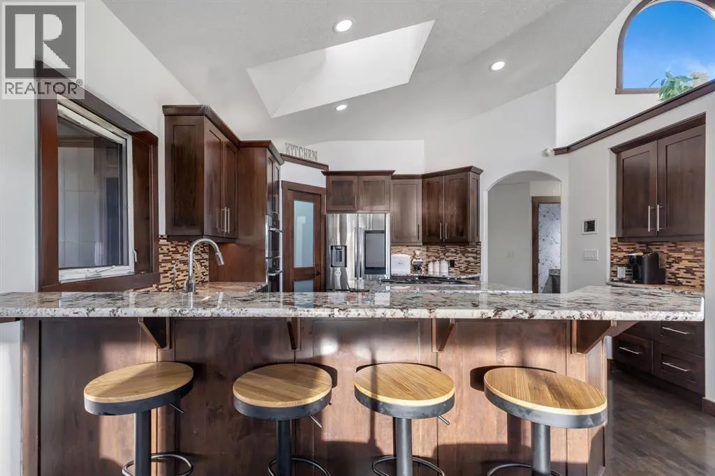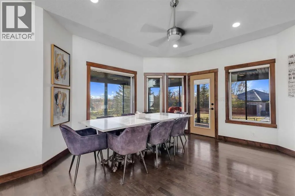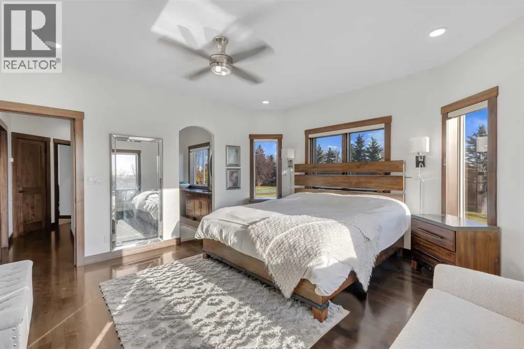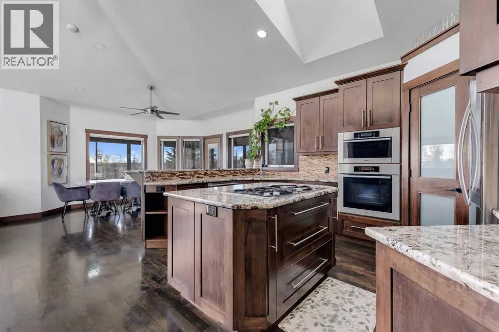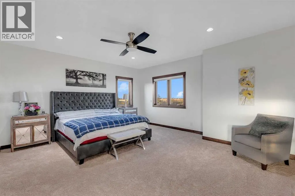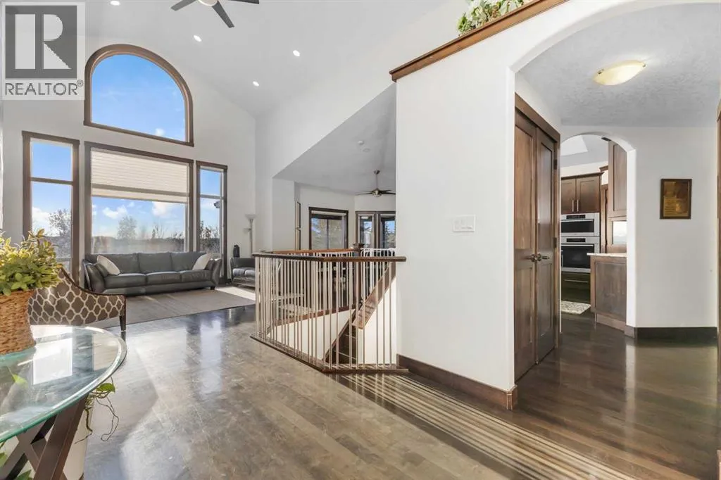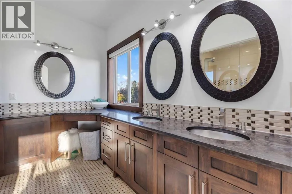 Set on a private GATED, beautifully landscaped property surrounded by open skies and mature trees, this CUSTOM-BUILT ESTATE combines timeless design with thoughtful functionality across 6,000+ sq ft of living space! The long, STAMPED CONCRETE driveway leads to an impressive front entry and a garage large enough to hold everything from collector cars to recreational gear â OVER 2,000 SQ FT OF HEATED SPACE FOR WORK, STORAGE, OR PLAY. Step inside to a grand foyer with soaring ceilings and sunlight spilling through oversized windows. The main floor unfolds in a way that feels both open and intimate, centered around the living roomâs striking stone fireplace and two-story windows. The kitchen anchors the space â rich wood cabinetry, granite counters, high-end appliances, and a generous island for gatherings. A connected dining area overlooks the backyard, while the COVERED SUNROOM WITH SKYLIGHTS AND BUILT-IN BBQ extends entertaining outdoors year-round. Down the hall, the main-floor PRIMARY SUITE offers comfort and privacy with a walk-in closet and spa-inspired ensuite. Two additional bedrooms, a full bath, and a convenient powder room make this level perfect for family living. A large mudroom with walk-in closet and a DOG WASH connects directly to the garage â a layout designed for real life. Upstairs, an open riser curved staircase leads to a bright LOFT overlooking the living area below â a relaxed space for lounging, movie nights, or quiet reading by the fireplace. Two generous bedrooms each enjoy their own ENSUITE and walk-in closet, giving this level a boutique-hotel feel thatâs ideal for teenagers or guests. Laundry is also tucked neatly upstairs for everyday convenience. The lower level is where the fun begins. A massive REC ROOM with 3-WAY FIREPLACE provides space for games, gym equipment, or movie marathons, while an OPEN OFFICE AREA offers the perfect spot for working from home. Thereâs also a cozy DEN, TWO MORE BEDROOMS, AND A FULL BATH â plenty of space for extended family or visitors. And then thereâs the showstopper: an INDOOR POOL with its own fireplace and lounging area, seamlessly connected to the outdoor yard. Itâs a private wellness retreat right at home. Outside, the property feels like a personal resort. Mature trees line the perimeter for privacy, while the open lawn stretches wide with room to play, entertain, or simply breathe. Outbuildings add endless flexibility â storage, workshops, or hobby spaces â and the sports court is ready for friendly competition. Located just minutes from Calgary and Chestermere, this home offers quick access to schools, recreation, and amenities while keeping the peace and quiet of country life. Youâre a mere minS away from East Lake School in Chestermere, Safeway and Starbucks, 15 min from East Hills Shopping with Costco, movie theatre, and more, and 15 min to the Foothills Industrial area. Itâs a place where every detail feels intentional, every space has purpose, and every sunset reminds you why you live here. (id:27476)