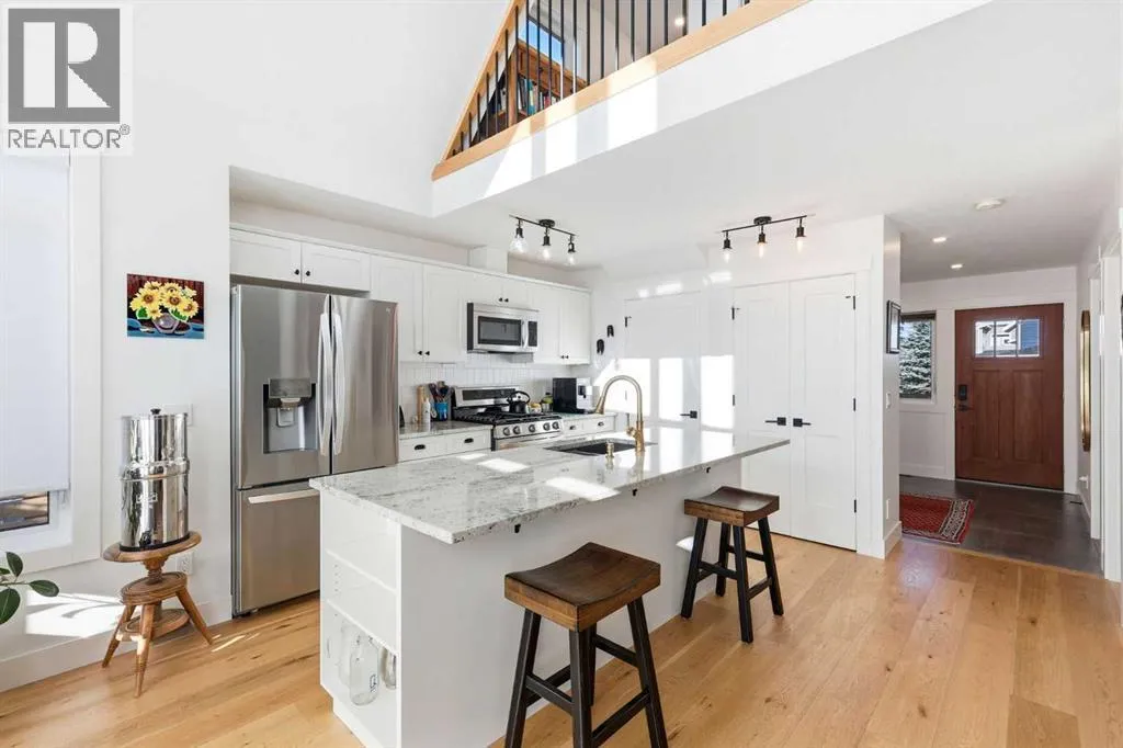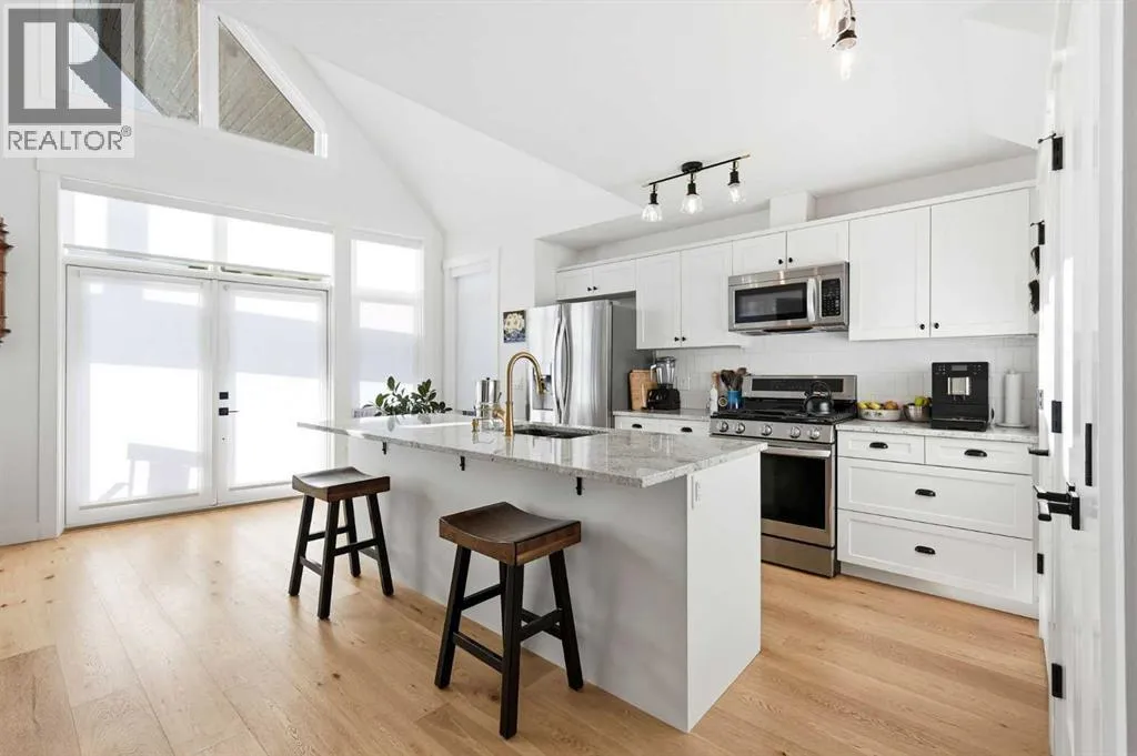 Welcome to Cottage Clubâwhere lake days roll into mountain sunsets. Built in 2022 and delivered turn-key. This thoughtfully designed 2 bed + 3 bath home blends comfort, function, and easy maintenance. The airy main floor showcases vaulted ceilings and expansive windows that flood the space with natural light, a sleek kitchen with quartz-topped island, stainless appliances and ample storage, an open dining/living area that flows to a covered front deck for evening dinners, plus a tidy, low-maintenance backyard for slow mornings and weekend barbeques. A smart/ functional layout places a bedroom and full bath on the main for everyday convenience, while the upper level offers a private retreat for the primary with its own bath and generous closet space. The finished lower level adds a bathroom and a flexible rec/den area with room to develop a 3rd bedroom if desired. A heated detached garage keeps vehicles, lake gear and bikes warm & ready for four-season fun. The setting does the heavy lifting: approx. 25 min to Calgary, 10 min to Cochrane, 35 min to Canmoreâclose enough for spontaneity, far enough to truly feel away. Ownership includes access to Cottage Clubâs private amenities: indoor recreation centre, fitness gym, pool & hot tub, library and lounge spaces, lakeside patio & fire pit, beach, and outdoor racquet courts. Whether youâre chasing a lock-and-leave weekend base or a year-round lifestyle shift, this home delivers space, light, and the lake-to-mountain rhythm youâve been looking for. Your Cottage Club retreat is ready. (id:27476)