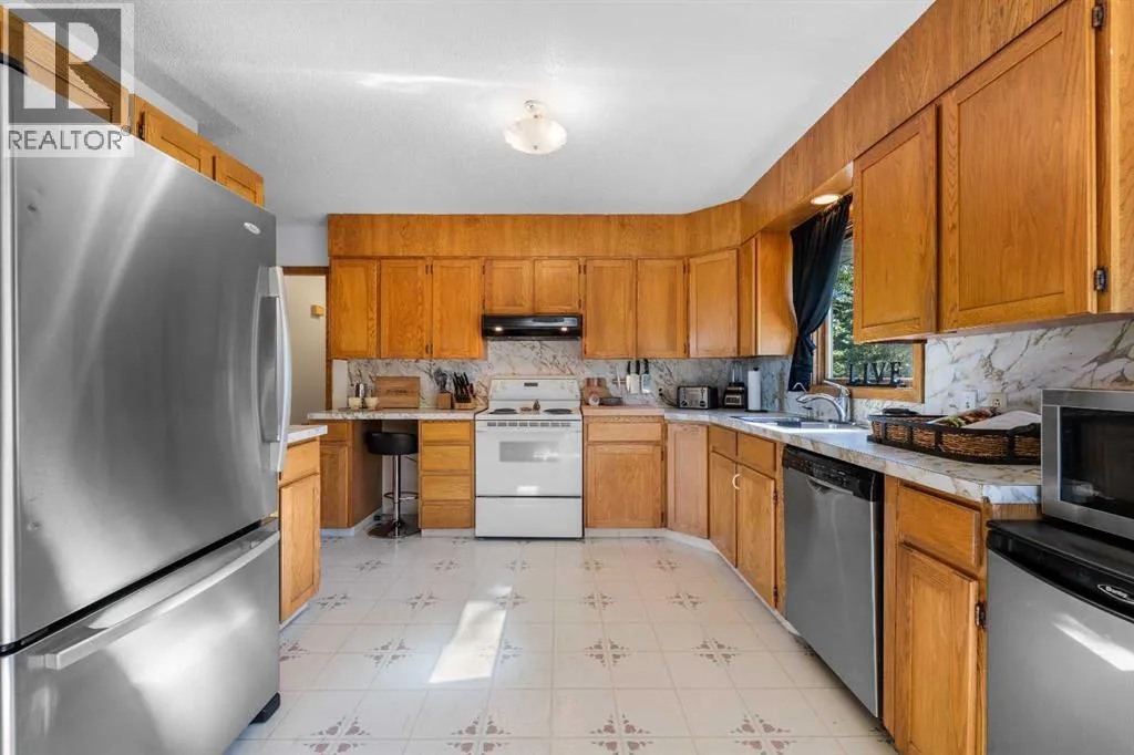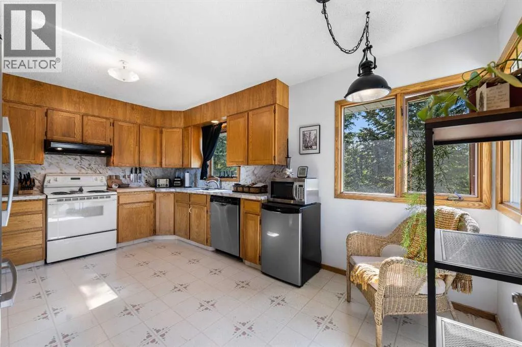 Incredible Opportunity â 3.04± Acre Multi-Use Acreage on Highway 22. Welcome to a rare and versatile property located directly off Highway 22, In close proximity to Westbrook School. This unique 3.04± acre parcel features three separate buildings with income-generating potential and flexible usage options, making it ideal for investors, or anyone seeking space for home, business, and community useâall in one location. Main Residence â 1960âs Bungalow. This charming and solidly built 5-bedroom bungalow offers a welcoming blend of vintage character and practical layout. Highlights include: Original hardwood flooring on the main level, large, bright kitchen with eat-in area, spacious living room 4-piece main floor bathroom. The fully developed basement features: Separate entrance â currently set up perfectly for additional living space including 2 bedrooms, large recreation area, 3-piece bathroom laundry room, oversized windows for excellent natural light. The home was moved onto a wood foundation in 1988, providing strong structural integrity and modern utility access. Fully Renovated commercial/ retail facility: A spacious and adaptable modular building. Offers significant space for rentals or community use. It features, large open hall with capacity for up to 80 seated guests (with round tables) or 120 theatre style seated. Functional commercial kitchen, 2 bathrooms, potential multiple office spaces, high-efficiency furnace (2016) This building is ideal for leasing, rental use, church congregation, private event space, medical clinic, seniors care facility, or expanding your childcare business. Income Property â Tenant-Occupied Single Wide. A fully renovated single wide 720sq ft trailer provides consistent rental income. Currently tenant-occupied at $1,850/month, it includes: An updated kitchen, comfortable living room with gas fireplace, Air conditioning, 4-piece bathroom an office area and a newer furnace. This unit is in excellent condition and adds strong revenu e value to the property. With flexible zoning and incredible versatility, this property is a must-see for those looking to live, work, and invest in a rapidly growing area just outside of town. Whether you're envisioning a shared family estate, a commercial enterprise including, preschool, medical clinic, seniors care facility, rental opportunity, or a church and event venueâthis acreage offers it all. Reach out today to explore all the possibilities this property holds!Directions: 15 minutes North on Highway 22 from Cochrane. (id:27476)