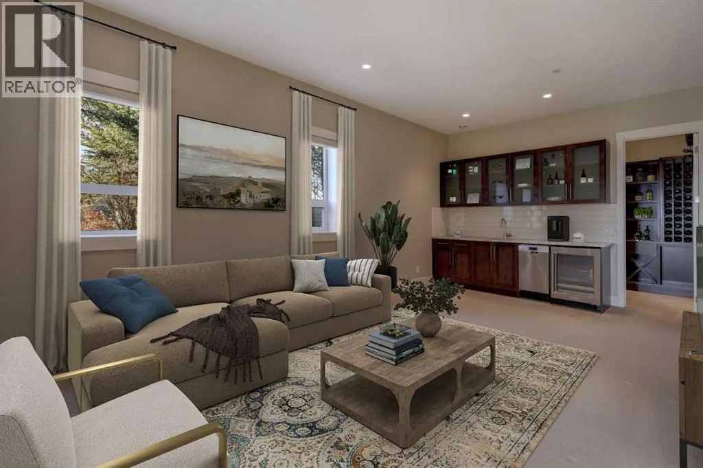 RARE OPPORTUNITY TO OWN A LUXURY VILLA LOCATED IN THE SOUGHT-AFTER Community of Watermark. This executive MAINTANENACE FREE Villa with amazing MOUNTAIN VIEWS on a premium view lower row lot with no road behind features over 2000sq ft of total living space. METICULOUSLY MAINTAINED 3-bedroom, 3-bathroom luxury home, steps from the Watermark PATHWAY SYSTEM leads to the amazing amenities this premier community has to offer. As you enter you will be amazed by the abundance of NATURAL LIGHT coming from the WEST FACING WALL OF WINDOWS capturing the outdoor PANORAMIC VIEWS, and 10' ceilings on the main and lower level. The heart of the home, a chefâs kitchen with STAINLESS STEEL appliances including GAS cooktop, separate WINE FRIDGE, granite countertops and an integrated tv to watch that Blue Jays game, while preparing for a gourmet dinner or for all your entertaining needs. Off the kitchen a bright living room with BREATHTAKING unobstructed Mountain views. Off the main living area, a beautiful master bedroom suite that is a true retreat featuring his and hers closets with built-in organizers includes a LUXURIOUS 5-piece en-suite featuring DUAL SINK vanity, OVERSIZED shower, separate soaker tub, and IN-FLOOR HEATING. Completing the main level a full laundry room with a sink, cabinets and counter space, half bathroom, large foyer and mudroom. The lower level with WALKOUT is the perfect place to relax and watch a movie or entertain in your extra-large family room. Two additional bedrooms, an enormous SPA like 5pc bathroom, large walk in temperature controlled CUSTOM-BUILT IN WINE ROOM with glass doors, a large wet bar with beverage fridge, GRANITE counters & dishwasher finishes off the basement. The OUTDOOR LIVING SPACES are generous with a large upper deck off the main room offering an unparalleled PANORAMIC MOUNTAIN view and a large lower-level PRIVATE concrete patio that allows you to enjoy the scenery and enjoy the AMAZING SUNSETS. Villa residents also have exclusive access to the clubhouse that offers a well-equipped fitness studio on the lower level and a lounge on the upper level featuring a pool table, generous seating area, TV and a full kitchen. This exceptional home includes multi-zone in-slab glycol heating, central vacuum, AC, HEATED EPOXY-COATED garage floor, gas line running to the upper deck and SOLAR TINTING ON WINDOWS. This property truly needs to be seen to be fully appreciatedâ¦WELCOME HOME (id:27476)