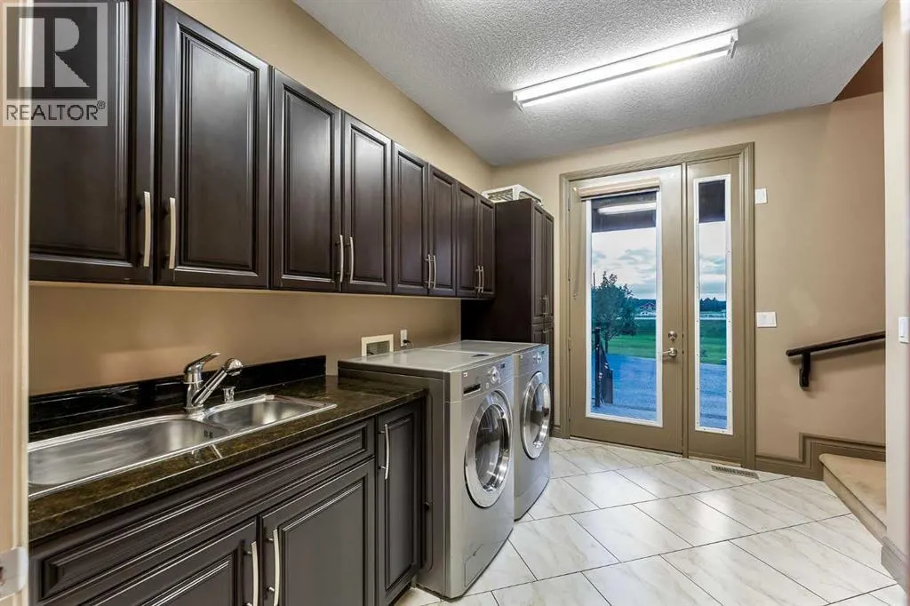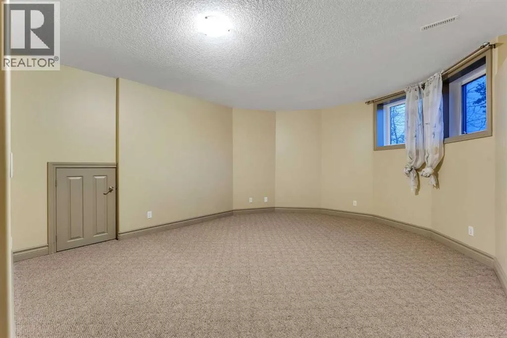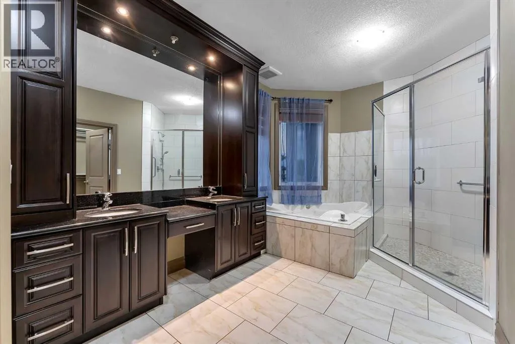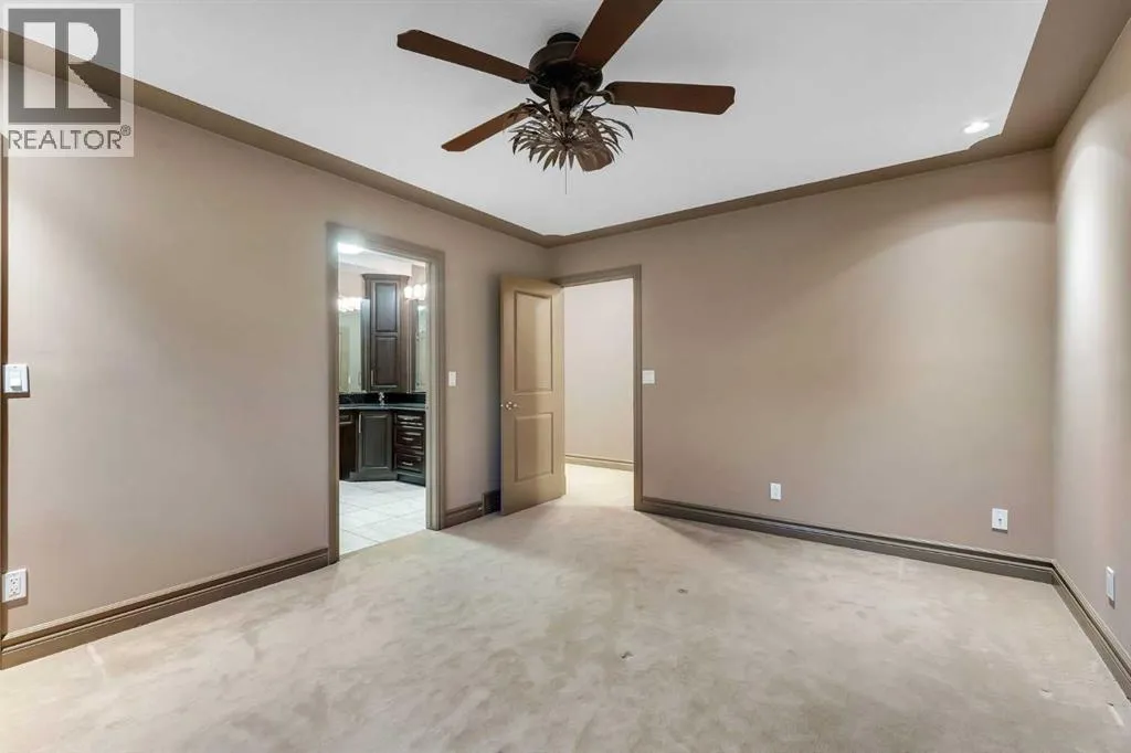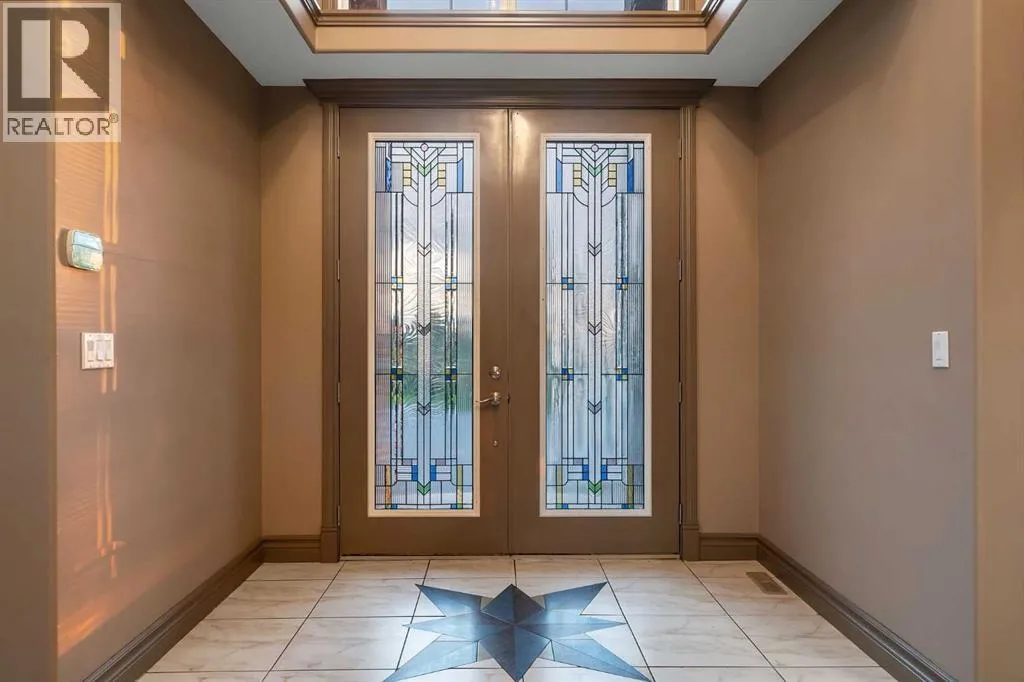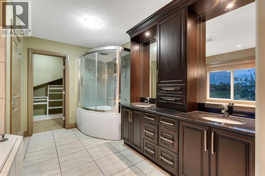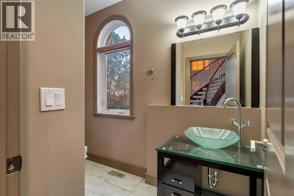 Discover refined acreage living on a fully landscaped 2-acre lot in one of Bearspawâs most coveted locations. This over 6,000 sq ft walkout estate blends timeless elegance with modern versatility, offering spaces designed for both everyday comfort and impressive entertaining. A striking open-riser staircase and upper walkway welcome you into a light-filled main floor. A stone-faced fireplace warms the private den, ideal for a home office or reading nook, while the gourmet kitchen features cherry cabinetry, stainless appliances, a gas range, and a spacious walk-in pantry. The kitchen flows into the vaulted-ceiling living room and dining area, where a double-sided fireplace and expansive windows frame lush greenery and distant mountain views. Thoughtfully designed for both privacy and connection, the home offers a serene main-level primary suite with private deck access, panoramic windows, and a spa-inspired ensuite. Upstairs, a second private suite with its own fireplace and 5-piece ensuite provides flexibility for guests or older children, alongside two additional generously sized bedrooms and a full bathâperfect for younger family members or long-term guests. The fully finished walkout basement is an entertainerâs dream, with a wet bar, wine storage, theatre room, two additional bedrooms (one with ensuite), and space for a gym, studio, or hobbies. This level opens directly to your outdoor oasis, where mature trees, manicured gardens, and multiple seating areas create a year-round retreat for gatherings or quiet relaxation. With exceptional craftsmanship, a versatile layout, and a prime Bearspaw address just minutes from Calgary, this home offers the perfect balance of luxury, space, and lifestyle. Book your private showing today and experience Bearspaw living at its finest. (id:27476)