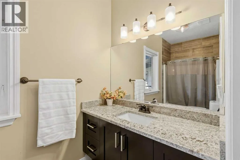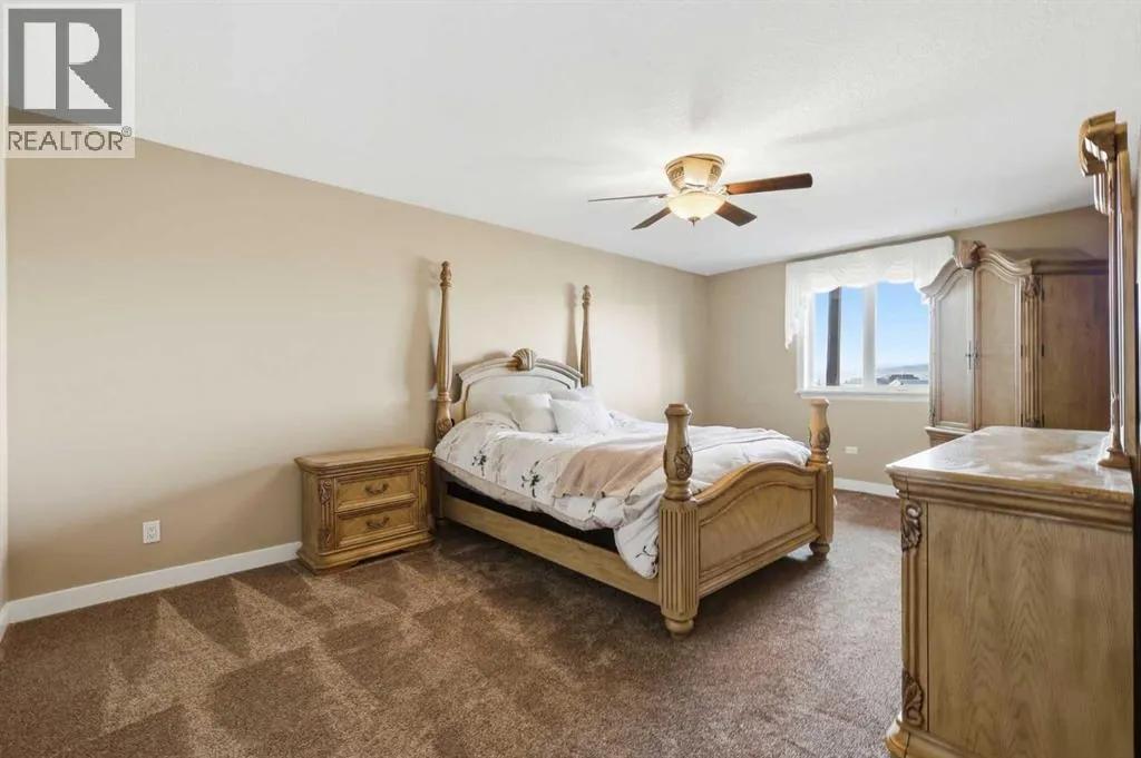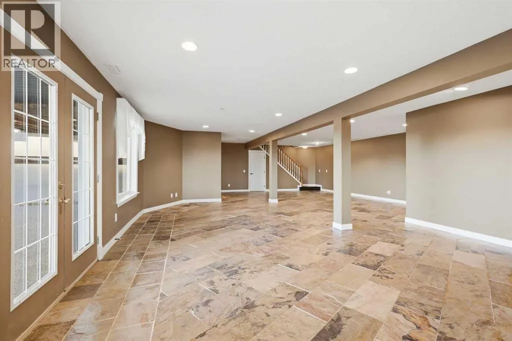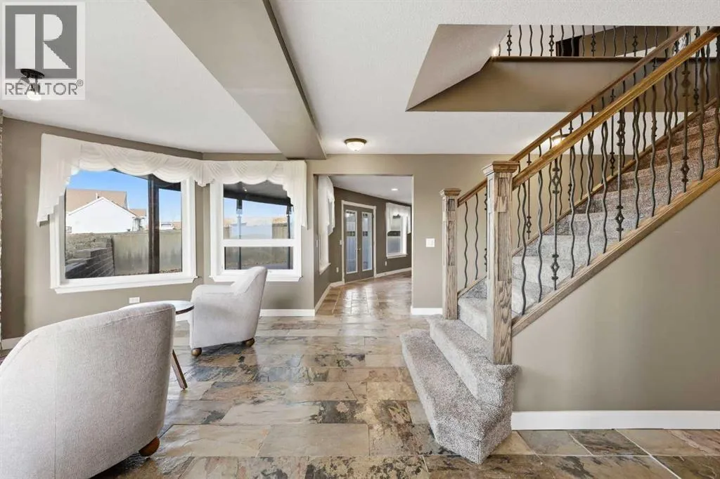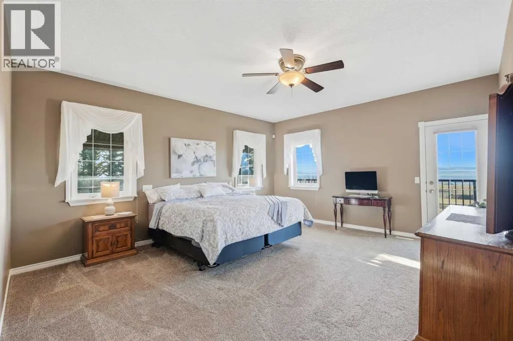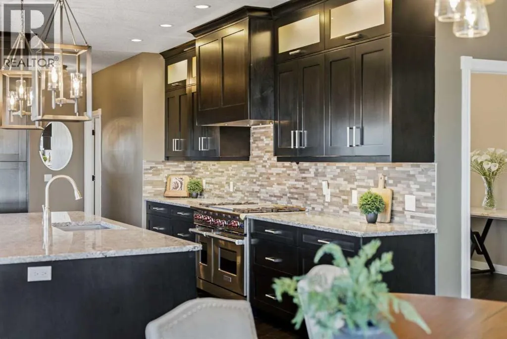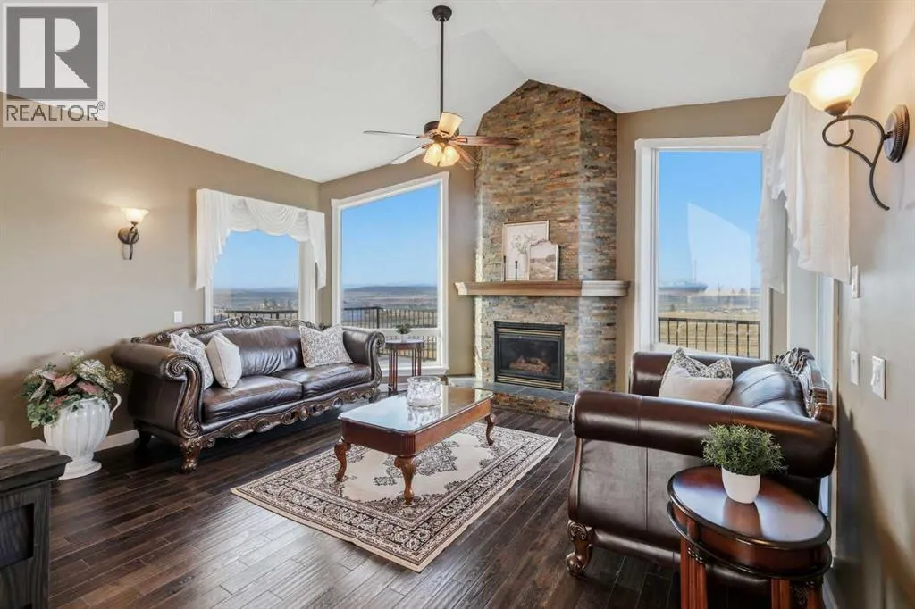 This stunning 4.41-acre property presents an exceptional opportunity to own a picturesque parcel of land with sweeping mountain views and a beautifully designed walkout bungalow. Nestled at the end of a serene, tree-lined drive, the home exudes timeless country charm with its sprawling layout, expansive wrap-around deck, and triple car garage â perfectly combining peaceful rural living with the convenience of being just minutes from Cochrane. Step inside the large front foyer, where vaulted ceilings immediately impress. The living room is a showpiece, centered around a dramatic floor-to-ceiling stone fireplace, with windows perfectly framing the breathtaking Rocky Mountain views. The spacious dining room is ideal for entertaining family and friends, offering ample space for large gatherings while enjoying the open-concept flow and natural light throughout. The chef-inspired kitchen is a standout, featuring a Wolf gas stove, Sub-Zero fridge, dual dishwashers, custom range hood, pot filler, and expansive granite countertops â perfect for both cooking and entertaining. A convenient office just off the kitchen provides a quiet workspace or flexible area. The primary suite is a tranquil retreat with spacious walk-in closets complete with organizers and private access to the west-facing deck. The ensuite bathroom is luxurious and spa-like, with double sinks, granite countertops, a large soaker tub, and a favorite feature of the current owners â an incredible steam shower. Two additional bedrooms and a full bathroom complete this wing of the home. The mudroom is highly functional, offering a half bath, laundry room with sink, and plenty of cabinetry and storage space. The attached triple garage is set up for both workshop and parking needs and is roughed in for in-floor heating and a future sink. Downstairs, the walkout basement continues to impress with a gas fireplace that anchors the space and creates a welcoming atmosphere. The expansive recreation area offers endless options â from a home gym to games or family entertaining space â all finished with durable slate flooring. The family room is perfect for movie nights or cozy evenings in. Two additional bedrooms and a full bathroom complete the lower level. Step outside to the covered patio with beautifully finished exposed aggregate concrete off the lower walkout â a generous outdoor space with room for a hot tub, sauna, or your dream outdoor living setup, all while enjoying awe-inspiring views! This home has seen thoughtful upgrades, including a new roof (2022), full replacement of poly-B plumbing, a water filtration system, a new electrical panel, a new concrete garage floor with rough-in for in-floor heating, a utility sink and a new concrete driveway apron. This exceptional property, complete with a barn, room for animals, and stunning mountain vistas, balances timeless country allure with comfort, functionality, and the perfect setting for family life! (id:27476)