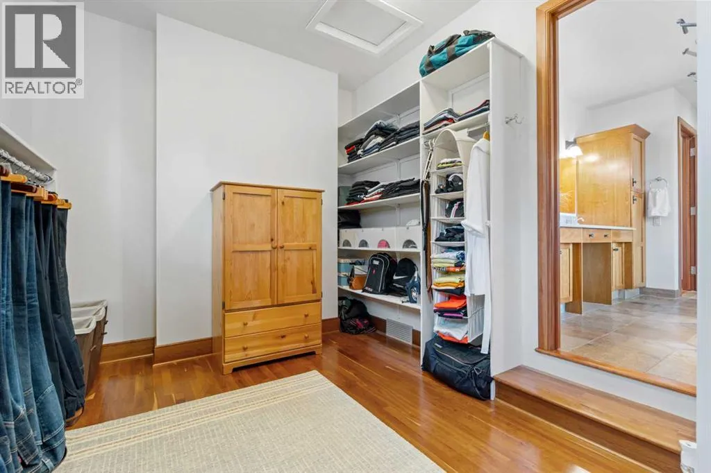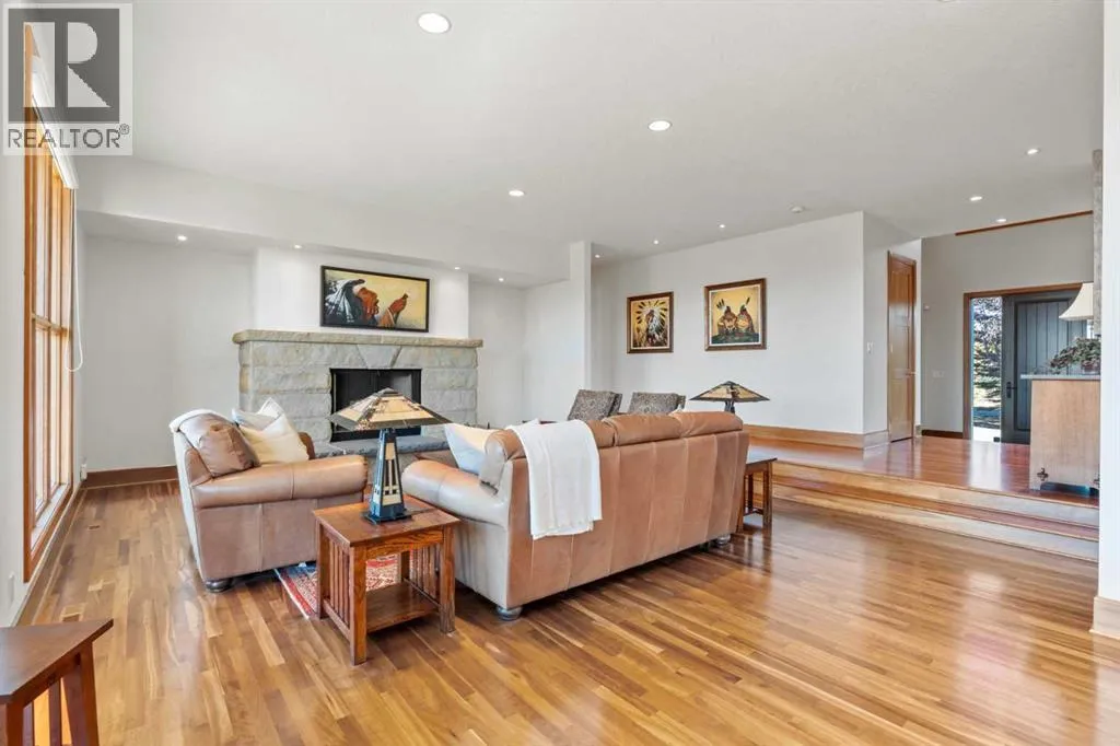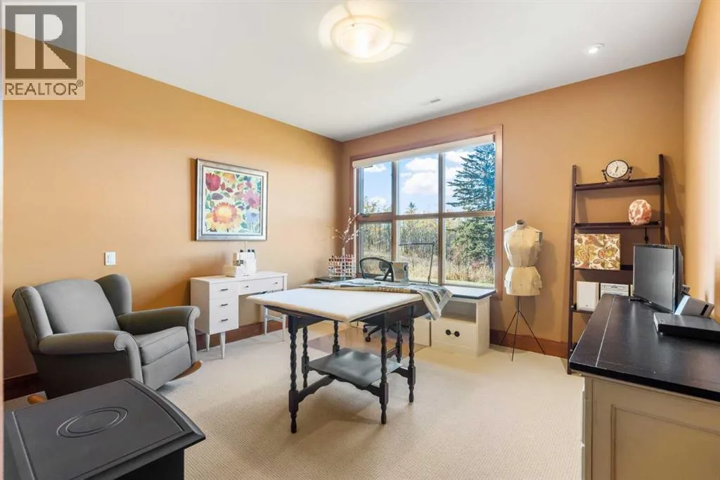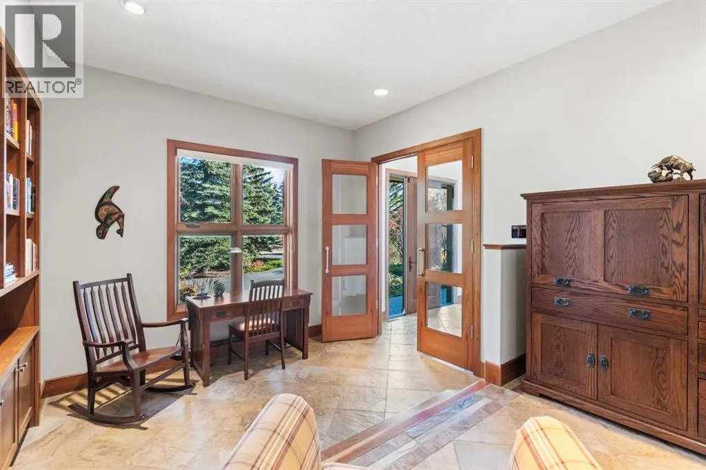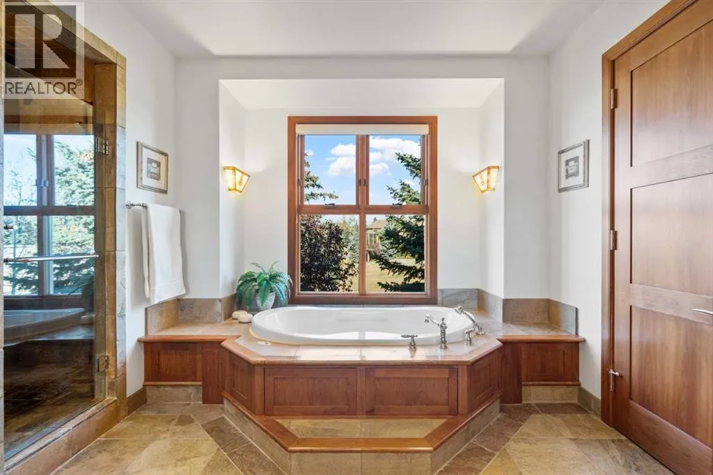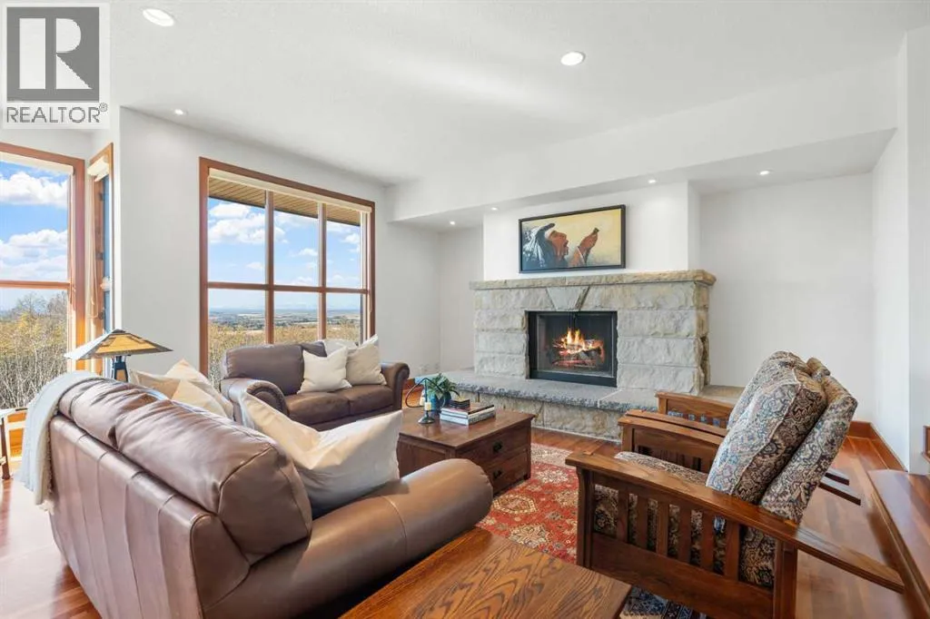 This exceptional, one-of-a-kind property offers the best of Springbank living â privacy, tranquillity, and breathtaking Rocky Mountain views. Set on a picturesque 2.17-acre lot in the heart of Pinnacle Ridge, this walkout bungalow sits high on the ridge, surrounded by beautifully landscaped grounds that provide seclusion from the street and neighbours. Tucked away from main roads, the property features its own private ravine, approximately one acre of mature trees and natural landscape, offering beauty and privacy while minimizing yard maintenance. A circular driveway flanked by mature trees sets the tone from the moment you arrive â this is truly something special. Inside, youâre greeted by stunning mountain vistas and an open layout. The beautifully renovated kitchen features a large island, granite countertops, and high-end appliances, including a Sub-Zero refrigerator, wine fridge, microwave, and 48â Wolf gas range. It opens to a bright dining space and sitting area with access to the large main deck (23' x 22'). The spacious living room, complete with a fireplace, perfectly frames the magnificent mountain backdrop. The main-floor primary suite offers a luxurious six-piece ensuite and a generous walk-in closet. The main level also includes a home office, two powder rooms, a walk-in pantry, and a mudroom that connects to an oversized four-car garage. The 54' x 26' garage (1,279 sq. ft.) is insulated, drywalled, painted, and finished with epoxy flooring, with half the space offering a 12â3â ceiling that is ideal for large trucks or lifts. The walkout lower level features a large recreation room, a wet bar that seats up to ten, a dedicated theatre room, three additional bedrooms, and two full baths. Cherry hardwood and tile flooring flow throughout the home, with wool carpet in the lower-level bedrooms for added comfort. The exterior showcases stucco and stone, complemented by a newer asphalt shingle roof (2020, 50-year warranty). An enclosed under-deck storage roo m is ideal for garden tools or a ride-on mower. This immaculate property has been meticulously maintained by its current owners, with recent mechanical upgrades including two new furnaces with humidifiers (2019) and two new air-conditioning units (2024). A truly remarkable estate combining privacy, panoramic views, and refined living in one of Springbankâs most sought-after locations. (id:27476)