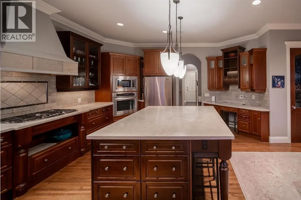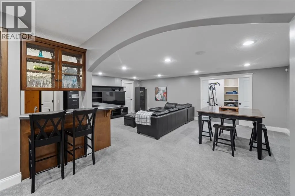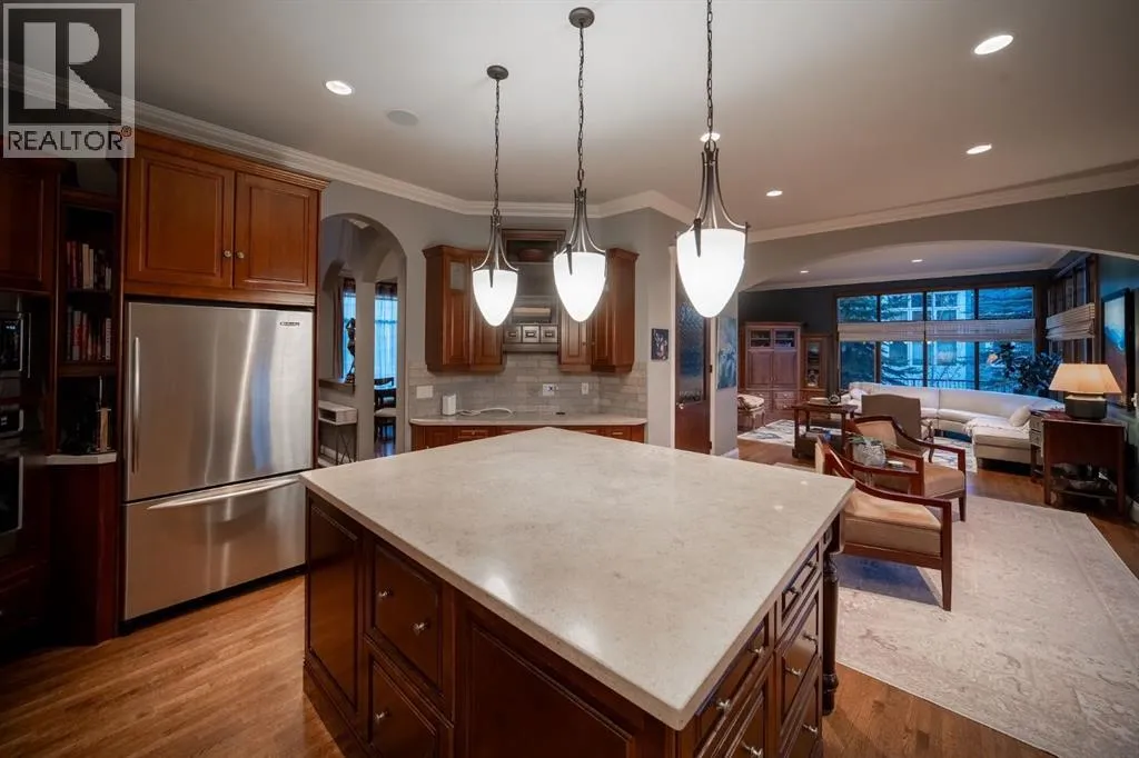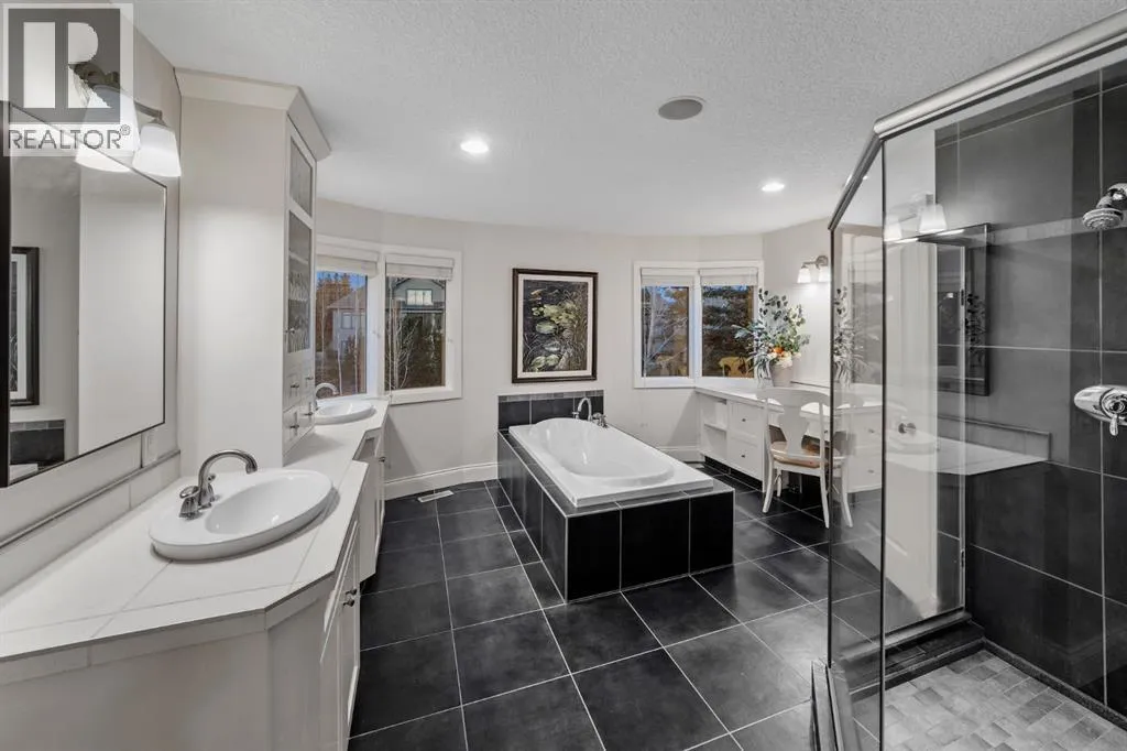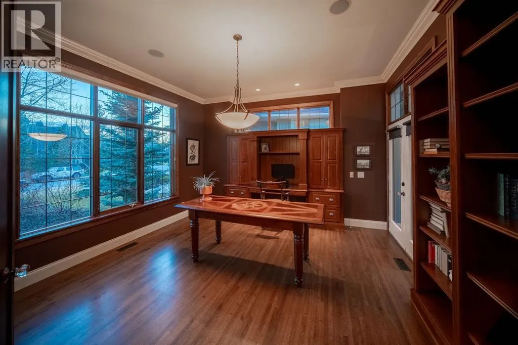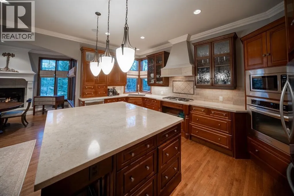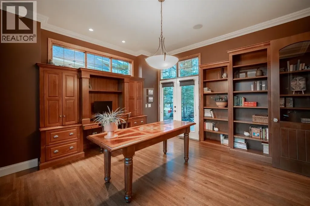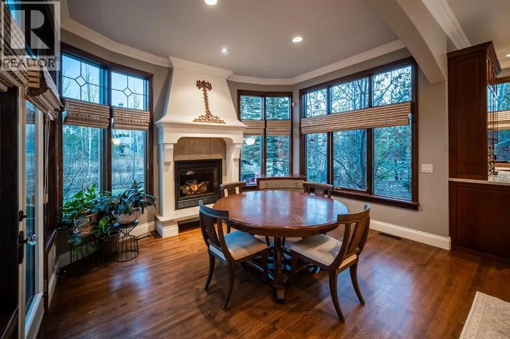 Welcome to 323 Snowberry Place in prestigious Elbow Valley â a beautifully crafted custom estate offering over 5,620 sq. ft. of thoughtfully designed living space. With 5 spacious bedrooms, 4.5 bathrooms, and exquisite millwork, this home blends quality construction with functional family living.The main floor features 10â ceilings with crown molding, quarter-sawn solid oak hardwood, and 8â custom wood doors with upgraded hardware. A striking custom fir front door opens to a warm and inviting floor plan complete with a large office, separate dining room, and a living area showcasing a custom black walnut entertainment unit. The gourmet kitchen includes maple cabinetry, limestone counters and backsplash, stainless steel appliances, and a walk-in pantry with an additional fridge. A cozy gas fireplace warms the breakfast nook, while the covered patio offers a wood-burning fireplace with natural gas starterâperfect for year-round enjoyment. A spacious mudroom off the garage provides excellent storage.The upper level continues with solid oak hardwood flooring and offers 4 bedrooms, all with walk-in closets. Three of the bedrooms feature full ensuites. A large bonus room includes a natural gas fireplace and built-in entertainment centre, along with an additional flex area ideal for an art studio, gym, or play space. The laundry room is conveniently located on this level.The lower level features 9â ceilings, heated floors, a custom bar with wine room, exercise room, 5th bedroom, and a large bathroomâcreating a comfortable and functional extension of the home.Completing the property is an oversized triple garage with built-in cabinetry, sink, gas line for heater, and electrical outlet for an EV charger.This exceptional residence offers luxury, comfort, and space in one of Calgaryâs most sought-after communities. A truly remarkable place to call home. (id:27476)