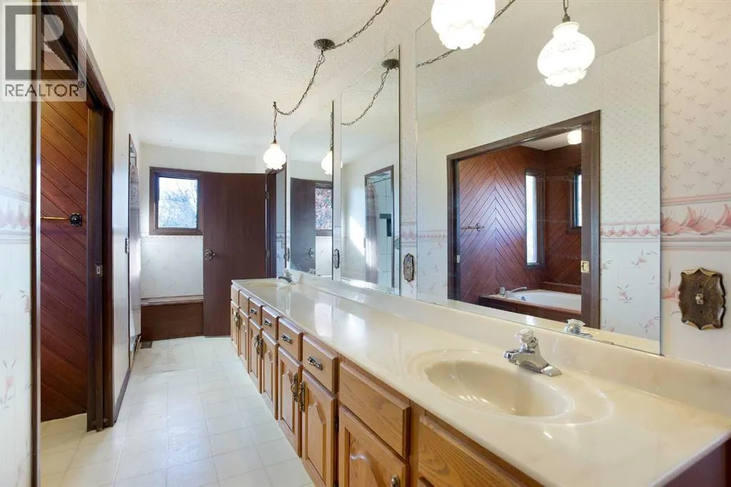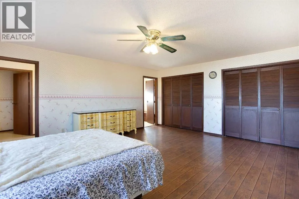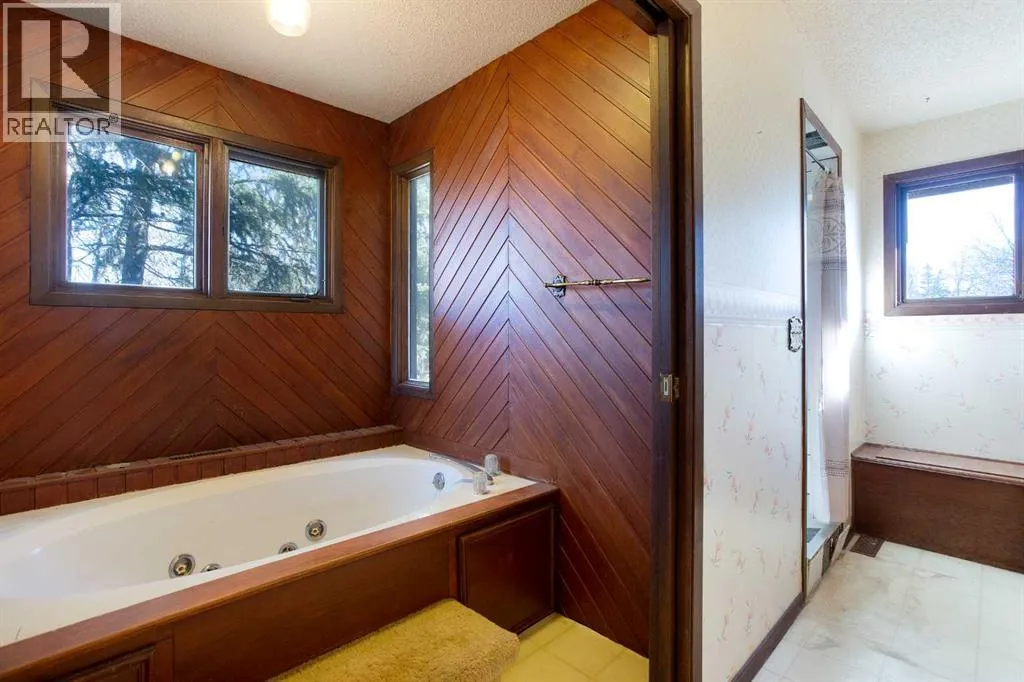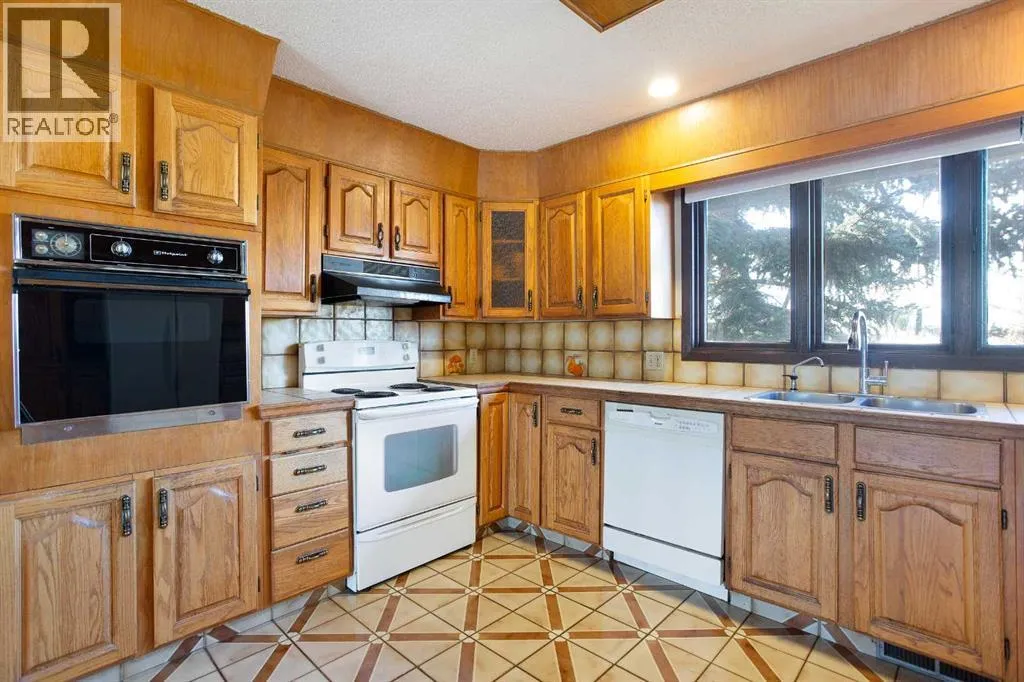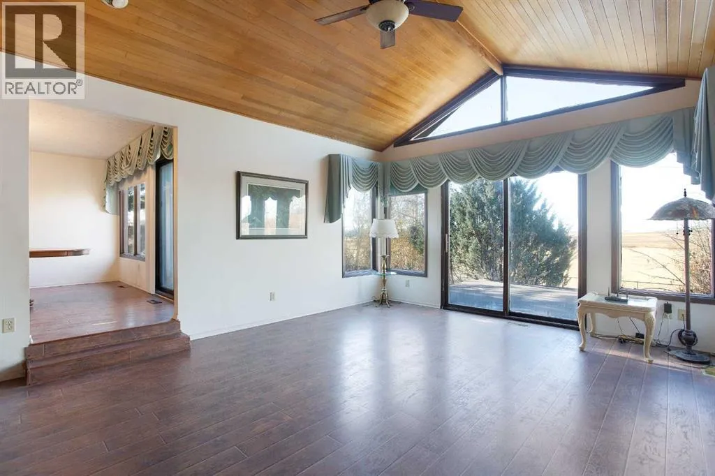 Welcome to Your Private Oasis in Georgian Estates!Discover the perfect blend of space, privacy, and potential just minutes from Stoney Trailâoffering a quick and easy commute to Calgary. This beautiful 2-acre property offers all the space youâve been looking for â both inside and out!With over 6,200 sq. ft. of finished living space, this home is designed for versatility and comfort. Featuring 2 full kitchens, 6 spacious bedrooms, 4.5 bathrooms, and multiple living spaces including a recreation room with pool table, giving plenty of room for family, guests, or even multi-generational living. Cozy up beside one of four wood burning fireplaces, each adding warmth and charm throughout the home.The thoughtful layout offers main-floor bedrooms tucked away in their own private wing, while the walkout basement opens directly to your fenced, treed backyard with no neighbours behind youâperfect for kids, pets, and enjoying nature right at home. Bring your vision and make it your own! You can update with modern finishes or keep some of the homeâs charming 80âs character and give it a fresh new look.As you arrive, youâll love the tree-lined paved driveway leading to a massive 60x40 foot detached garage and workshopâperfect for hobbyists, collectors, or extra storage. Plus, enjoy the convenience of all-paved access right to your doorstep and the reliability of being connected to a community water co-op. If youâve been dreaming of space, privacy, and a place where your family can truly grow â this Georgian Estates acreage has it all! (id:27476)