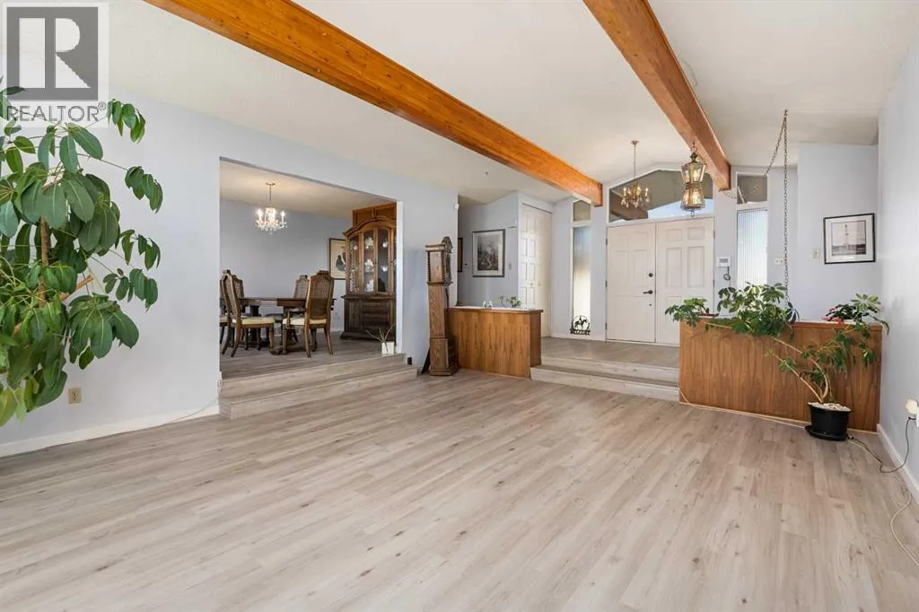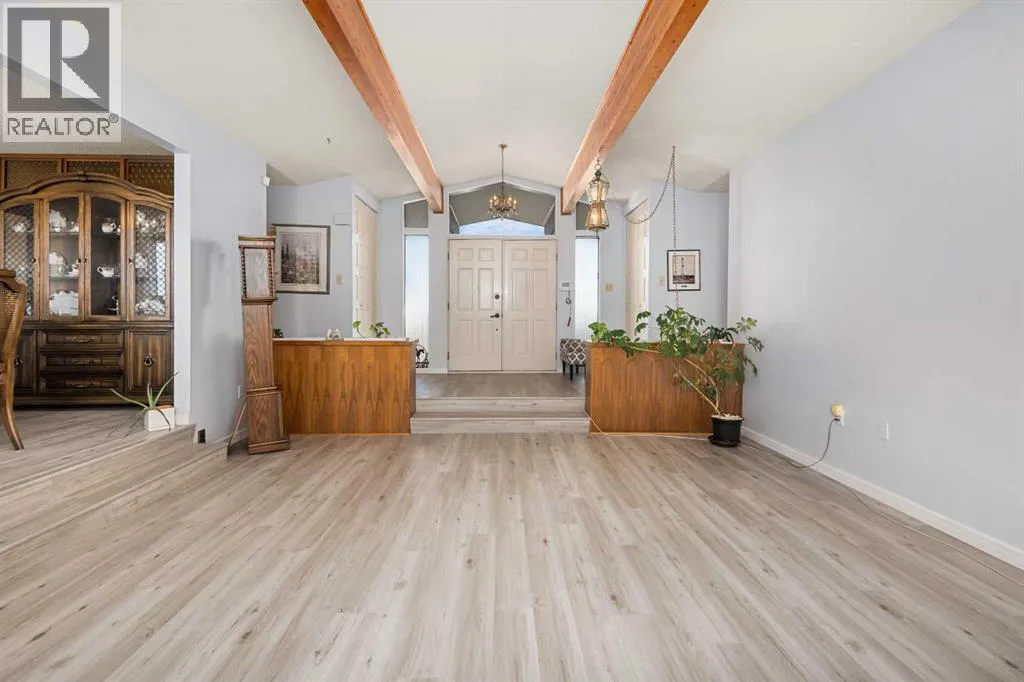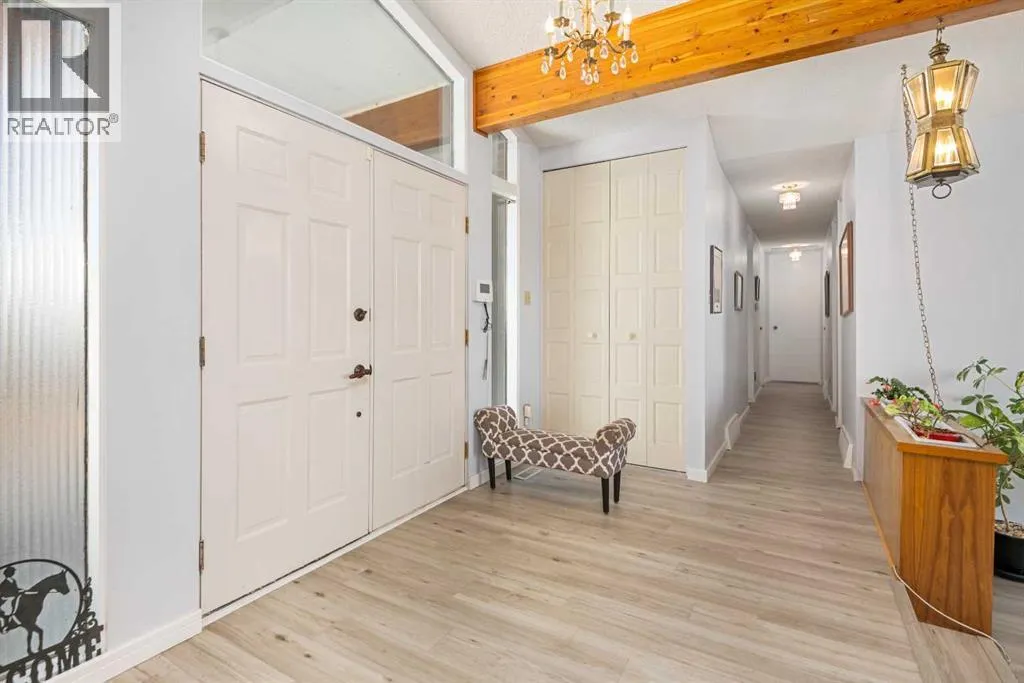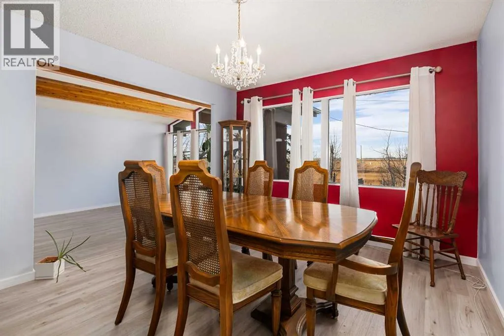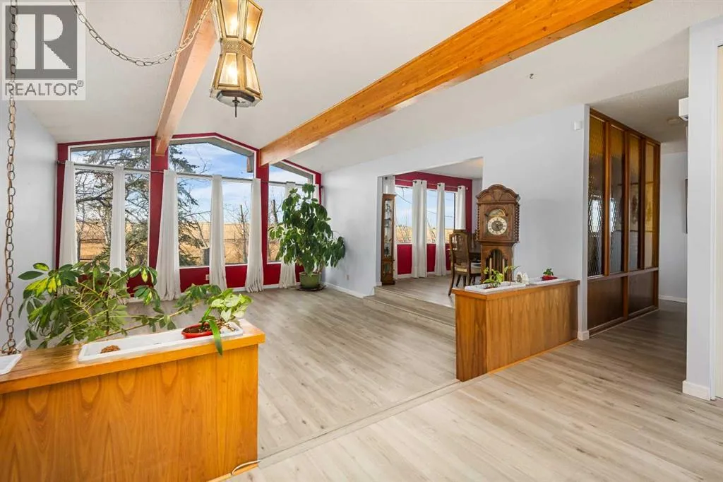 Perfectly positioned w/frontage on Hwy 9, Twp Rd 252 & 252A, this exceptional 66 acre agricultural (zoned Ag-Gen) property offers both privacy & convenienceâjust 12 mins from Calgaryâs city limits & 15 mins to the upcoming De Havilland Field. The property features a well cared for 2,235 sq ft bungalow, lovingly maintained by the same family for nearly 5 decades. Inside, the home welcomes you w/a bright front entry featuring dual closets & 8-ft doors throughout. The main level offers 4 spacious bedrooms, including the primary suite w/walk-in closet & ensuite. The additional 3 bedrooms share a full 4-piece bath. The inviting living room off the front entry has wooden beams & lots of natural light. The kitchen includes a cozy nook overlooking the family room that showcases a wood-burning fireplace w/a brick surround adding warmth & character+thereâs a formal dining area just steps awayâperfect for family gatherings. The newer flooring gives the home a modern, welcoming feel throughout. Off the back entry from the double attached garage is a convenient laundry area & 3 pc bath w/access to the partial basement. Downstairs, youâll find a storage area, a family room/rec space & a flex room/potential 5th bedroom (window not to egress). Newer front steps & concrete pad in front of the garage adds a clean, fresh touch to the exterior. Outdoors, the land is ideally set up for horses or hobby farming, complete with a 3-stall barn & run-in shelter (both serviced w/power & water), a fenced paddock, & riding area. Horse shelter w/steel siding is already pre-cut & stored in the barn, ready for installation. 2 more versatile outbuildings provide plenty of room for storage or small livestock. W/3 wells, thereâs a reliable water supply across the property. Situated on a school bus route, Twp Rd 252 receives priority snow removal, ensuring year-round access. Approximately 55 acres are currently leased to a local farmer, providing passive income, along with a gas well surface lease for additional revenue. The location is prime for future growth w/new development expanding east of Calgary, several golf courses nearby, & quick routes to major highways & city amenities. Recent hail insurance claim for roof & siding have been approved, buyer can choose their colours. (id:27476)