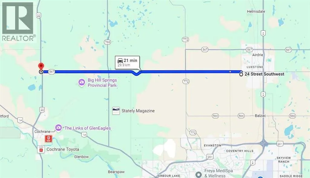 Discover the peaceful countryside at this 10+/- acres of beautiful land. This rare opportunity offers the perfect balance between peaceful rural living and unbeatable convenience. Located just minutes from Cochrane and a short drive from Calgary, this property gives you the rare opportunity to enjoy quiet country life without sacrificing urban accessibility. This place will be you a perfect setting for your future dream home! All essential services are available at the main road and the property already features a drilled wellâan excellent head start for future development. Just down the road, you can find a Shell Gas Station for quick fuel and essentials, making everyday errands simple and stress-free at the intersection of Big Hill Springs Rd and HWY 22. Create your private retreat or hold as a long-term investment â either way, this property offers endless possibilities. Nature lovers will appreciate the easy access to Banff National Park, Kananaskis, and Albertaâs finest outdoor destinations. Additionally HWY 567 takes you directly to Airdrie in about 21 minutes! Whether you seek tranquility, space, or a future building site, this piece of paradise has it all. Donât miss your chance to secure exceptional land in one of the most desirable rural areas of Rocky View County. GST is applicable. (id:27476)