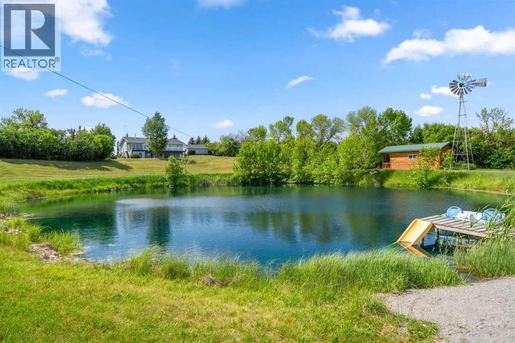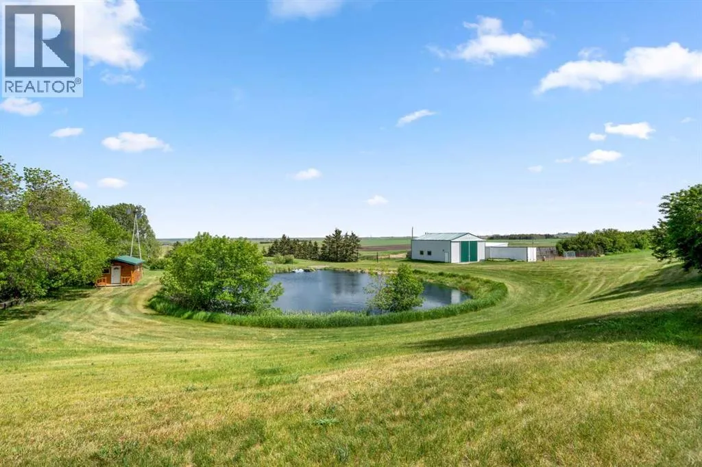 Welcome to this prairie homestead, set beneath the wide-open Alberta sky. This property offers more than a desirable location and impressive viewsâit reflects thoughtful development, practical design, and quality construction throughout.A gated entrance and solid, tree-lined driveway lead to a private homestead consisting of a 10-acre building site, 5 acres of pasture, and approximately 140 acres of hay land. At the building site, youâll find two move-in-ready homes, each with its own yard âan excellent layout for multi-generational living, rental or long-term guests.The main residence is a well-maintained 1,549 sq ft bungalow featuring three bedrooms, a fully developed walkout basement, and a detached oversized double garage. The second home is a renovated 1930s two-storey house offering 1,160 sq ft, a covered veranda, two upper-level bedrooms, 1.5 bathrooms, and its own double garage.Additional improvements on the property include a high-end shop with a graveled equipment yard, an additional equipment shed or barn, ample garden space, a greenhouse, and a corral with animal shelter and waterer, with pasture located conveniently nearby.The property also offers several recreational features: a golf driving range, a horseshoe pit, and a small cabin set beside two spring-fed ponds. One pond is stocked with trout, while the second is designed for recreation, featuring a small beach area, dock, and zip line. An RV plug-in is available for additional guests. With reliable water sources, the site is well-equipped for both residential and agricultural uses.The 140 acres of hay land, currently managed by the owner, provide flexibility for the next buyerâwhether you wish to farm the land or lease it to local producers.This property is well-suited for horse owners, small business operators needing space for equipment, or anyone seeking a peaceful country lifestyle with room to grow. Situated in Rocky View County, Alberta, it offers convenient access to the amenities of b oth the cities of Airdrie and Calgary, only a short drive away.A detailed Feature Sheet and additional photos are available upon request. If this property aligns with your search, we invite you to schedule a viewing. (id:27476)
