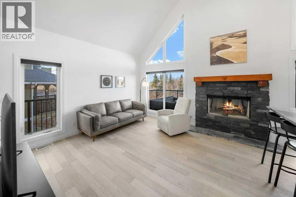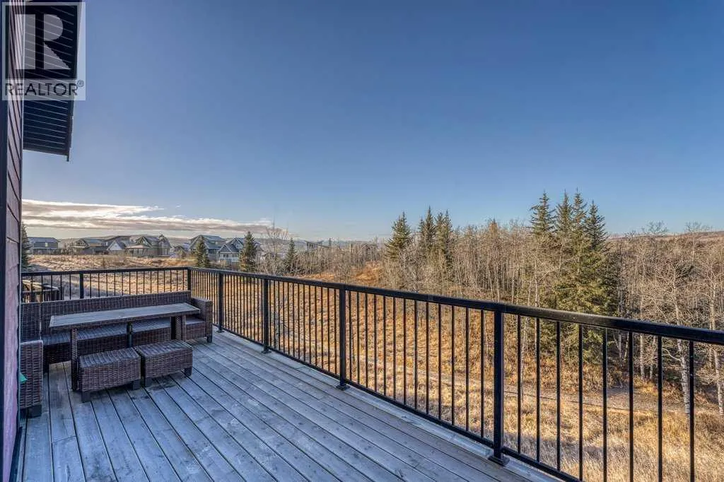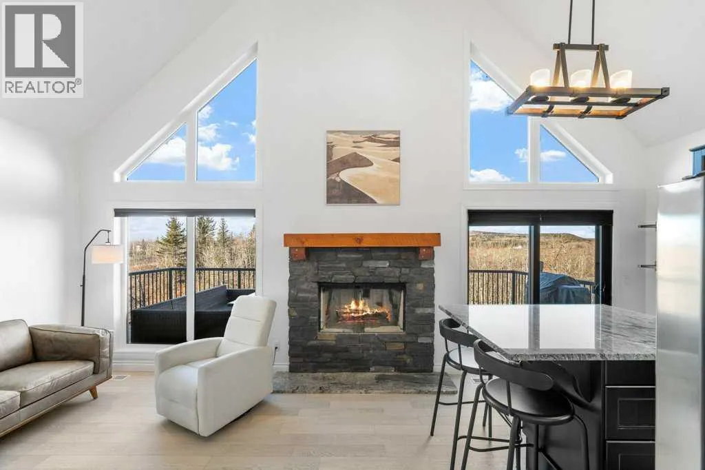 Perched in one of the most coveted locations within the community, this beautifully updated one-and-a-half story home captures the very best of lake living. Step inside through the convenient entryway to discover an open-concept living space where soaring windows frame unobstructed west-facing mountain views that will take your breath away morning and night. Fresh paint and new flooring throughout create a move-in-ready canvas, while the central wood-burning stone fireplace anchors the main living area with warmth and character.The main level thoughtfully offers two bedrooms alongside a full bathroom, ideal for family or guests. Ascend to the lofted primary suiteâa private retreat with its own ensuite bathroom. Natural light pours through every corner of this home, making even the grey days feel bright.The developed basement extends your living space with a cozy family room or ideal space for a fourth bedroom, giving you flexibility as your needs evolve. With over 1500 square feet of living space the possibilities are endless. Outside, the expansive wraparound deck overlooks the ravine with nothing but nature and mountains beyondâno neighbours to interrupt your view. Located on one of the larger lots in Phase 1 at 5,401 square feet, the freshly landscaped property includes a crushed stone driveway leading to a double detached garage with the potential for an additional guest suite.Living here means more than just a beautiful home. A quick stroll brings you to the exclusive clubhouse where resort-style amenities await: boat launch, indoor pool, outdoor hot tub, tennis courts, gym, commercial kitchen, BBQs, and a wood-fired pizza oven on the huge sun soaked patio. Ideally situated within 30 minutes of both Calgary and the Rockies and only 15 minutes to Cochrane, Cottageclub delivers the best of both worldsâurban convenience meets mountain adventure at your doorstep. Enjoy this year-round recreational paradise with every amenity and service you could possibly want jus t a short drive away. (id:27476)