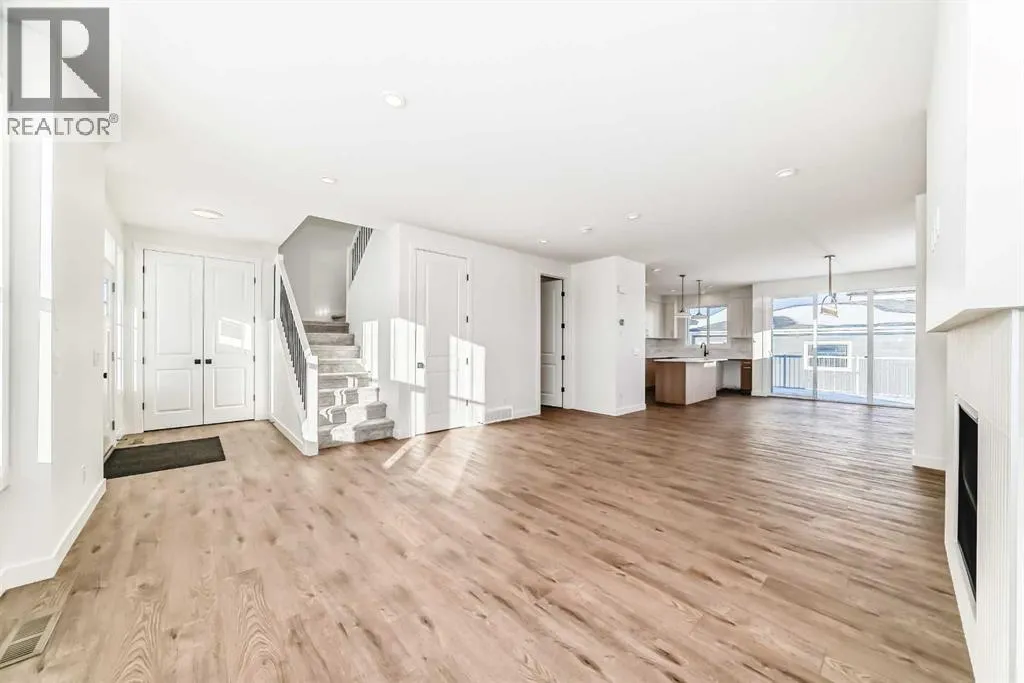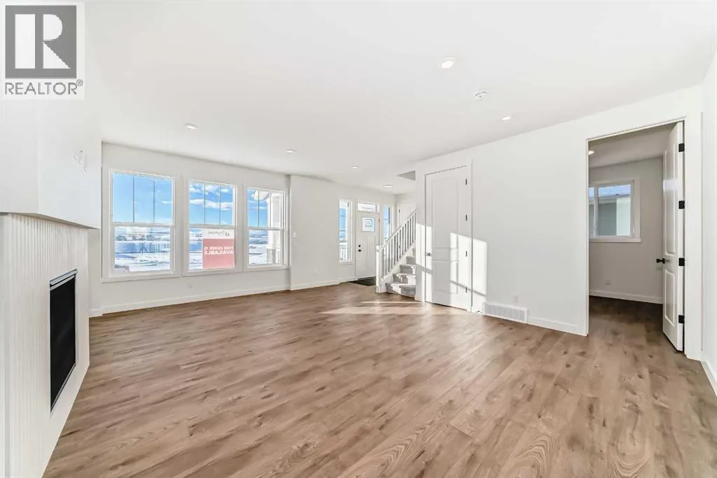 A triple garage included on what is to become one of the most sought after streets in Harmony. Across from very high end luxury homes backing onto the lake in Harmony.. Experience the pinnacle of Rocky View County living in this exceptional new-build, two-storey home nestled in the highly coveted, master-planned community of Harmony, designed for families seeking both luxury and connection. This residence boasts an expansive and functional floor plan featuring three spacious bedrooms and two and a half meticulously finished bathrooms, providing ample space and privacy for the whole family. The main floor is an entertainer's dream, anchored by a cozy gas fireplace in the bright Great Room, complemented by a sophisticated, dedicated Dining Room for formal occasions, and a versatile den perfect for a home office or study area. Ascend the stairs to find the dedicated family retreat: a large Bonus Room offering flexible space for media or play, ensuring the main living area remains serene. The exceptional outdoor amenities include a charming front porch for enjoying your morning coffee and a private rear deck ideal for summer barbecues, leading to the highly functional, oversized triple car garage for secure parking and storage. Beyond your property line, the Harmony community elevates your lifestyle with unparalleled access to nature and recreation, featuring a pristine lake for year-round activities, extensive parks and playgrounds, and a state-of-the-art recreational facility, making this not just a new house, but the foundation for an extraordinary life lived in balance. (id:27476)