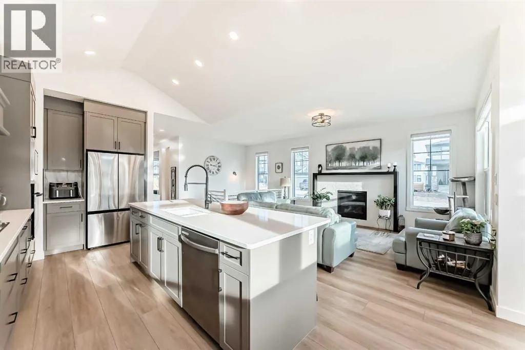 Welcome to this exceptional bungalow-style home in the picturesque community of Harmonyâwhere modern luxury meets natural beauty. Perfectly positioned on a generous corner lot, this residence offers an elevated lifestyle that truly lives up to its name. From the moment you arrive, the home's striking curb appeal and thoughtful design stand out. The insulated, heated, detached triple-car garage is a dreamâcomplete with epoxy flooring and upgraded lightingâproviding secure, spacious parking and storage. Inside, the bright, vaulted, open-concept layout is ideal for contemporary living. The home features three well-sized bedrooms, including an impressive primary retreat. This serene sanctuary showcases a spa-inspired ensuite with dual sinks, a free-standing tub, and a large tiled shower. At the heart of the home is a chef-inspired kitchen designed to impress. Highlights include a massive centre island, gas cooktop, upgraded cabinetry, built-in garbage/recycling pull-out, and a fridge with a self-filling water dispenser. The open layout encourages both connection and effortless entertaining. The expansive living room is bright and has a cozy fireplace. A main-floor den adds versatility, making it perfect for a home office or quiet reading space. The dining area is large which is perfect for when you want to entertain. The fully finished basement features 9' ceilings, two additional bedrooms, and a spacious family/games areaâideal for movie nights, relaxation, or hosting guests. Need RV parking? This corner lot provides the option to store an RV or extra recreational toys with ease. Additional upgrades include a large deck spanning the entire back of the home, automated blinds, two phantom screen doors (front and back), a new ceiling fan, and included washer and dryer. Harmony is more than a communityâit's a lifestyle. Enjoy the lake, golf club, scenic walking and biking paths all while being close to essential amenities. Situated just steps from Mickelson National Golf Club, LaunchPad, and access to the 2 Harmony Lakes. You'll experience a perfect blend of tranquility, recreation, and convenience. Don't miss your opportunity to call this remarkable property home. Contact us today to schedule your private viewing and start your next chapter in Harmony (id:27476)