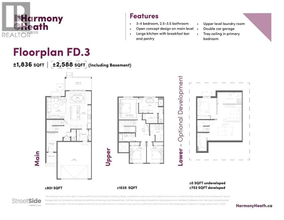 Welcome to 1140 in Harmony Heath âmove-in ready is approaching, and new photos are coming. Your ideal home for your family to grow, thrive, and create lifelong memories. Designed with every family member in mind, this home offers a blend of comfort, style, and convenience thatâs hard to beat. This interior home includes a fully developed basement, a double attached garage, and a walk-through mudroom featuring handy pantry shelving and lockers. The expansive 33' driveway ensures plenty of room for your vehicles. Step outside to a 16âx8â covered deck and a large, sodded backyard enclosed by a privacy fence, seamlessly blending into developer-installed wrought iron fencing along the greenspace. Inside, the kitchen is a chefâs dream with full-height dual-tone cabinets in dark grey and an oak finish, complete with Samsung appliances and a gas line. The adjacent, spacious living room is perfect for family gatherings. The basement, with 9' ceilings, has plenty of space for a TV lounge and room for air hockey or a ping pong table. The upper-level primary suite is your peaceful sanctuary with beautiful green-spaceviews, a freestanding bathtub, and a luxurious 10mm glass shower. Laundry days are more manageable with an upgraded laundry package: quartz counter, + upper cabinet with hanging rod above the side-by-side machines to tackle those everyday chores. Living in Harmony Heath means benefiting from top-rated schools with convenient bus pick-up, a community filled with activities, including an adventure park, skate park, climbing wall, and over 27 km of paved pathways. Plus, enjoy water activities at both lakes and an off-leash dog park. Please come to our brand new Show Home at 1176 Sailfin Heath to view a similar home and choose a community that supports the balance youâve always dreamed of. Welcome to your next adventure. 45 Minutes East of Canmore and 15 Minutes west of Calgary. (id:27476)