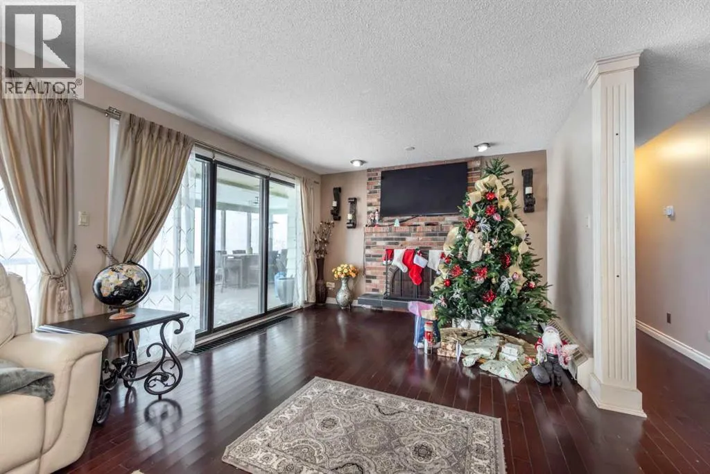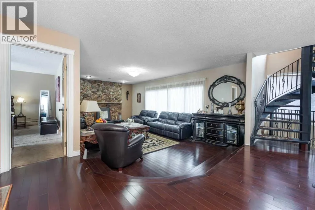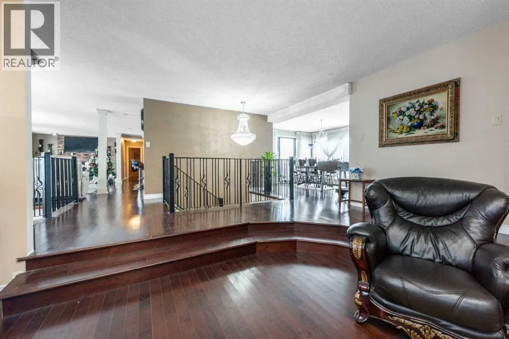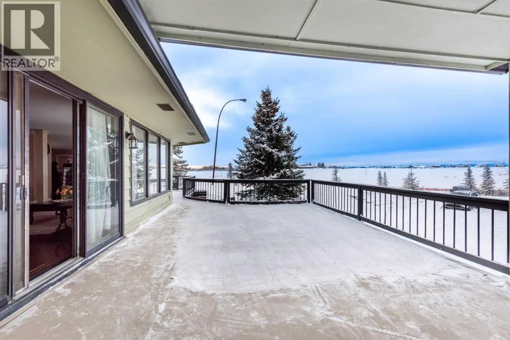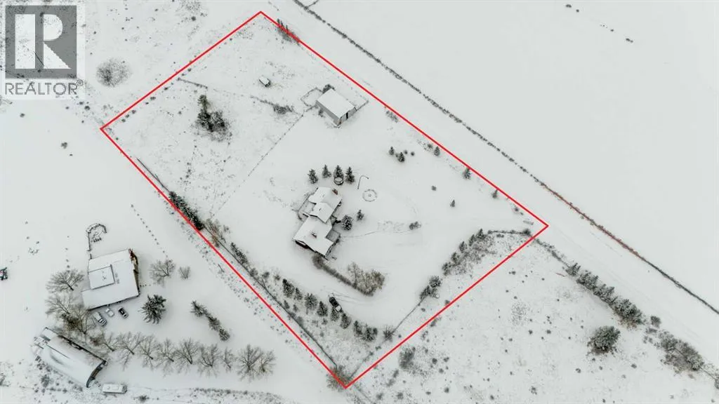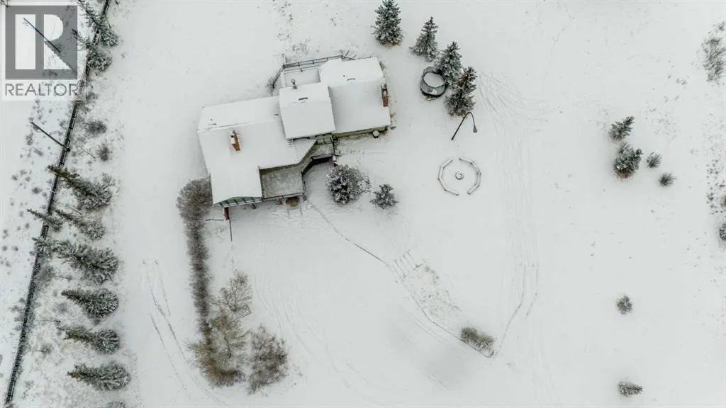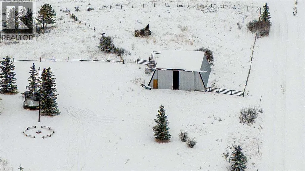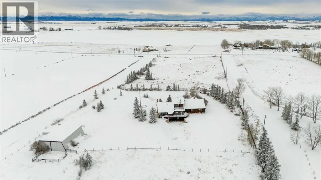 Rare opportunity in sought-after North Springbank! Nearly 4 acres perched on a picturesque knoll with 360° mountain, valley, and city views. This peaceful, private acreage offers gently rolling, fenced landâideal for families, hobbyists, anyone seeking space, or the perfect lot to build your dream homeâall just minutes from the upcoming Bingham Crossing Mall, new Costco, top schools, Springbank Airport, and Springbank Links Golf Course. This reversed walkout, lofted hillside bungalow features a bright open layout, a sunken living room with brick fireplace, formal dining room, spacious kitchen with island, large family room with second fireplace, and 3 bedrooms on the main level. A unique upper office loft accessed by a circular staircase adds extra versatility. Enjoy the massive partially covered west-facing deck plus an additional east deck and balcony. A 3-car heated attached garage with covered carports provides ample parking, along with room for RVs and equipment. The 40âx47â metal Quonset, offers excellent workshop, storage, or hobby use. This is a prime Springbank location offering quiet country living with outstanding convenience and exceptional long-term potential. (id:27476)