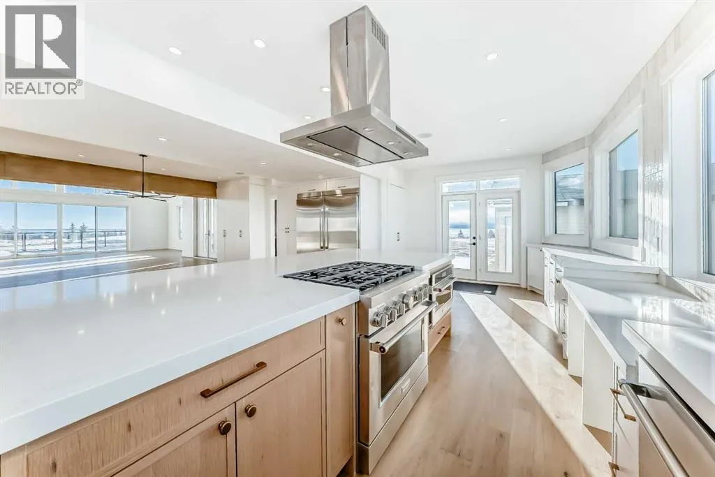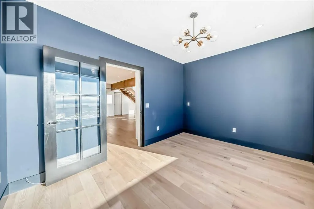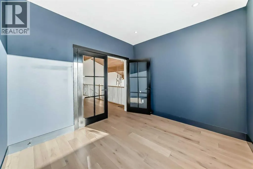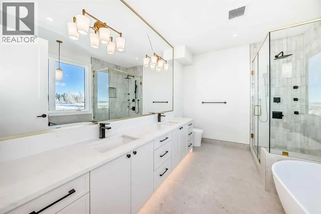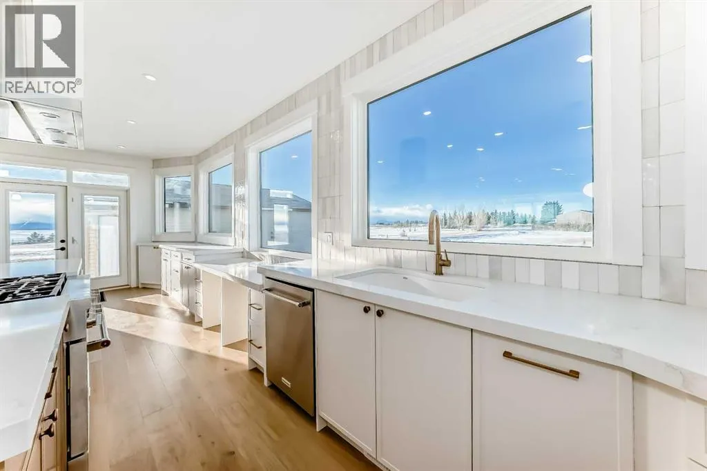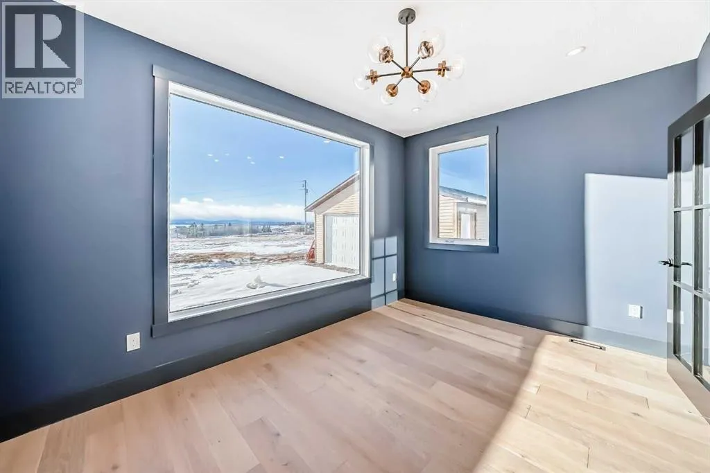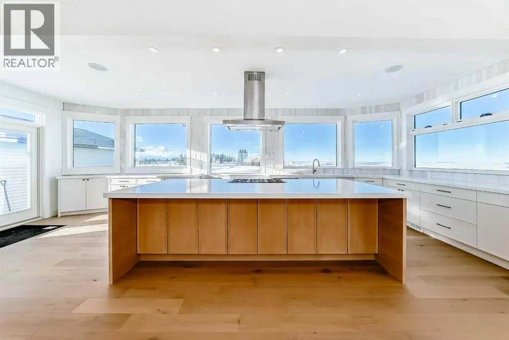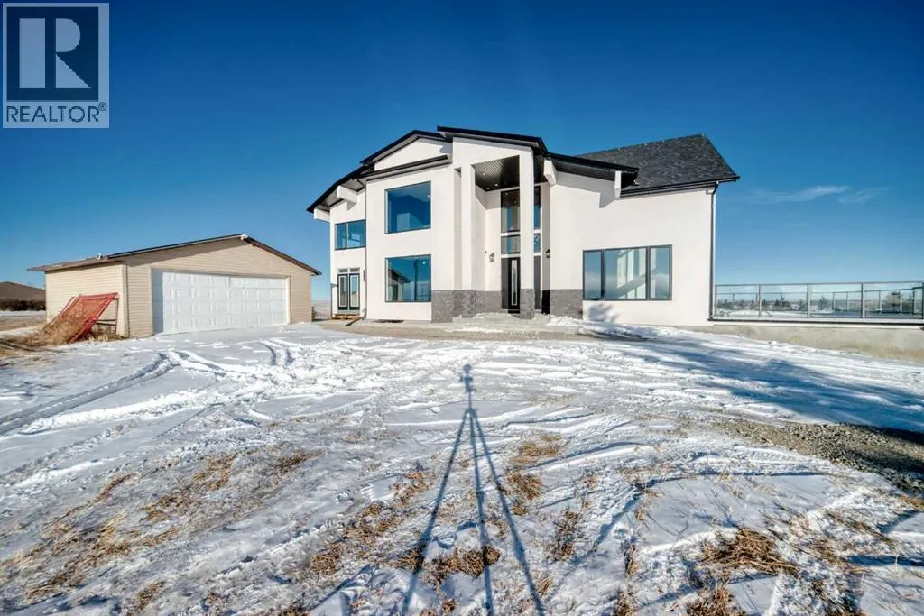 WELCOME TO THIS EXCEPTIONAL, FULLY RENOVATED ACREAGE set on over 4 acres just minutes from Cochrane, offering unobstructed 360° panoramic views of the Rocky Mountains and the Cochrane valley. Located in a quiet, cul-de-sac-style acreage community, this remarkable property provides privacy, peace, and minimal trafficâideal for those seeking a refined country lifestyle with city convenience nearby.This striking 1.5-storey residence offers over 6,600 sq. ft. of total living space including a fully developed walk-out basement, delivering exceptional functionality for families, entertaining, and flexible living arrangements.The main level impresses with vaulted ceilings, exposed wood beams, and expansive windows that flood the home with natural light while perfectly framing the breathtaking views. The west-facing kitchen features high-end appliances, ample cabinet space and premium finishesâideal for both everyday living and entertaining while enjoying spectacular sunsets and mountain views. The open-concept living and dining areas create a warm, inviting atmosphere.The main-floor primary retreat is complete with large windows showcasing the scenery and a luxurious 5-piece ensuite featuring a soaker tub, walk-in shower, dual vanities, and elegant finishes. A spacious second bedroom, a stylish 4-piece bathroom, convenient main-floor laundry, and a flexible den or office space complete this level.The upper floor offers an expansive bonus room with ample space for lounging, games, or a pool table. A bright sunroom, a 3-piece bathroom, and a dedicated flex space ideal for a home office, reading area, or hobby room round out this level, providing additional areas for relaxation, work, or creativity.The fully finished walk-out basement includes a large recreation room, a bedroom with a walk-in closet and 4-piece ensuite, a 2-piece bathroom, a laundry area, and a mudroom with exterior accessâmaking this level ideal for guests, extended family, or added convenience.Outside , enjoy wide open views, ample parking, and excellent storage with a triple attached garage plus a double detached garage. The acreage offers great flexibility and future potential and may be suitable for short-term or vacation rentals, small event hosting, or agricultural and hobby use.A rare opportunity to own a fully renovated acreage with over 4 acres of land, a finished walk-out basement, and incredible viewsâall just minutes from Cochrane. Book your private showing today. (id:27476)