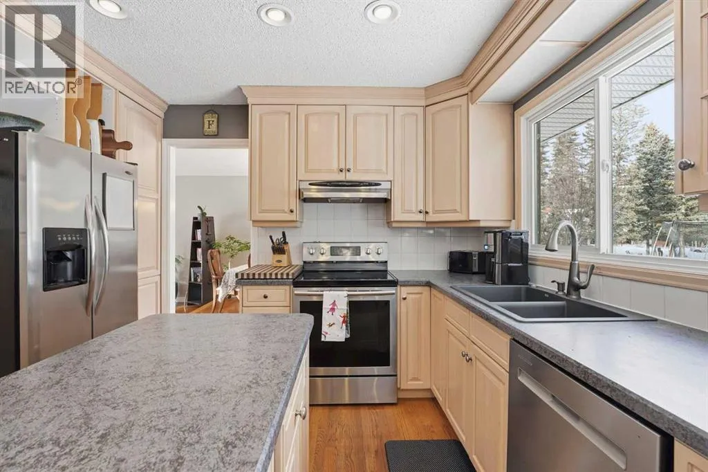Welcome to a beautifully cared for family home nestled among the towering evergreens of Redwood Meadows where nature, space, and community come together. This inviting 2-storey residence offers over 2,500 sq ft above grade plus a fully finished basement, providing over 3,300 sq ft of developed living space on a nearly 16,150 sq ft lot. Warm and welcoming from the moment you arrive, the home features a new custom Oak front entry door and new garage door, leading inside to a thoughtfully designed layout with hardwood flooring and newer, luxuriously soft carpeting throughout. The main level offers exceptional versatility, highlighted by a sunken great room with a gas fireplace, an additional living room with a wood-burning fireplace, formal dining space, and a bright kitchen overlooking the private treed yard.Upstairs, the home features three generous bedrooms, including a unique oversized secondary bedroom (previously two rooms combined into one), along with a spacious primary suite complete with dual-vanity ensuite, jetted tub, and very spacious walk in closet. The fully developed basement provides an additional large bedroom with ensuite, plus an expansive storage and utility room supported by two furnaces and two hot water tanks for year round comfort. The sellers also confirm the property has never experienced flooding or water intrusion during their ownership, offering added peace of mind.Outdoors, enjoy the serenity of mature trees, a large composite rear deck and greenhouse, all within steps of the Redwood Meadows Golf Course, community pathways, and the peaceful Elbow River nearby. The yard is also equipped with an invisible pet fencing system for added convenience. This is an incredible opportunity to experience community oriented living surrounded by natural beauty, just minutes from Bragg Creek and an easy commute to Calgary. Book your private showing with your favourite Realtor® today! (id:27476)