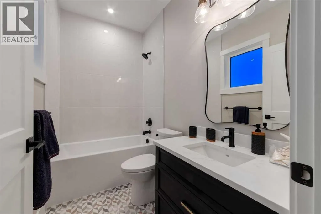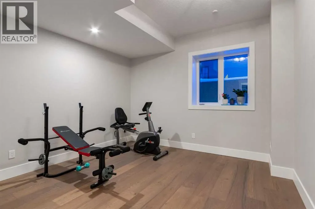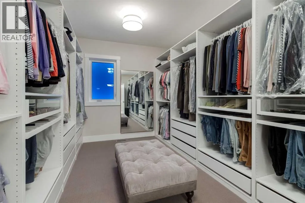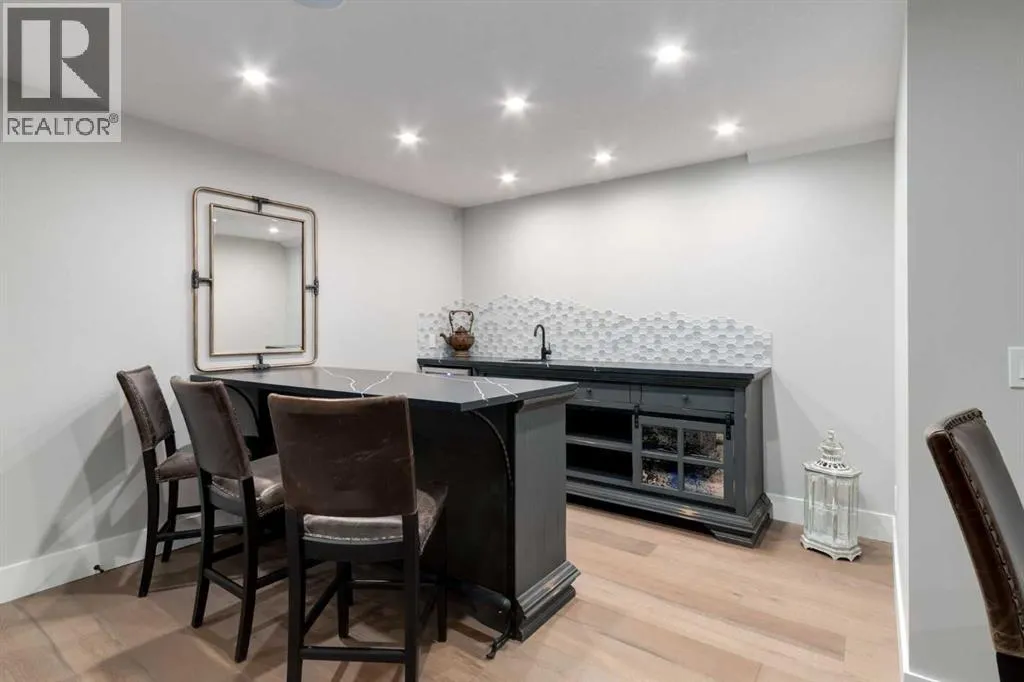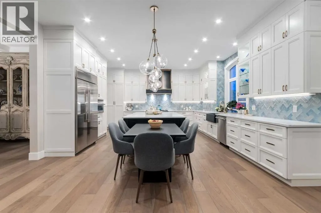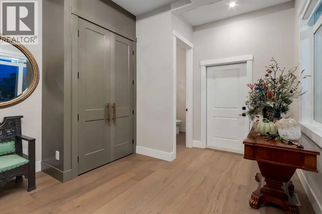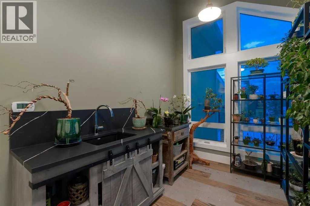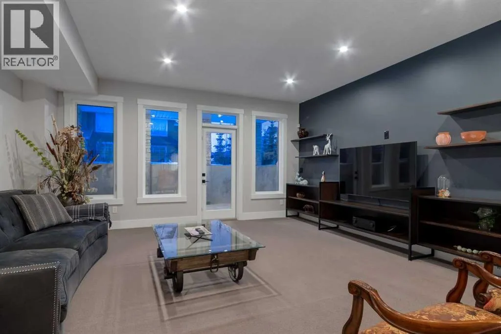 Masterfully executed in a transitional design style, this exquisite Family Home showcases nearly 5,500 sf of impeccable luxury defined by unparalleled craftsmanship and the highest quality of finishes throughout, including an ELEVATOR for easy accessibility to all three floors. The exterior architecture exudes a timeless appeal from the peaked rooflines to the "eyebrow" detailing to the rich stone accents, incredible window designs, a front veranda & upper balcony, and a striking "piece de resistance" front door. The beautifully landscaped front and back gardens impress with perfectly manicured flower beds, and a textural mélange of shrubs and trees. The home's layout is outstanding, while the interior design elements leave a lasting impression on the most discerning "eye for design". The main floor boasts soaring ceiling heights with coffered detailing, impressive, large windows flooding the interior with streams of natural light, custom millwork designs, beautiful, wide-plank hardwood floors, timeless floor and backsplash tile designs, and last but not least, exquisite "Schonbek" chandeliers. The grand, light-filled great room features a magnificent fireplace. It is open to the decadent kitchen and an elegant dining room perfectly suited to hosting dinner parties for family and friends. The front study offers complete privacy and leads to a unique "plant sunroom". The custom-designed kitchen is a chef's dream featuring high-end appliances, ample storage with pullout units, a gigantic center island, timeless quartz countertops, a coveted "Hammersmith" range hood, and last but not least, an impressive chevron pattern backsplash design executed with the utmost precision. Beautifully custom-designed stairs ascend to the upper level complete with three bedrooms and a bonus room, perfectly suited for the children's play area, a TV/games room, or a study room. The master suite is a luxurious retreat complete with wool carpeting, a showpiece chandelier, its own West-facin g balcony and a lavish spa-like ensuite and "dressing room" - a fashionista's dream. Each of the children's bedrooms offers its own chic ensuite bath. The lower level is a true "entertaining haven" featuring a family/TV room that opens onto a private patio area, a wet bar complete with custom furniture-piece units, a wine room, three additional bedrooms, one of which being designated as an exercise room, a full bathroom and a large storage/cold room area. The double and single garage spaces are heated. The single garage is complete with 220 V wiring to allow for an EV charging station. The monthly HOA fees include front yard maintenance, including weekly mowing/trimming; weekly curbside garbage/recycling pickup; snow removal on the streets, sidewalks, pathways & the central plaza; maintenance of the central plaza, cascading ponds, outdoor kitchen, and playgrounds. Please refer to the community website for a wealth of information. MUST BE SEEN! (id:27476)