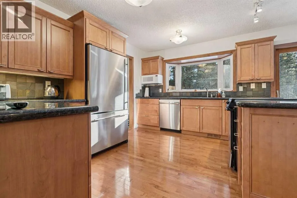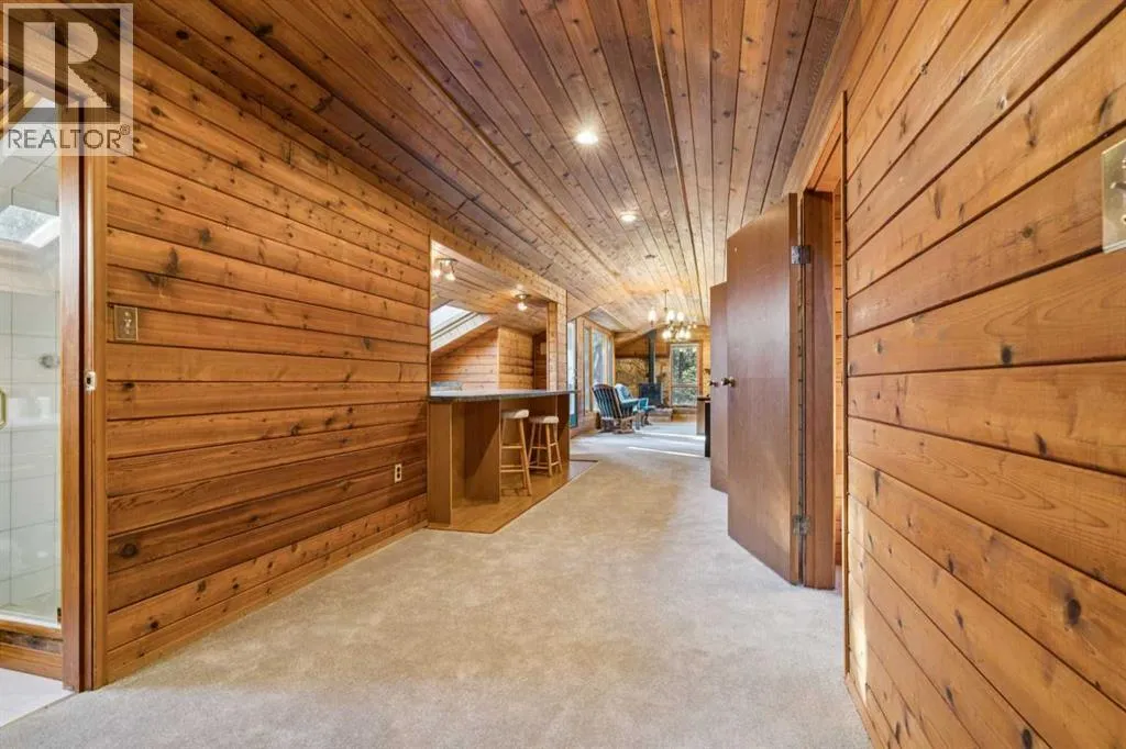 Deep in the woods of Redwood Meadows lies a house that is so much more than it seems. Set modestly away from the street into the trees, you might not notice it on a quick drive past- but there are many things that make it worth exploring! First of all is the pride of ownership- this house has been cared for and it shows in every room. The main floor features 3 bedrooms, 2.5 baths, a multitude of areas for entertaining and living, and a deck with outdoor fireplace that would be the envy of anyone who likes to spin a tale to friends under the stars. The kitchen has been updated with new appliances, lighting and gorgeous granite countertops. The primary bedroom has custom closet inserts and an ensuite with modern tile and fixtures. The main floor on its own would be a stunning bungalow, but there is more-the upstairs loft is where this home truly shines. The aura of the second floor brings to mind the quintessential cozy cabin with its wood paneling and new gas fireplace in a Rundlestone inglenook. It is another world upstairs, and has two snug bedrooms, a full bath, wet bar, and renovated balcony with glass balustrade. What could you do with this space? A home based business. A unique space for visiting family. Nanny quarters, art studio, or a bed and breakfast? The potential is endless and intriguing. The upgrades to this home are too numerous to list but include new windows, furnace, hot water heater, bathroom renovations, carpet, roof, insulation, electrical and exterior paint. Everything has been taken care of, all you have to do is move in and enjoy this incredible neighbourhood. Redwood Meadows features golf, fishing, hiking, mountain biking, x-country skiing, tennis, disc golf, and moreâ¦right outside your front door. Located only 30 minutes from Calgary, 8 minutes to the Bragg Creek hamlet, with access to great schools, shopping and restaurants, and right at the gateway to all the recreational opportunities of Kananaskis Country. Come see why everyone wants to live here! (id:27476)