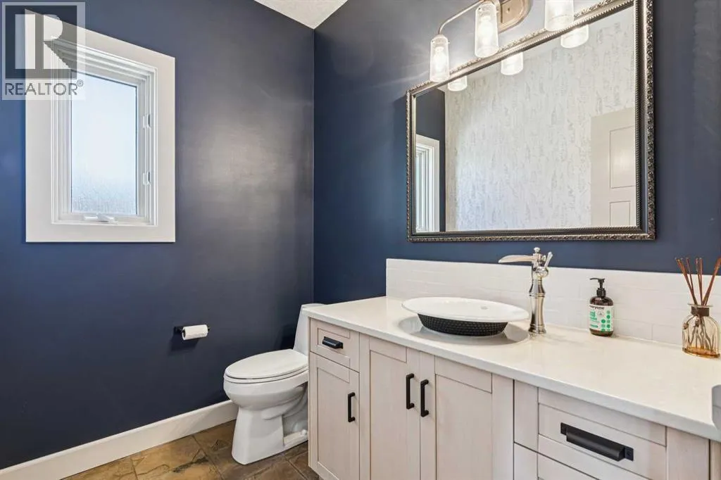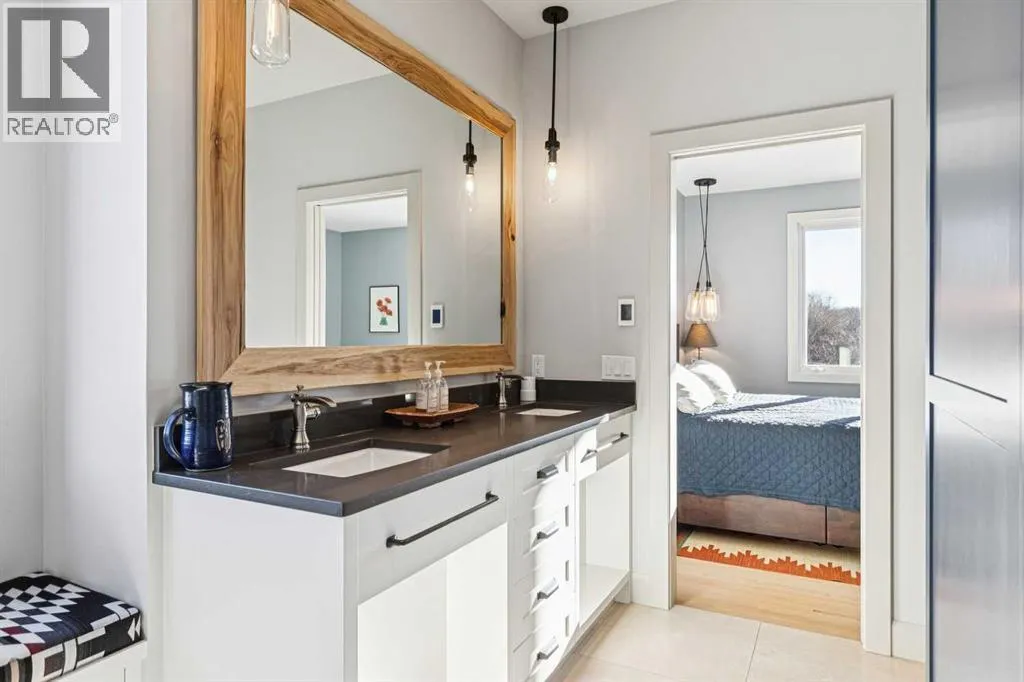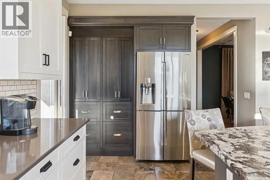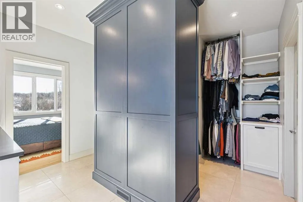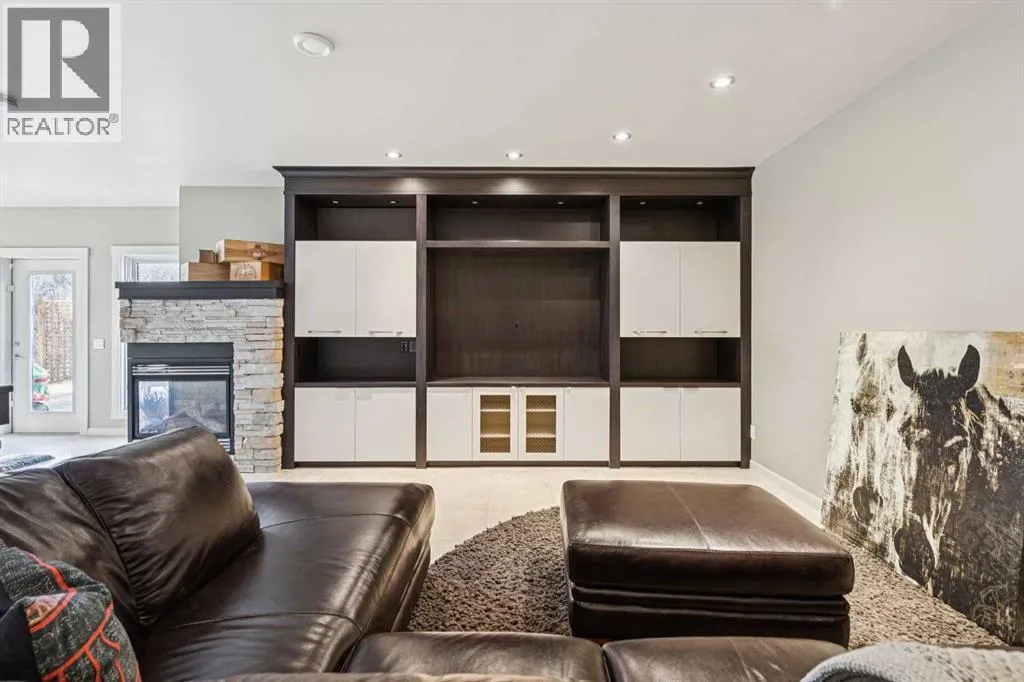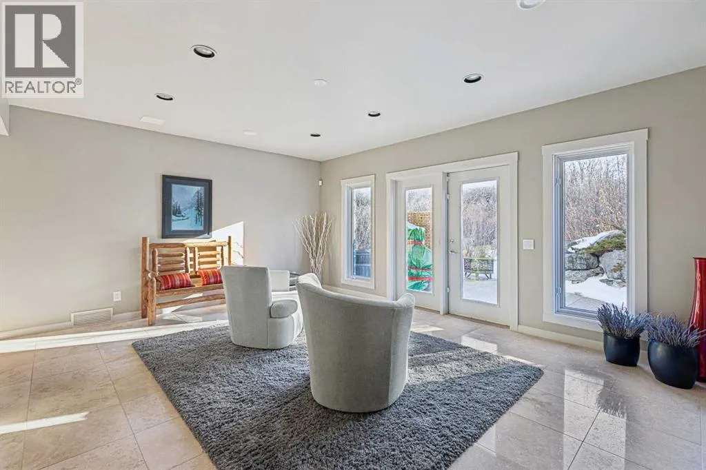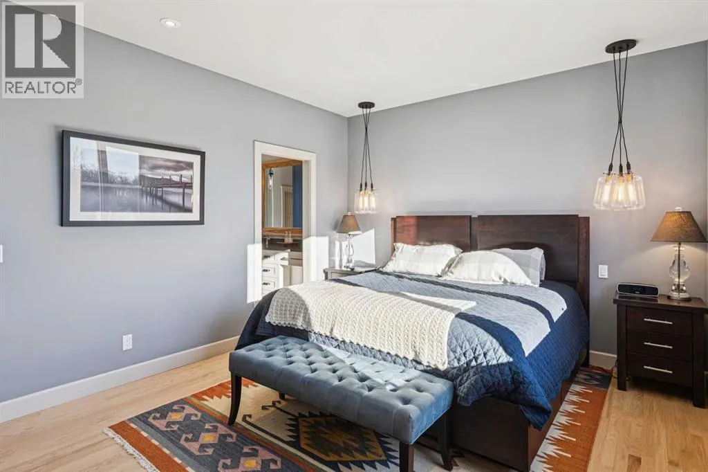 The French countryside awaits you in this spectacular 2,900 square foot one and one-half storey bungalow on a two-acre lot in the three-time award-winning âCanada Community of the Yearâ, Elbow Valley. Nestled in the Elbow River Valley, just west of Calgary, this prestigious community offers genuine estate living alongside unrivalled amenities. This beautifully upgraded and renovated home offers a dramatic open staircase, two storey foyer and great room ceilings, refinished quality hardwood floors throughout the main floor, staircases, and upper level. The professionally renovated kitchen was expanded and features shaker-style cabinets with soft- close doors, quality Wolf and JennAir stainless steel appliances, a feature center island with a special one-piece curved leather-finished granite cooktop. The formal dining room, warm and inviting with its coffered ceilings and hardwood floors, is perfect for entertaining. The main floor primary bedroom features a walk-through closet with custom built-ins and a luxurious ensuite bathroom that has heated porcelain tile floors, 10-mil glass shower, quartz vanity countertops, and double sinks. Overlooking the great room below, the upstairs boasts two large bedrooms, each with a full ensuite bath, walk-in closets, and incredible views. Professional walkout basement development is perfect for the mature family with a billiards/games room, a family room with a built-in entertainment center, a custom bar, a second fireplace, a full bath, two more bedrooms with new flooring, and multiple storage spaces to utilize by design. No-maintenance landscaping designed to blend into the natural surroundings features an exposed aggregate patio, a dry creek bed, a continuous curb, a natural Rundlestone exterior, and total privacy. Oversized triple attached heated garage with a developed 300 sq. ft. bonus room, perfect for a man cave, home office, or storage. Walk-up staircase to the garage, slab heating in the basement, upgraded mechanical, a nd 200-amp service. A blend of smooth-finished and knocked down stipple ceilings, renovated baths, upgraded lighting, solid core doors, nine-foot ceilings, laundry on the main and upper levels, clad windows in good condition, with three new triple pane windows added. From its sweeping views and prime location to its thoughtful design and upgrades, this beautiful Elbow Valley home is an absolute must-see! (id:27476)