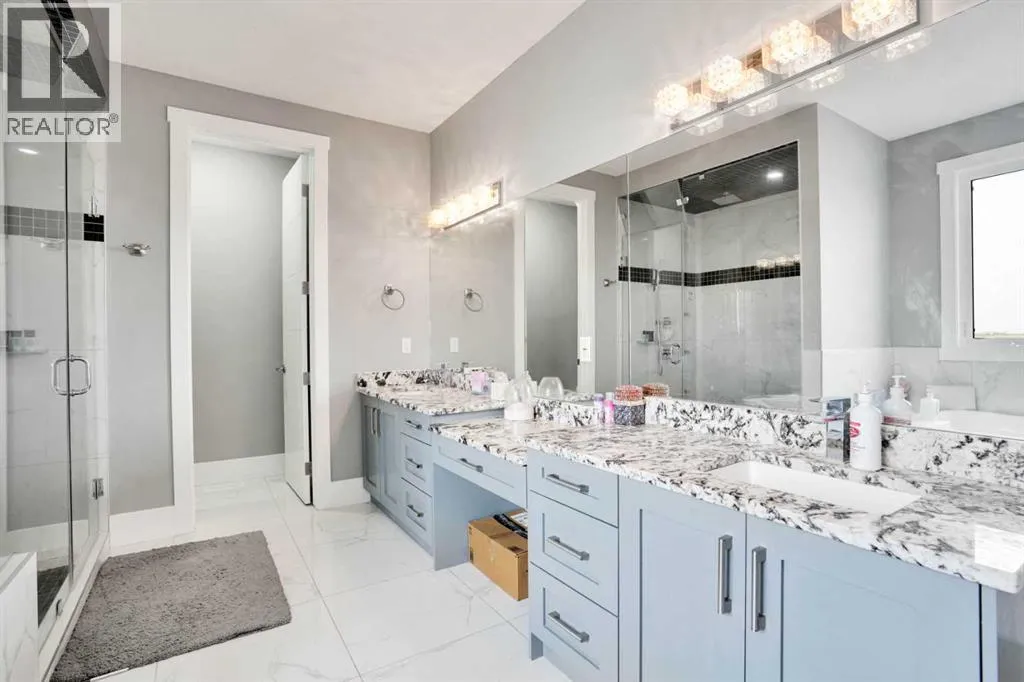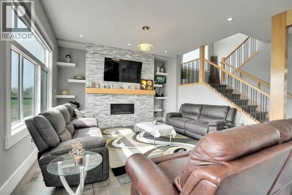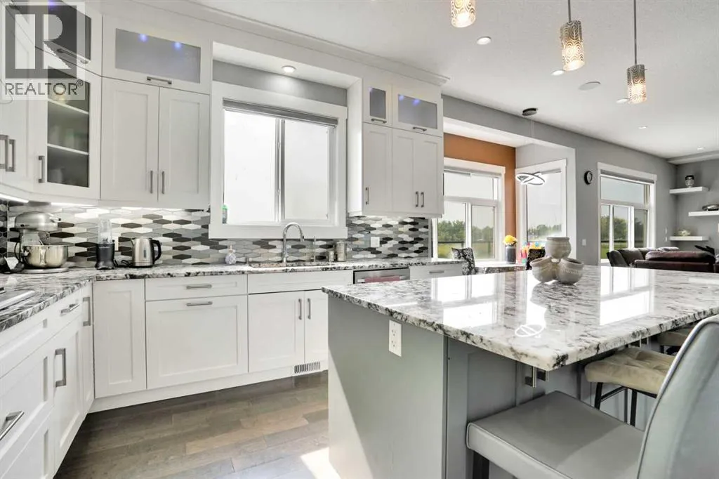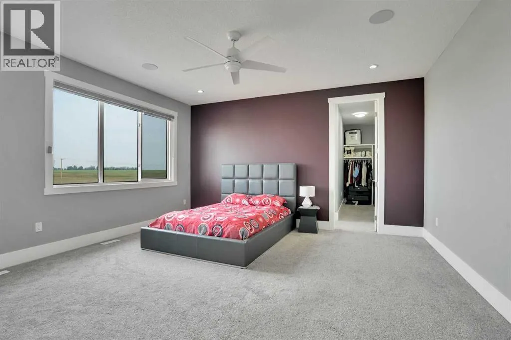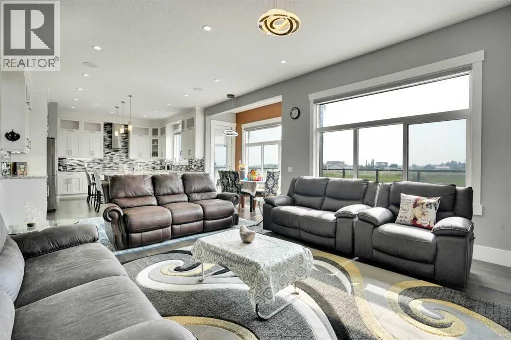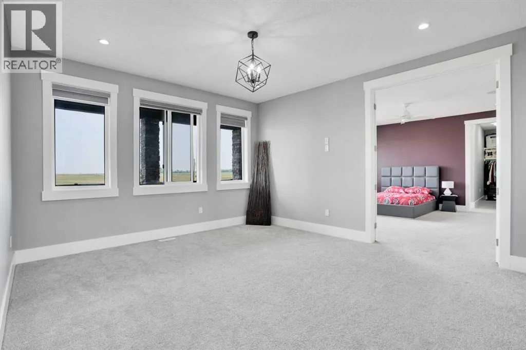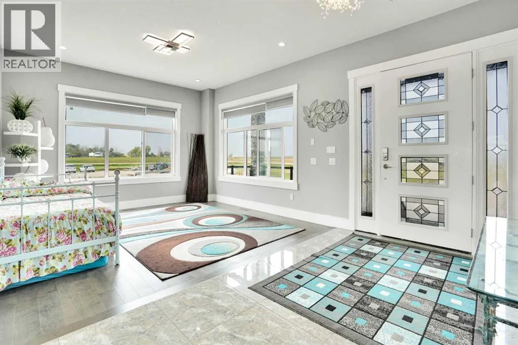 Refined Country Luxury Just Minutes from Chestermere. This 2021 custom-built estate delivers over 5,400 sq. ft. of exceptional craftsmanship across three levels on nearly 2 acres. Designed for Luxury, functionality and family living, it presents a striking two-storey exterior with terrace Balconies, dazzling stonework and an Oversized Heated Garage that accommodates 6+ vehicles. On the main level, a grand foyer opens into bright, welcoming spaces filled with large windows for Natural Light. The inviting family room features a cozy fireplace and flows into a stunning Chefâs kitchen with Granite Counters, a massive island, abundant cabinetry and a walk-in Pantry. A spacious Office that can be converted into a seventh bedroom sits next to a full bathroom, while a convenient mudroom off the garage keeps everything organized. A beautiful Deck off the kitchen â perfect for summer BBQs and entertaining. Upstairs are four generous bedroomsâeach with its own ensuite, including two with Steam Showers, walk-in closets and private Balconies. A family room, flex space and convenient laundry complete this level. The primary Ensuite is a private retreat with a lavish 5-piece ensuite (granite counters, soaker tub, steam shower) and walk-in closet. The lower level is built for versatility and entertainment with a custom Wet Bar and full Media/Theatre room with washroom. The other side houses a fully self-contained 2-bedroom Legal suite complete with kitchen, bath, laundry and private entrance, while above-grade windows flood the entire level. The basement is equipped with in-floor heating for year-round comfort.with natural light. Car enthusiasts will appreciate the Attached, Heated, and Insulated garageâapproximately 35â x 74â with high ceilings ready for a hoist, built-ins, and space for multiple vehicles. Thereâs even a dedicated hot-tub room already set up for your relaxation needs. Outdoors, the expansive grounds are ready for your visionâa sports court, pool, outdoor kitchen o r entertainment area. Smart-home features include Surround Sound, exterior Puck Lights, Security Cameras, and Dual high-efficiency furnaces. Situated in Rocky View County, this estate combines peaceful country living with urban convenienceâjust 5 minutes to Chestermere and a short drive to Calgary with quick access to Hwy 1, Stoney Trail, Deerfoot Trail and Glenmore Trail. (id:27476)