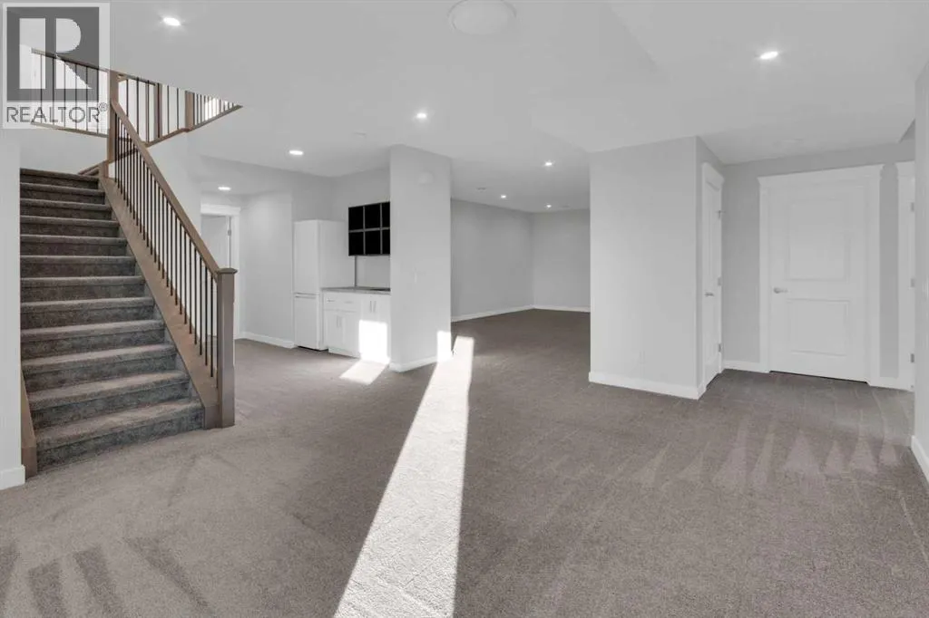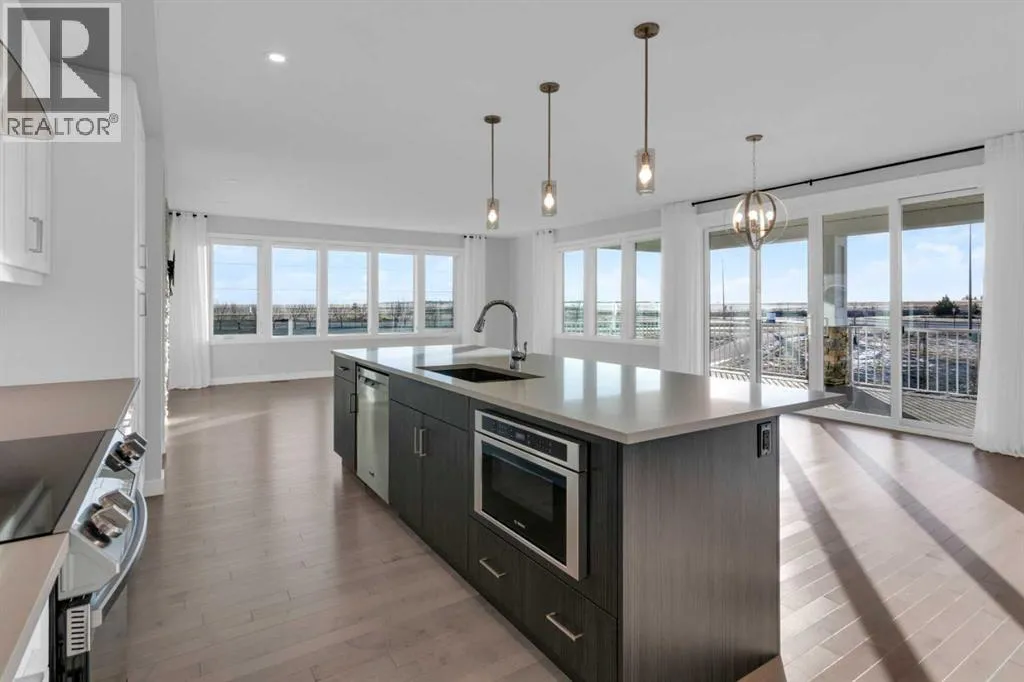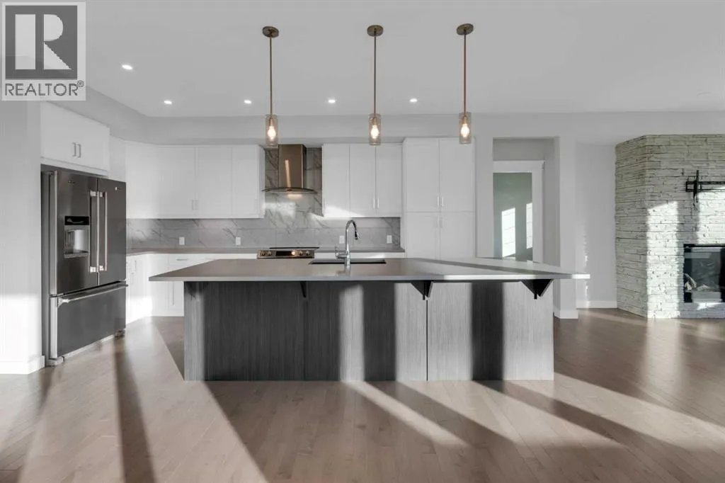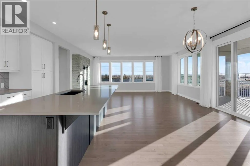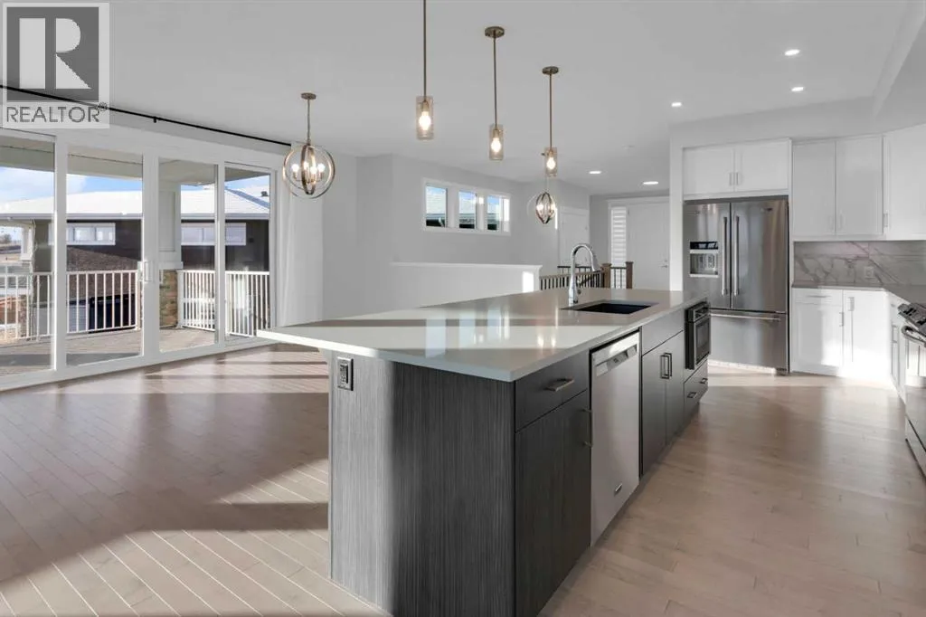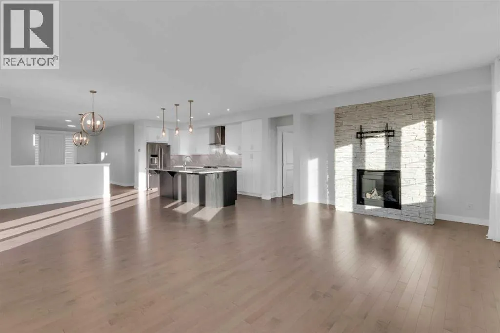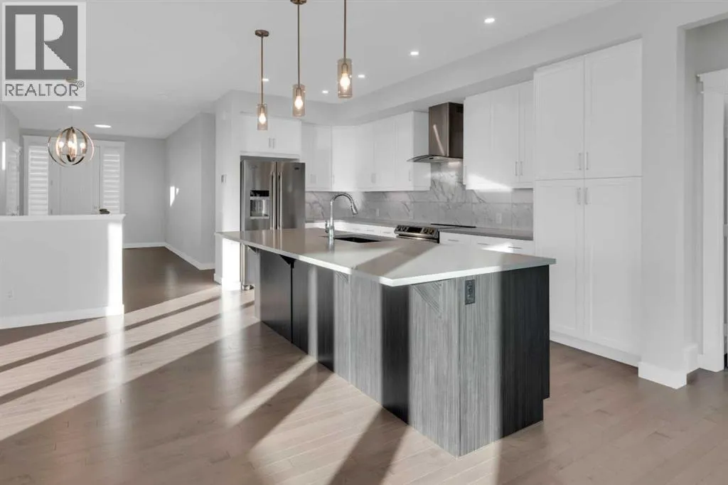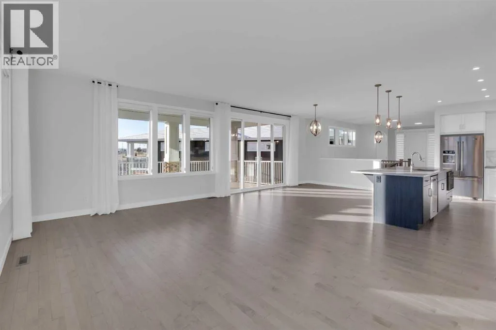 Welcome to this stunning, fully developed bungalow villa in the award-winning community of Harmony. Offering a true lock-and-leave lifestyle with no condo fees, This turn-key residence is beautifully designed with nothing to do but move in and enjoy the exceptional lifestyle Harmony has to offer. The main level features an inviting open-concept floor plan highlighted by 9â ceilings, rich hardwood and ceramic tile flooring, and an impressive gourmet kitchen. The kitchen is a true culinary masterpiece with sleek white custom cabinetry, pristine quartz countertops, an extra-long island, high-end stainless-steel appliances including an induction cooktop and built-in oven, and a cabinet-style pantry, perfect for both everyday living and entertaining. Expansive windows and double sliding patio doors on the south side flood the home with natural light and lead to a covered deck, creating an exceptional outdoor living space. The primary retreat offers a large walk-in closet and a luxurious spa-inspired ensuite complete with a standalone soaker tub, oversized shower, and double vanity. The fully finished basement is equally impressive with 9â ceilings, two generous bedrooms (both with walk-in closets), a full bathroom, spacious recreation room, a wet bar, and a large media room. A garden door opens to a covered aggregate patio, complemented by a circular stone seating area, ideal for relaxing or entertaining. Additional highlights include motorized, zebra blinds, an oversized garage, professionally landscaped yard with underground irrigation, and a prime location backing onto a walking path. As a resident of Harmony, enjoy unparalleled community amenities including a pristine lake with swimming, fishing, and paddle-boarding, extensive walking and biking paths, parks, playgrounds, dog park, and year-round community events. Golf enthusiasts will love proximity to the world-class Mickelson National Golf Club and LaunchPad. All of this, just minutes from Calgary, perfectly bala ncing mountain serenity with urban convenience. This exceptional home blends meticulous design, luxurious finishes, and an unbeatable locationâoffering a truly harmonious living experience. (id:27476)
