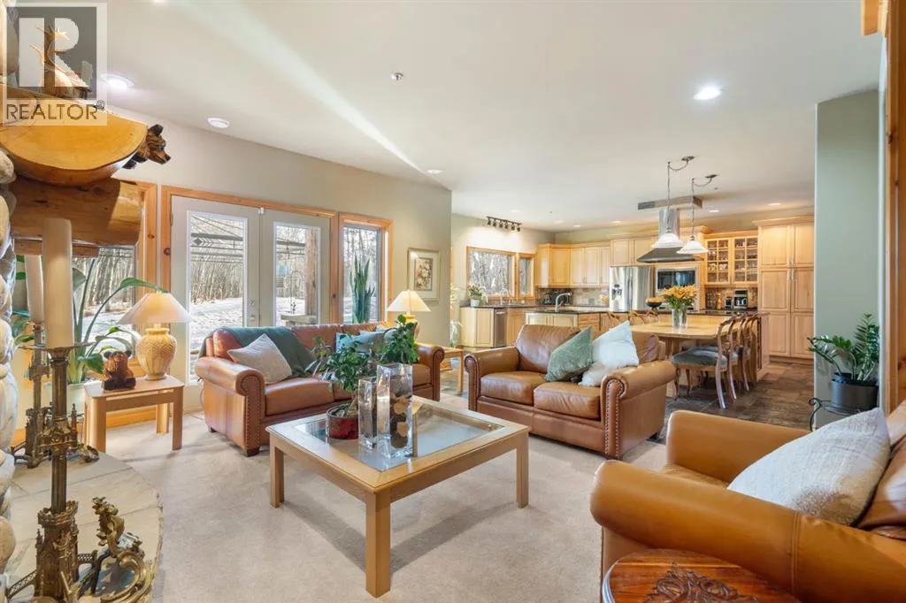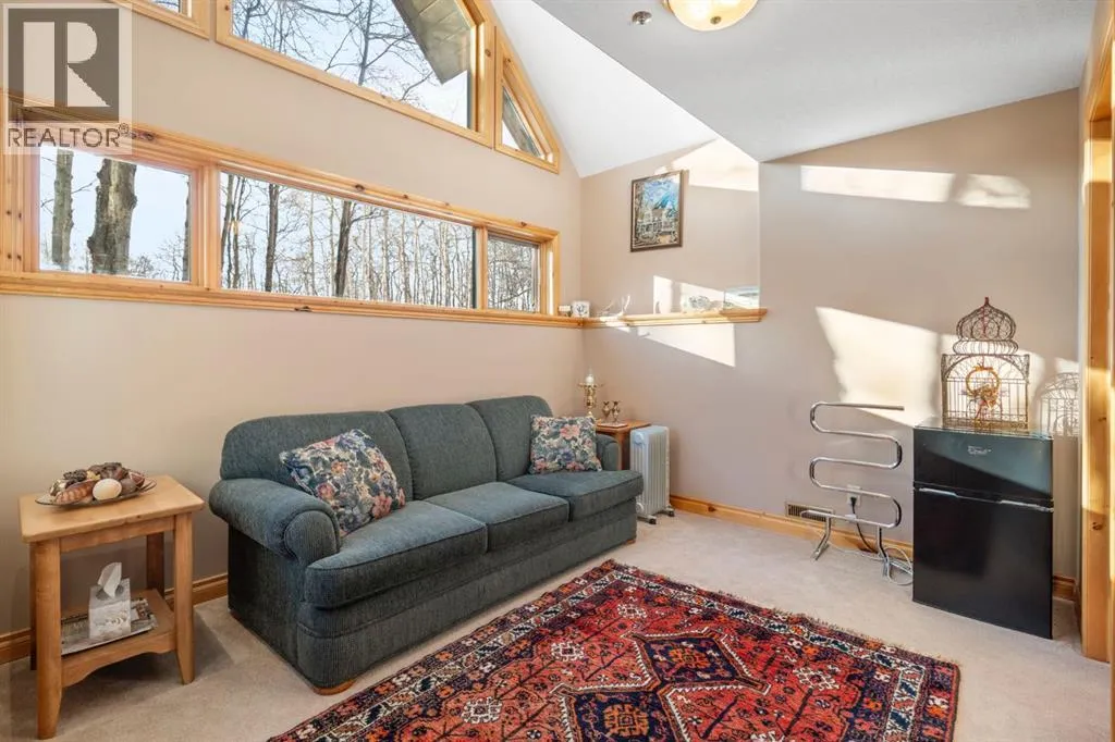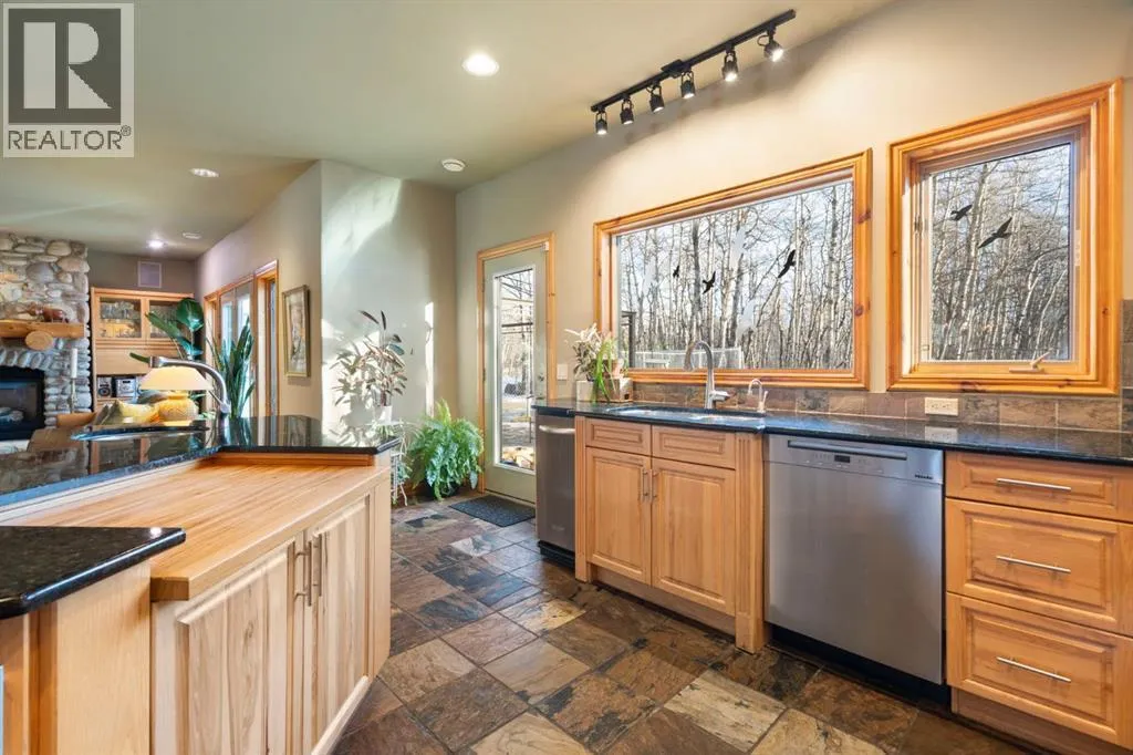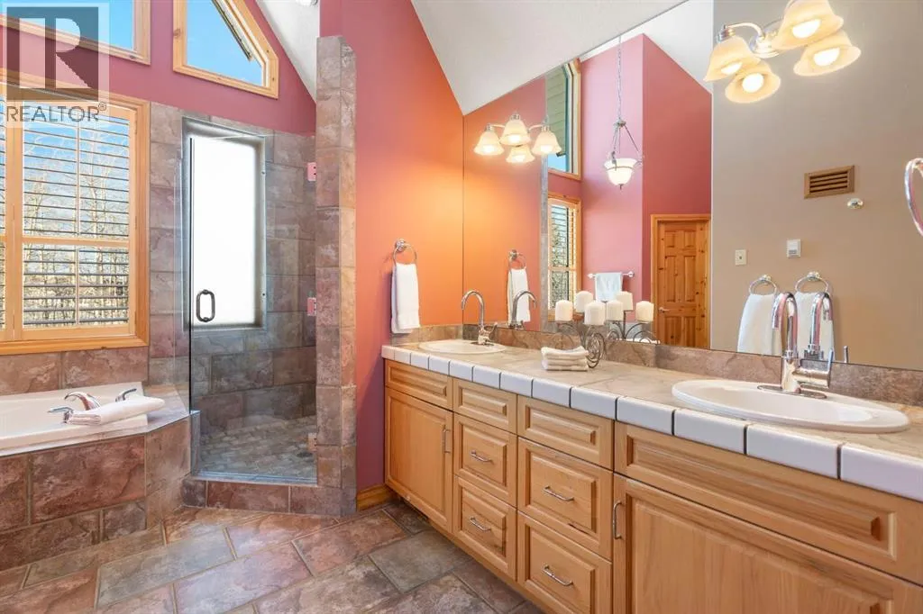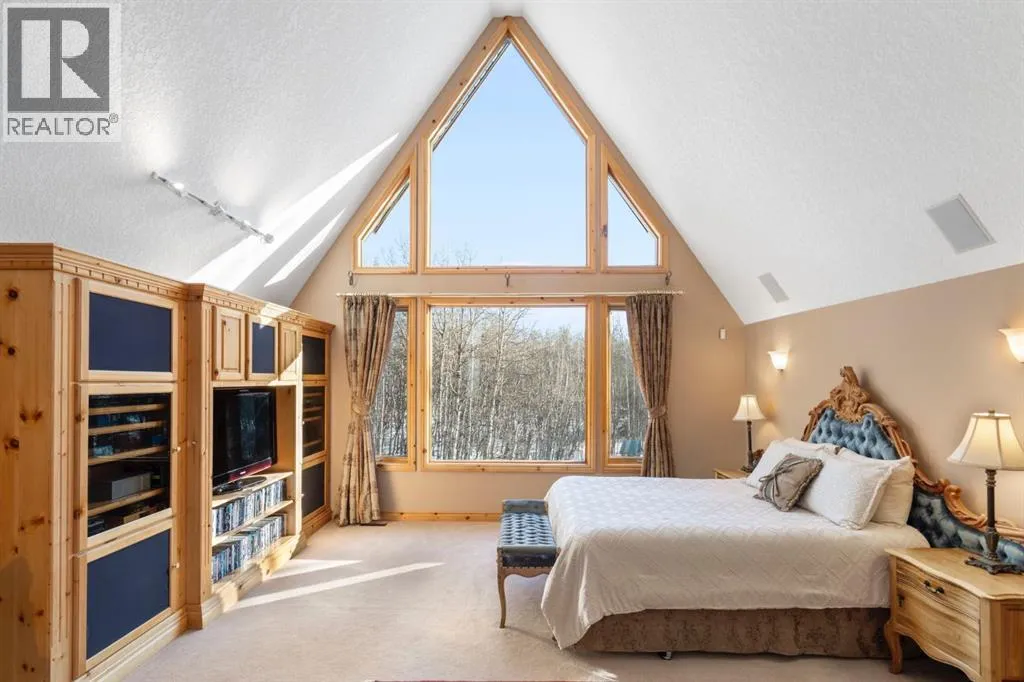 ** Watch the full CINEMATIC property tour*** Masterfully crafted by McKinley Masters, this stunning alpine residence is a celebration of rustic elegance and unparalleled craftsmanship. Nestled among towering pines on a sprawling lawn, the home exudes timeless lodge-inspired charm while offering every modern comfort. 10 min drive to all amenities in NW Calgary, and easy access to Hwy 1. The foyer adorned with hand-selected knotty pine sets the tone for the alpine detailing that flows seamlessly throughout the entire home. The living room, covered in natural light, features heated floors and a striking grand stone fireplaceâa perfect gathering place for family and friends. The custom kitchen is a masterpiece of design, with a central island, hickory cabinetry, stainless steel appliances, and sweeping views of the backyard. Adjacent, for seamless entertaining and high functionality for family meals is the formal dining room, framed by exposed pine beams. This floor also has 1 oversized bedroom with 4-piece ensuite bathroom with a private entrance for ultimate flexibility. Designed for multi-generational living, the second floor offers a fully independent illegal suite with its own kitchen with eating area, laundry room 5- piece bathroom ensuite and private backyard access. All 3 additional bedrooms on this level feature vaulted ceilings, rich alpine accents, 1 with a 4-piece ensuite bathroom and another 6-piece bathroom that services the other 2 bedrooms creating a serene retreat atmosphere for all. The great room impresses with soaring ceilings, a 2nd wood burning masonry fireplace, and sun-drenched south-facing windowsâan ideal space to entertain or unwind.The third-floor primary wing is a sanctuary of alpine luxury: vaulted ceilings, oversized windows, personal seating area, spacious kitchenette, private balcony overlooking lush greenery, dual walk -in closets and your own spa; five-piece bath with jetted tub, cedar lined sauna, with water access, dual vanities , separate glass door shower with frosted windows. Every detailâfrom hickory cabinetry and built-in shelving to expansive outdoor spaces and cedar garden plotsâreflects thoughtful design and artisanal quality. The exterior elevation boasts 40 foot pine timber columns, a paved patio space, fenced in dog run, knotted pine railings, firepit, shed and landscaped cedar gardens. This estate is more than a homeâitâs a celebration of alpine architecture, craftsmanship, and multi-generational living, offering a private, luxurious retreat in one of Woodlands Estatesâ most coveted settings. (id:27476)