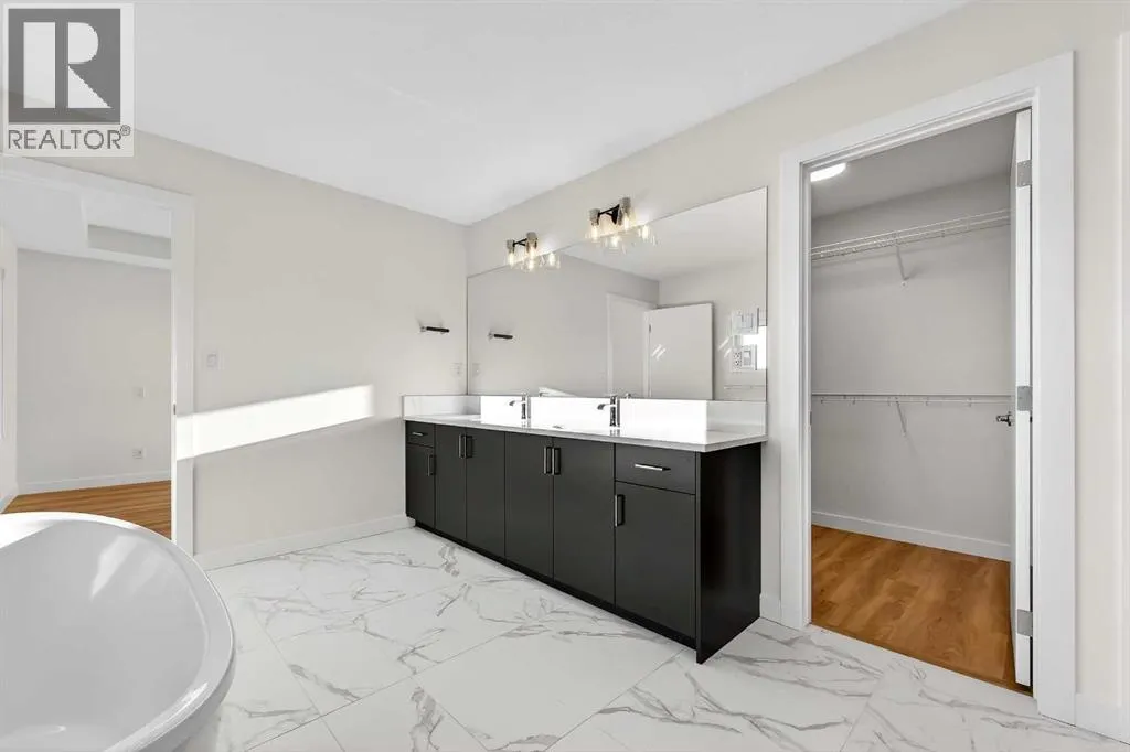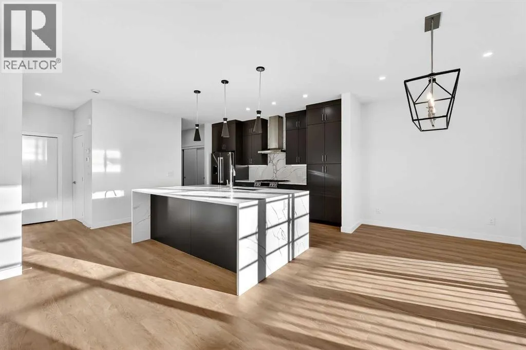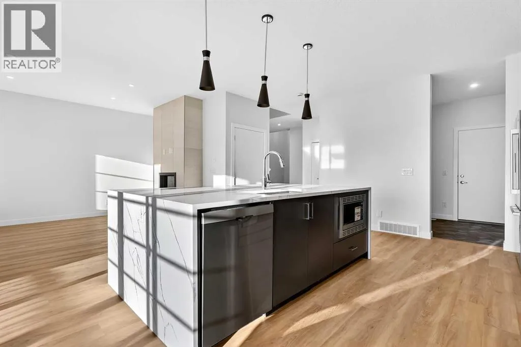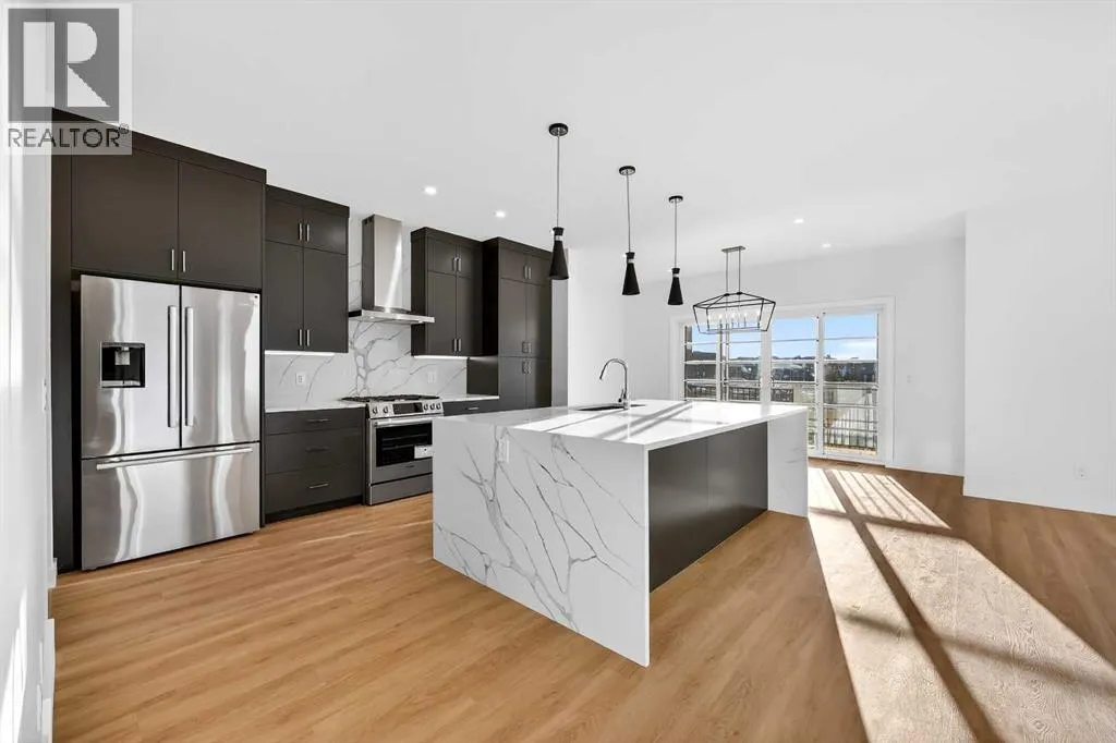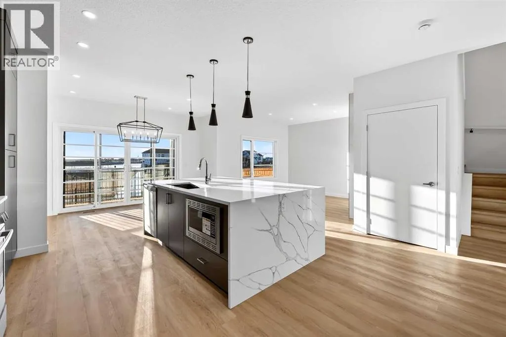 Experience the height of sophisticated living in this highly coveted luxury townhome, where a generous floor plan meets modern comfort and refined finishes. Proudly presented by StreetSide â this thoughtfully designed unit features 3 bedrooms, 2.5 bathrooms, and a front attached double car garage. The heart of the home is a spacious kitchen with a large central island, polished white quartz countertops, upgraded stainless steel appliances including a gas range, and elegant sliding French patio doors that opens to your covered deck area - ideal for both everyday living and entertaining. A cozy fireplace anchors the living room, while luxury vinyl plank flooring flows throughout the main living areas, complemented by gorgeous tile in the entry and bathrooms. The primary ensuite is a private sanctuary, complete with heated tile flooring, double sinks, a freestanding soaker tub, and an oversized tile-and-glass shower delivering spa-inspired comfort at home. The unfinished basement with roughed-in plumbing provides future potential for additional living space tailored to your needs. Professional landscaping and fencing complete your new home. Ideally located in the award-winning community of Harmony, residents enjoy Mickelson National Golf Course, private lake amenities, scenic walking and biking trails, and a wellness-focused lifestyleâjust a shorty drive from Calgary city minutes and 45 minutes from the Rocky Mountains, where nature and convenience come together effortlessly (id:27476)