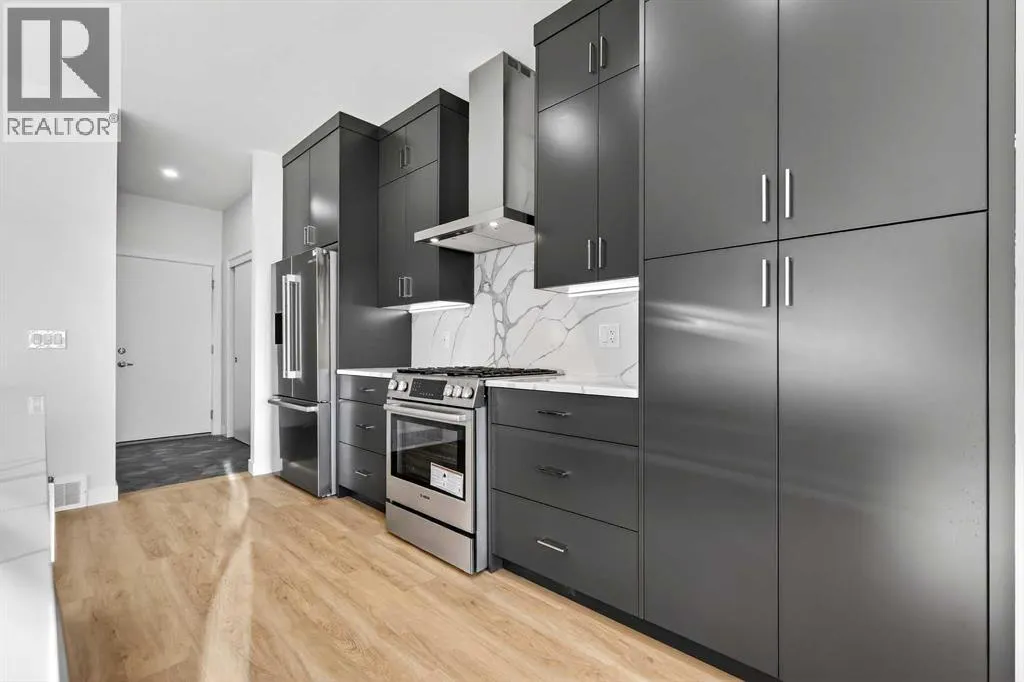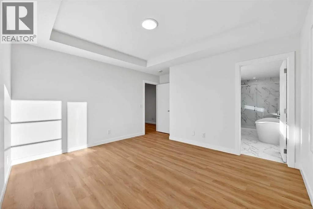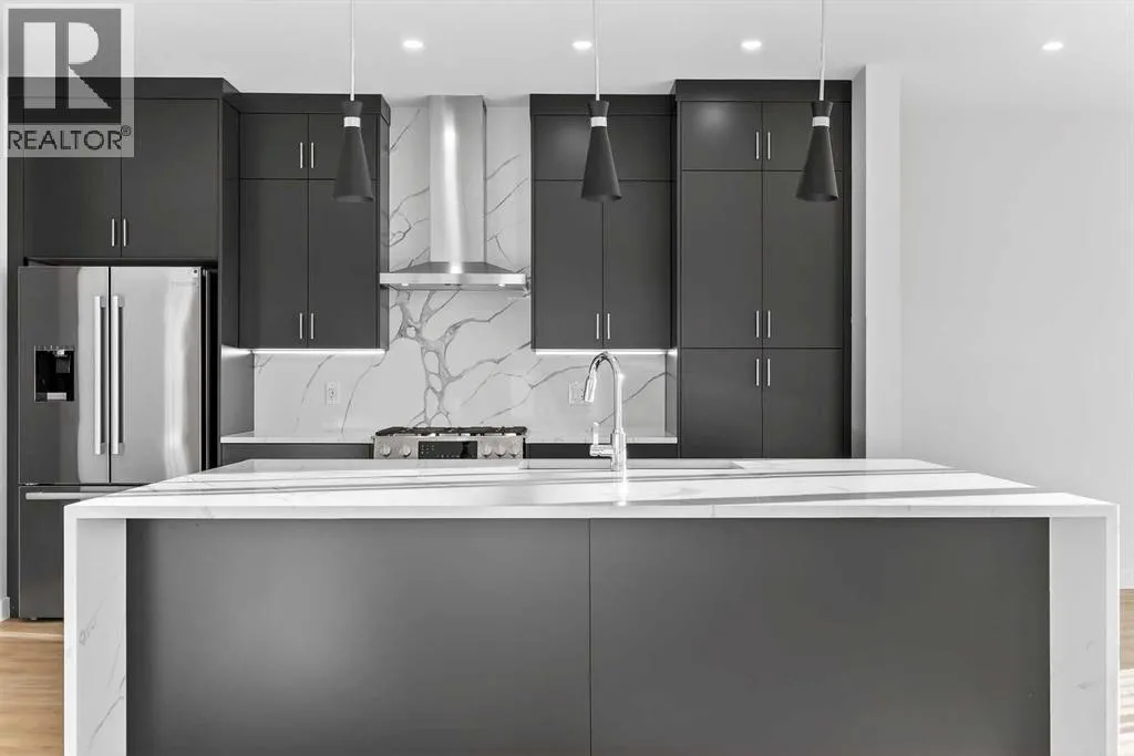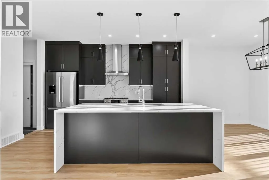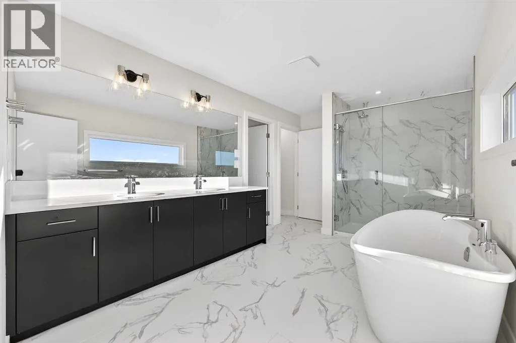 Experience the height of sophisticated living in this highly coveted luxury townhome, where a generous floor plan meets modern comfort and refined finishes. Proudly presented by StreetSide â this thoughtfully designed unit features 3 bedrooms, 2.5 bathrooms, and a front attached double car garage. The heart of the home is a spacious kitchen with a large central island, polished white quartz countertops, upgraded stainless steel appliances including a gas range, and elegant sliding French patio doors that opens to your covered deck area - ideal for both everyday living and entertaining. A cozy fireplace anchors the living room, while luxury vinyl plank flooring flows throughout the main living areas, complemented by gorgeous tile in the entry and bathrooms. The primary ensuite is a private sanctuary, complete with heated tile flooring, double sinks, a freestanding soaker tub, and an oversized tile-and-glass shower delivering spa-inspired comfort at home. The unfinished basement with roughed-in plumbing provides future potential for additional living space tailored to your needs. Professional landscaping and fencing complete your new home. Ideally located in the award-winning community of Harmony, residents enjoy Mickelson National Golf Course, private lake amenities, scenic walking and biking trails, and a wellness-focused lifestyleâjust a shorty drive from Calgary city minutes and 45 minutes from the Rocky Mountains, where nature and convenience come together effortlessly (id:27476)
