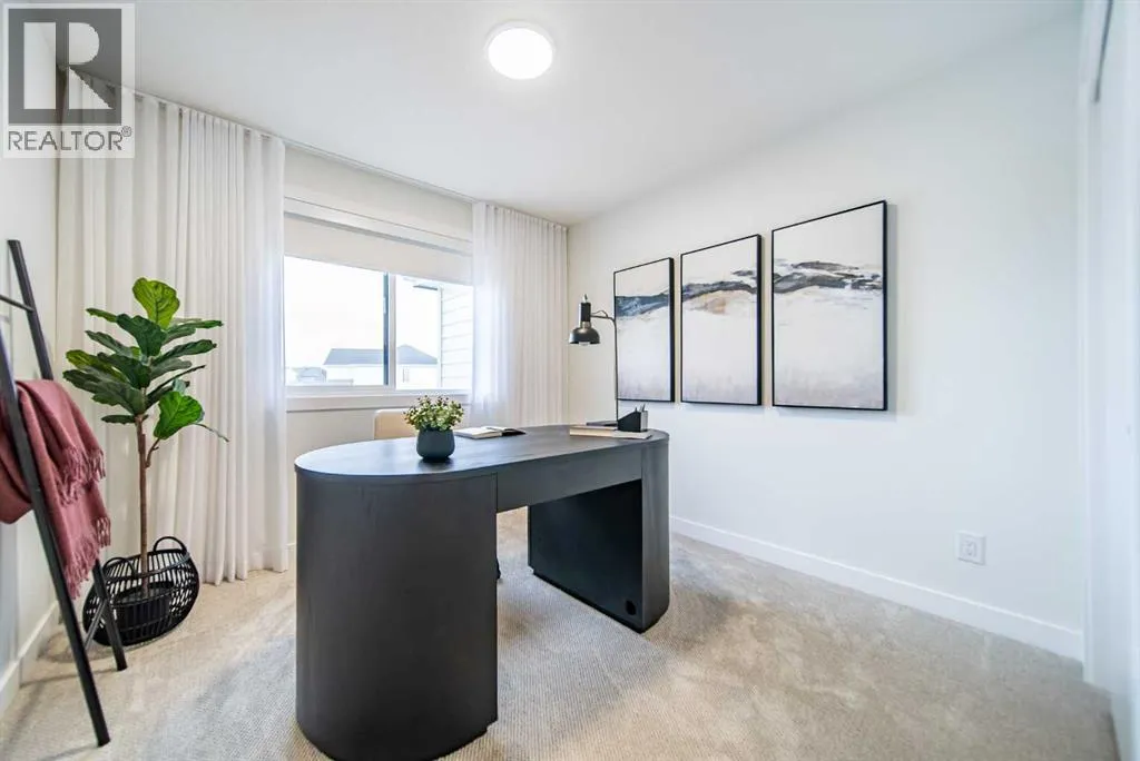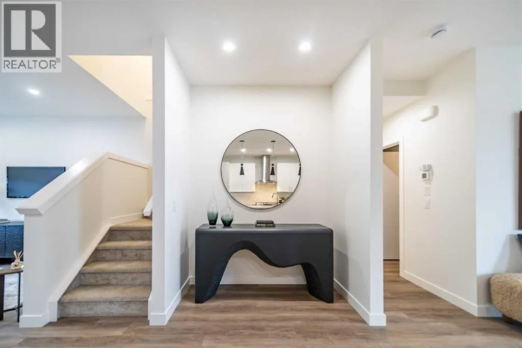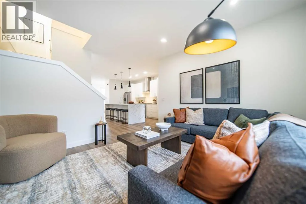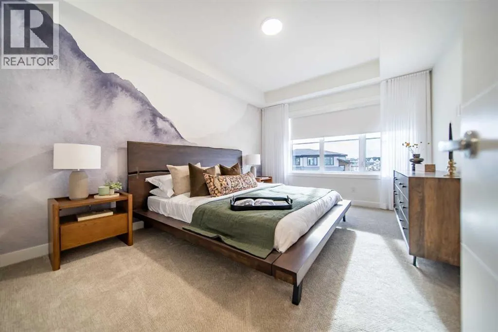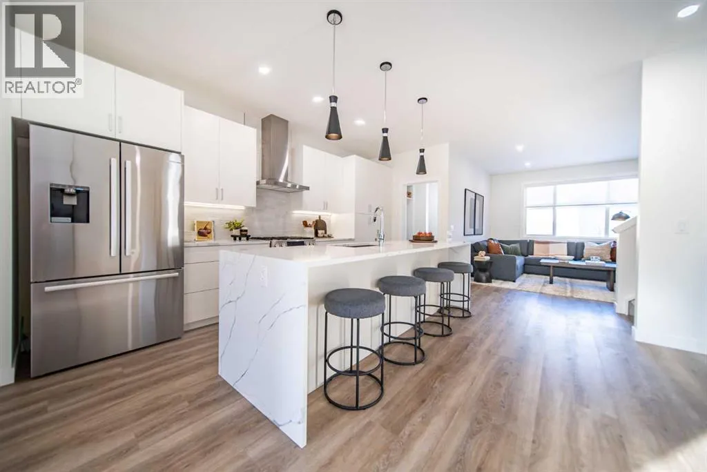 Experience the height of sophisticated living in this highly coveted luxury townhome, where a generous floor plan meets modern comfort and refined finishes. Proudly presented by StreetSide, this thoughtfully designed home features 3 bedrooms, 2.5 bathrooms, and a detached double car garage. Enhanced by over $17,000 in builder upgrades, the heart of the home is a spacious kitchen showcasing upgraded cabinetry, polished white quartz countertops with an elegant waterfall-edge island, an upgraded kitchen sink, and stainless steel appliances including an electric range with a gas line in place for future gas cooking. The living area is anchored by a gas fireplace and finished with luxury vinyl plank flooring, creating a warm and inviting atmosphere. The primary ensuite is a private sanctuary complete with tile flooring, double sinks, a freestanding soaker tub, and an oversized tile-and-glass shower, delivering spa-inspired comfort at home. Additional highlights include an upgraded spindle railing on the lower stair landing, rough-in for central air conditioning, and an unfinished basement with roughed-in plumbing, offering excellent future development potential. Professional landscaping and fencing complete the exterior. Ideally located in the award-winning community of Harmony, residents enjoy Mickelson National Golf Course, private lake amenities, scenic walking and biking trails, and a wellness-focused lifestyleâjust minutes from Calgary and only 45 minutes from the Rocky Mountains, where nature and convenience come together effortlessly. (id:27476)