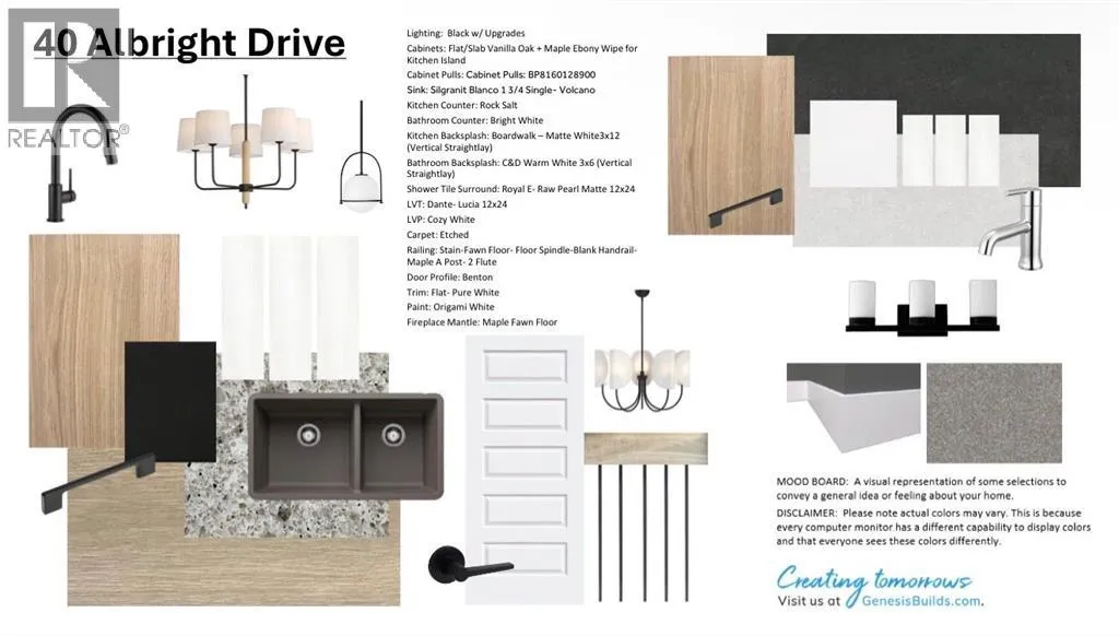 Welcome to 40 Albright Drive, presented by Genesis Builder Group, scheduled for completion in Spring 2026. Offering over 1700 sq ft of beautifully designed space with 3 bedrooms, 2.5 bathrooms, a rare-to-find main floor office on a desirable lot backing onto a pathway. Step inside to 9â ceilings, luxury vinyl plank flooring that spans the open concept main floor and an inviting colour pallet. The spacious kitchen is equipped with stainless steel appliances and a central island, making it ideal for entertaining guests or enjoying family meals. The living room, with its inviting focal-point fireplace, seamlessly flows into a deck off the living area, providing a perfect spot for outdoor relaxation and gatherings. A convenient powder room completes the main level. Upstairs, a central bonus room offers additional separation and space for relaxation or family activities. The primary bedroom boasts an ensuite bathroom and a spacious walk-in closet, offering a private retreat. Two further bedrooms are generously sized and are complemented by a four-piece bathroom and an upstairs laundry for added convenience. The basement offers 9â ceilings and is unspoiled, waiting for your design ideas. Located in the vibrant community of Harmony, residents enjoy a wealth of amenities and outdoor recreational opportunities. The community features scenic walking trails, parks, and access to various recreational facilities, fostering an active and connected lifestyle. With its excellent location, Harmony offers easy access to shopping, dining, and entertainment, making it an ideal place to settle down or invest in your future. Donât miss the opportunity to own a brand new home in this thriving community. *RMS has been converted from blueprints provided by the builder. (id:27476)
