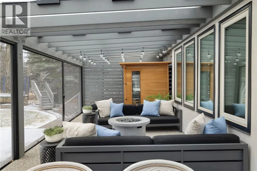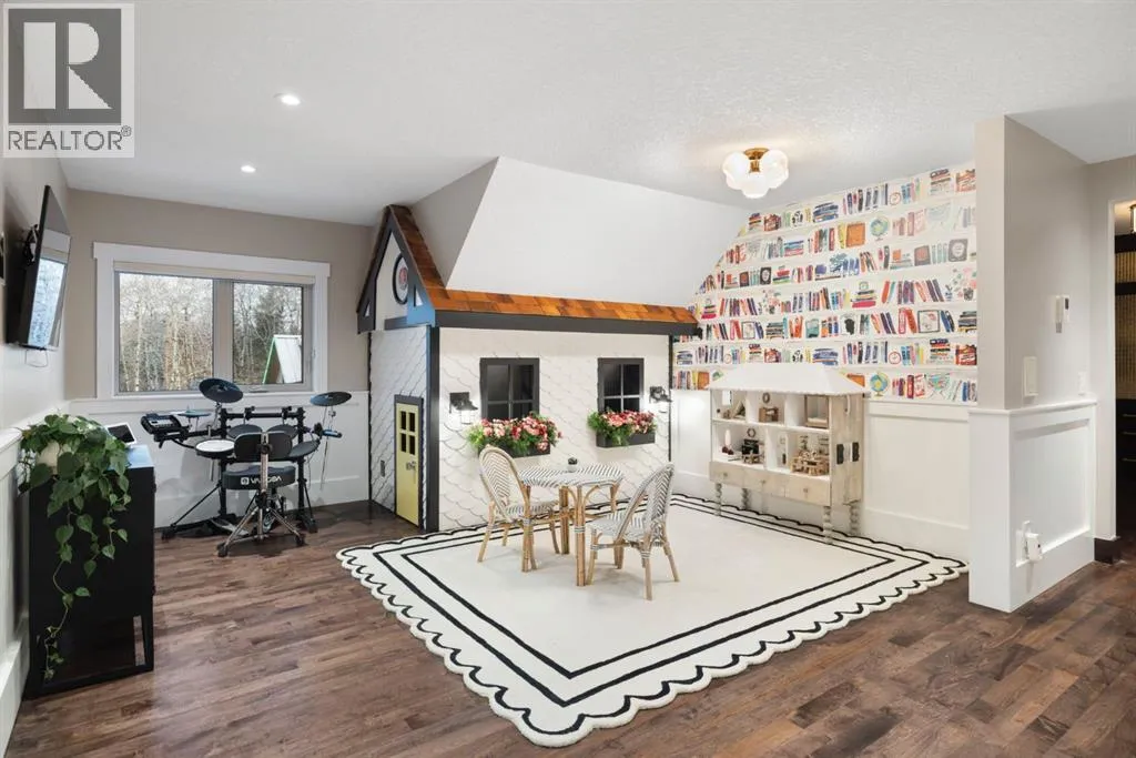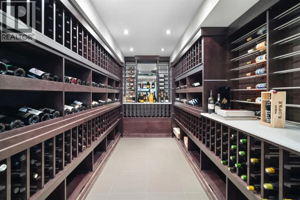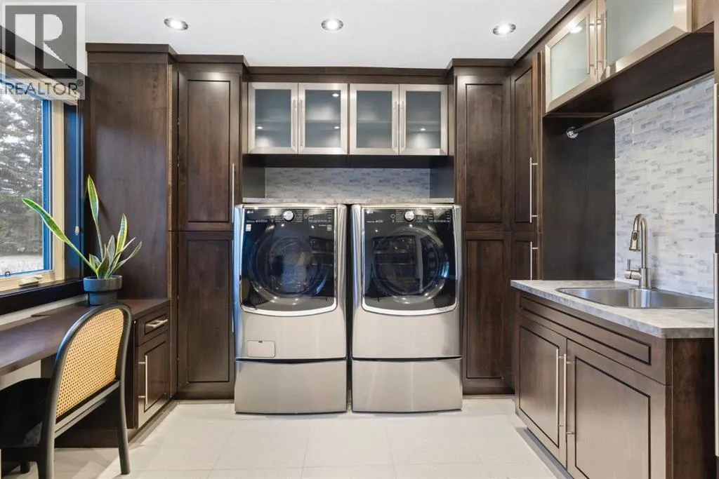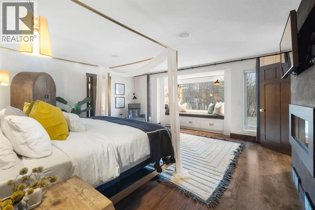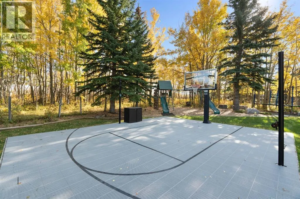**Watch our CINEMATIC video **Nestled deep within its own private forest yet only 2 minutes from Calgary amenities, this 2-acre estate offers nearly 7000 sq.ft. of living space, a 2-car attached garage, and a 2017-built 1,200 sq.ft. guest house with a 5-car garage below including a 2-piece bathroom, TV, and sound system. Featured in Western Living Magazine, the home has undergone more than $500K in RECENT RENOVATIONS and is truly turn-key. The main floor blends modern luxury with everyday comfort, featuring a high-performance kitchen with dual Caesarstone islands, Gaggenau and Wolf appliances, and a recently added eating bar at the island. The kitchen area flows effortlessly to expansive covered and screened living space with a gas fireplace, heated floors, BBQ, seating area, and large sauna. The space is connected to an outdoor kitchen area with a motorized awning, granite eating bar, stainless-steel cabinetry, a BBQ, smoker, bar fridge, and heated aggregate flooring. The dining room evokes future plans of large gatherings with a 12- person table and an attached sundeck with room for a full size dining table. A family lounge with 3-sided fireplace, a renovated 3-pc powder room, office with built-ins and saltwater fish tank, and refreshed laundry room with a view complete this level.Upstairs, the primary retreat offers a 2-sided fireplace, steam shower with mood lighting and TV, heated floors, jetted tub, his and hers vanities, make-up station, and two redesigned walk-in closets including one with SUNDECK access and a very large second one with an office area. A newly updated kidsâ wing has a play area complete with playhouse and 2 oversized bedrooms serviced by a 5-piece bath to complete the floor. The recently upgraded GYM area is spacious and ha an upscale feel with its leather flooring.The walkout level with two access doors, includes a state-of-the-art theatre with recessed seating and illuminated bar, a climate-controlled 104 sqft WINE CELLAR a new full bar w ith ice maker, dual fridges, dishwasher and microwave, a large recreation area, plus two additional bedrooms and 4-piece bathroom. Walk right out onto a full sports court, kid's playhouse, and aggregate and glass GREENHOUSE.The guest house mirrors the main homeâs style and includes heated floors and full utilities. Your family member or guests will be more than comfortable in this 1 bedroom, full kitchen, laundry, 4-piece bathroom and spacious eating and living areas. Additional recent improvements include new flooring throughout, full house Control4 automation system with integrated security, water shut off, and sensor monitoring, Euroline windows, updated entry gate, lighting and landscaping, new air purification system, re-paved driveway with partial heating, full landscape irrigation, heated playhouse, motion-activated stair lighting, and a newly designed boutique walk-in closet. A rare blend of privacy, design, and modern acreage living, magazine-worthy, and just moments from the city. (id:27476)