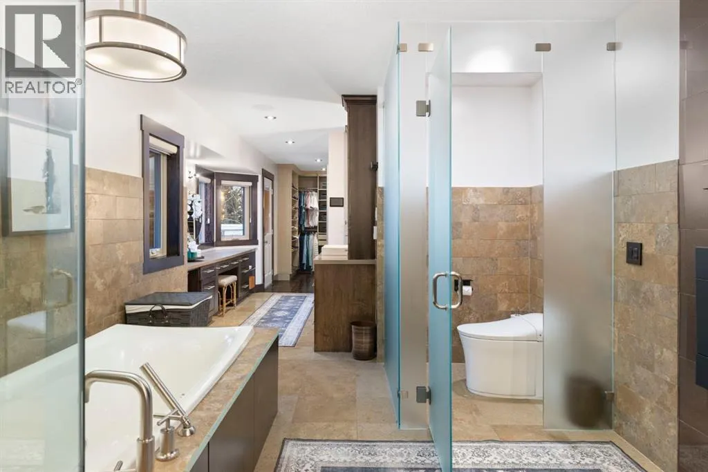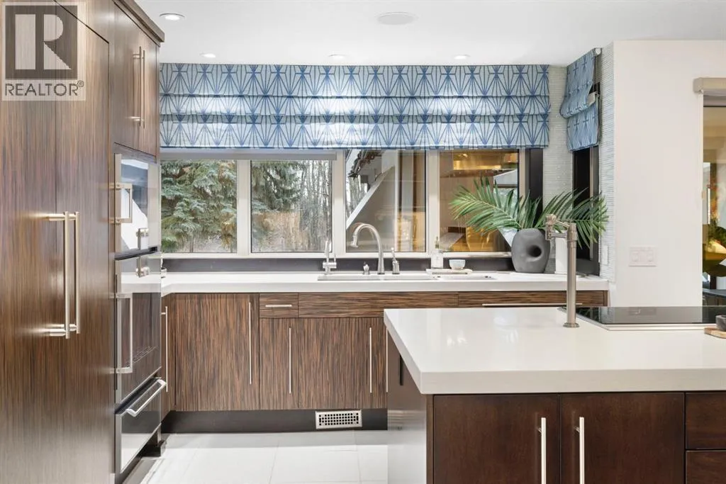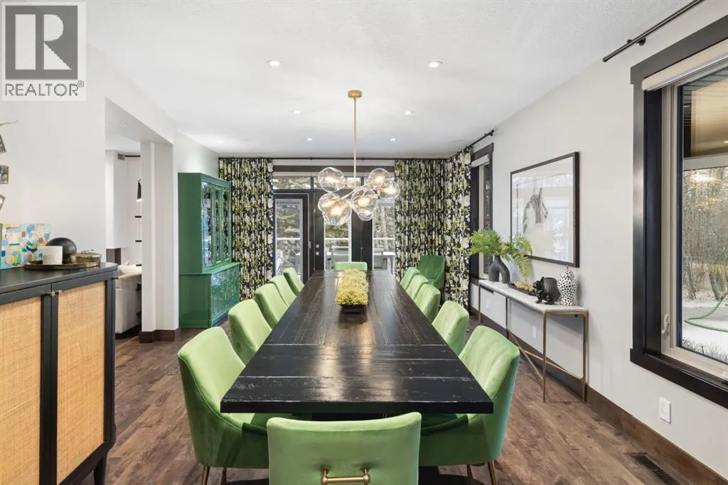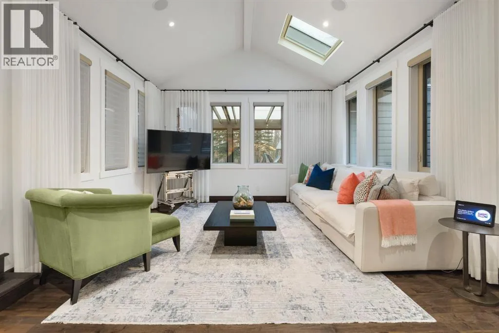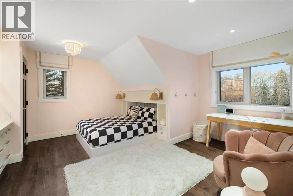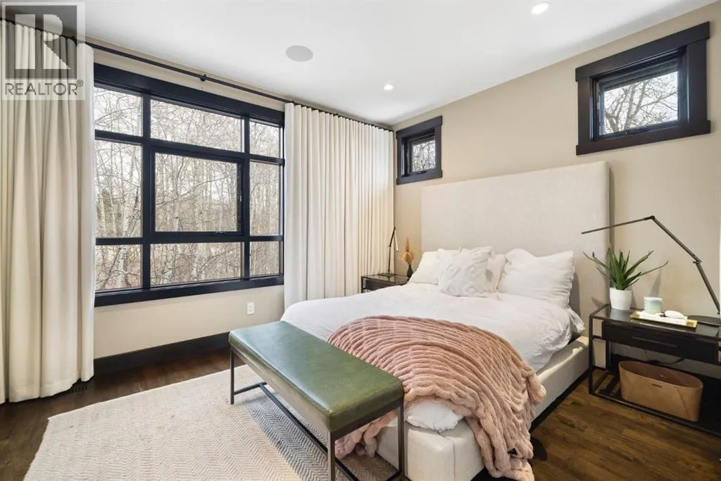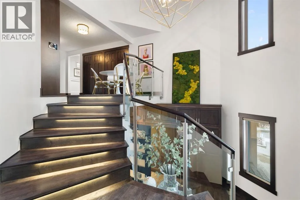 **Watch our CINEMATIC video **Nestled deep within its own private forest yet only 2 minutes from Calgary amenities, this 2-acre estate offers nearly 7000 sq.ft. of living space, a 2-car attached garage, and a 2017-built 1,200 sq.ft. guest house with a 5-car garage below including a 2-piece bathroom, TV, and sound system. Featured in Western Living Magazine, the home has undergone more than $500K in RECENT RENOVATIONS and is truly turn-key. The main floor blends modern luxury with everyday comfort, featuring a high-performance kitchen with dual Caesarstone islands, Gaggenau and Wolf appliances, and a recently added eating bar at the island. The kitchen area flows effortlessly to expansive covered and screened living space with a gas fireplace, heated floors, BBQ, seating area, and large sauna. The space is connected to an outdoor kitchen area with a motorized awning, granite eating bar, stainless-steel cabinetry, a BBQ, smoker, bar fridge, and heated aggregate flooring. The dining room evokes future plans of large gatherings with a 12- person table and an attached sundeck with room for a full size dining table. A family lounge with 3-sided fireplace, a renovated 3-pc powder room, office with built-ins and saltwater fish tank, and refreshed laundry room with a view complete this level.Upstairs, the primary retreat offers a 2-sided fireplace, steam shower with mood lighting and TV, heated floors, jetted tub, his and hers vanities, make-up station, and two redesigned walk-in closets including one with SUNDECK access and a very large second one with an office area. A newly updated kidsâ wing has a play area complete with playhouse and 2 oversized bedrooms serviced by a 5-piece bath to complete the floor. The recently upgraded GYM area is spacious and ha an upscale feel with its leather flooring.The walkout level with two access doors, includes a state-of-the-art theatre with recessed seating and illuminated bar, a climate-controlled 104 sqft WINE CELLAR a new full bar w ith ice maker, dual fridges, dishwasher and microwave, a large recreation area, plus two additional bedrooms and 4-piece bathroom. Walk right out onto a full sports court, kid's playhouse, and aggregate and glass GREENHOUSE.The guest house mirrors the main homeâs style and includes heated floors and full utilities. Your family member or guests will be more than comfortable in this 1 bedroom, full kitchen, laundry, 4-piece bathroom and spacious eating and living areas. Additional recent improvements include new flooring throughout, full house Control4 automation system with integrated security, water shut off, and sensor monitoring, Euroline windows, updated entry gate, lighting and landscaping, new air purification system, re-paved driveway with partial heating, full landscape irrigation, heated playhouse, motion-activated stair lighting, and a newly designed boutique walk-in closet. A rare blend of privacy, design, and modern acreage living, magazine-worthy, and just moments from the city. (id:27476)