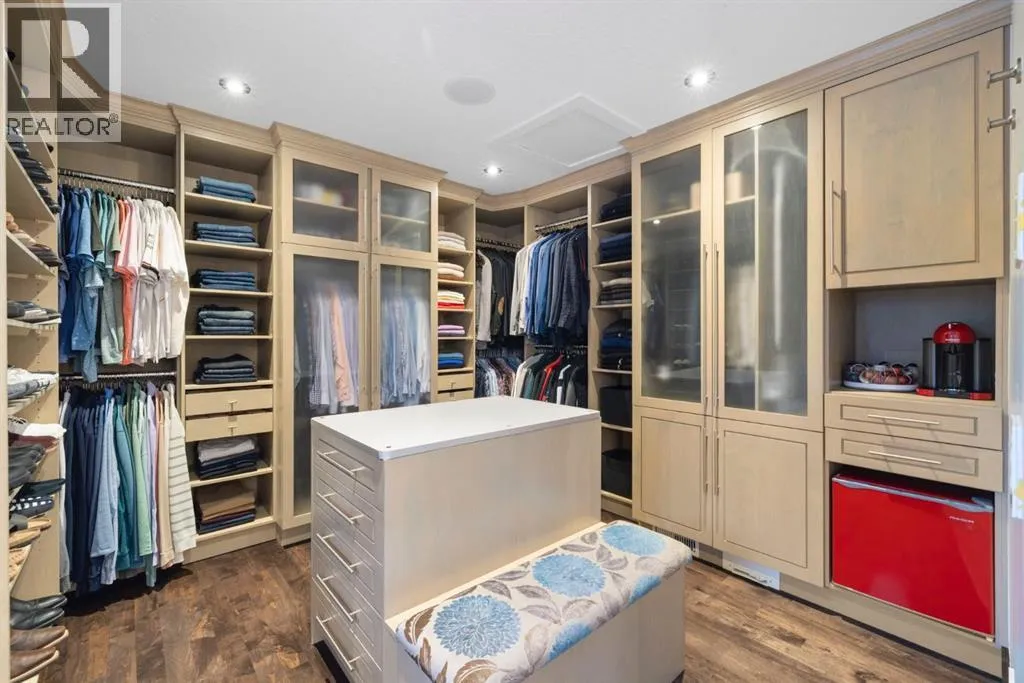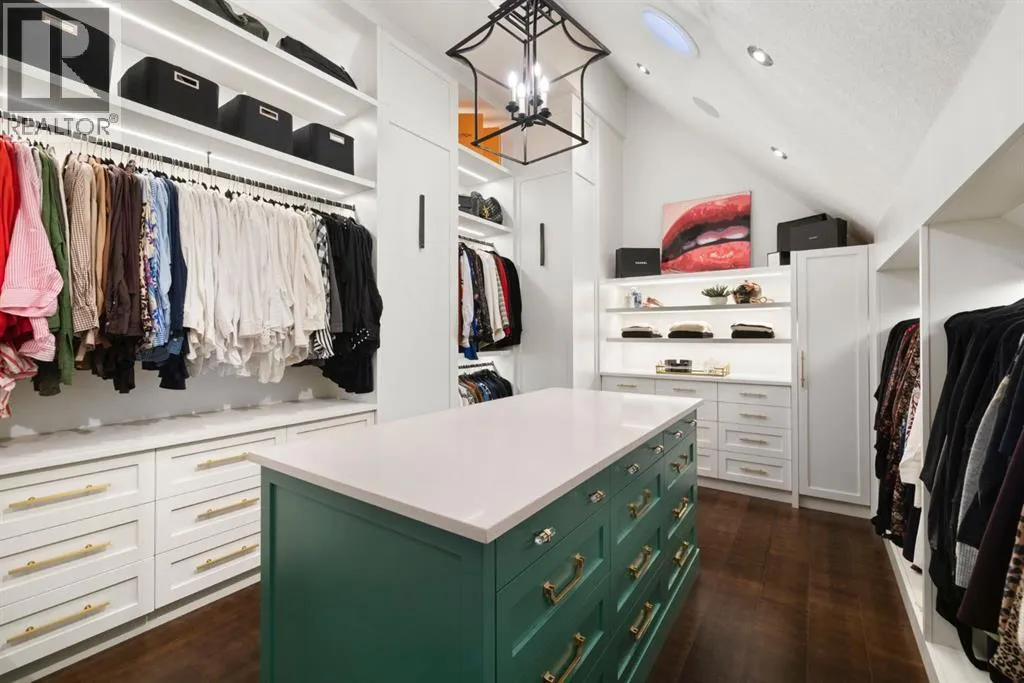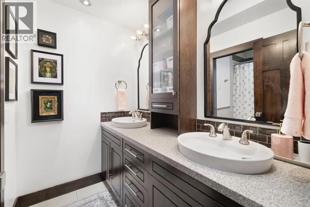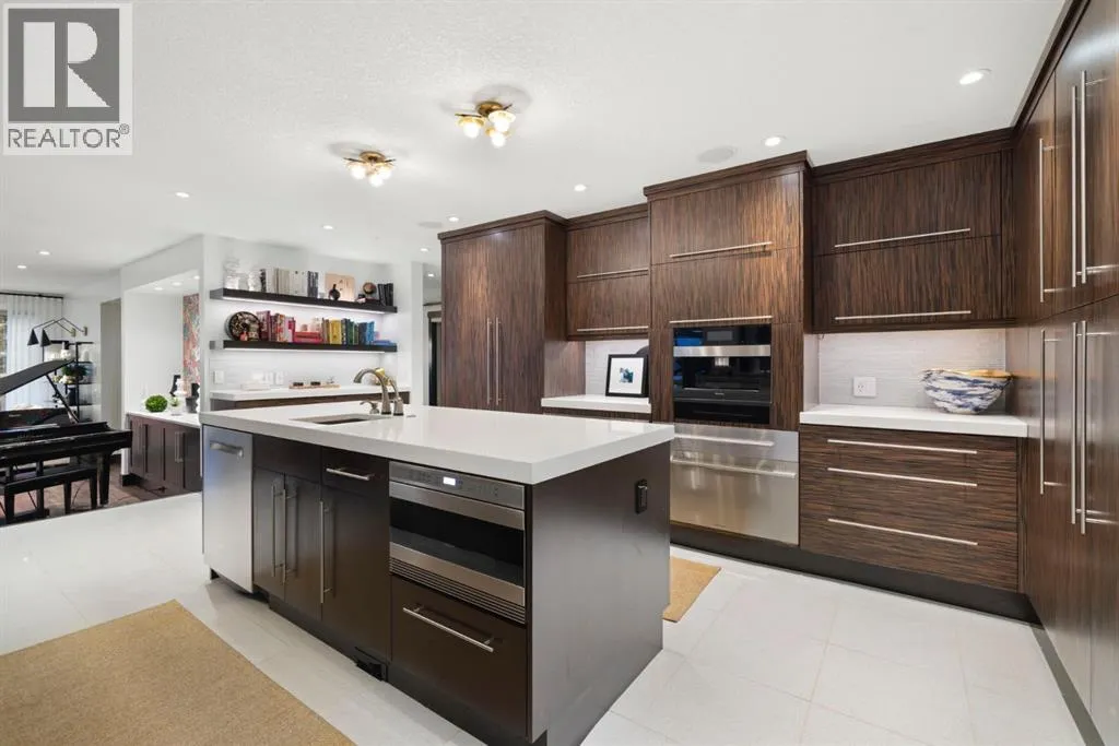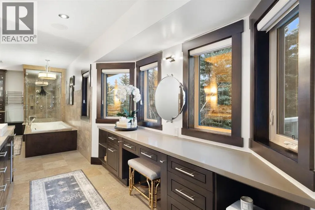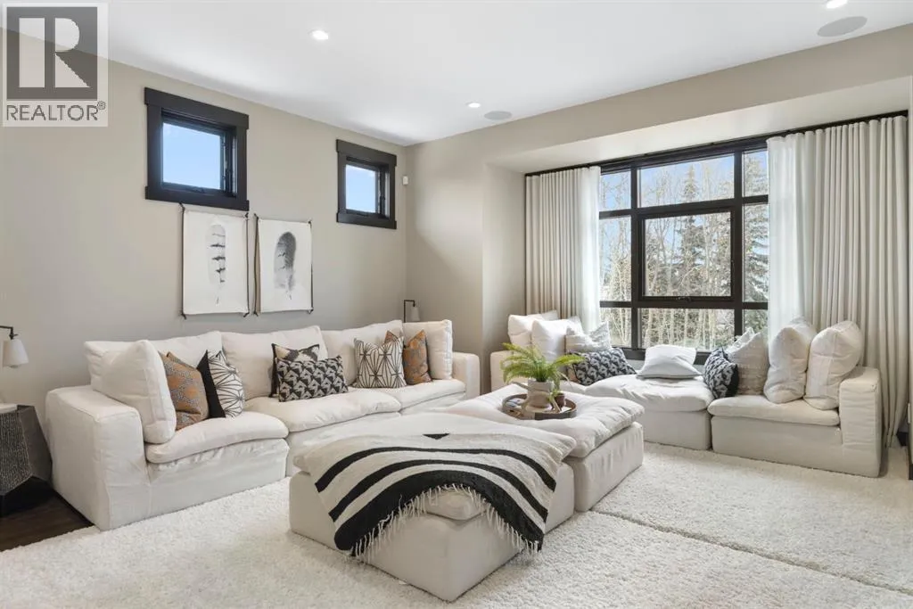 **Watch our CINEMATIC video **Nestled deep within its own private forest yet only 2 minutes from Calgary amenities, this 2-acre estate offers nearly 7000 sq.ft. of living space, a 2-car attached garage, and a 2017-built 1,200 sq.ft. guest house with a 5-car garage below including a 2-piece bathroom, TV, and sound system. Featured in Western Living Magazine, the home has undergone more than $500K in RECENT RENOVATIONS and is truly turn-key. The main floor blends modern luxury with everyday comfort, featuring a high-performance kitchen with dual Caesarstone islands, Gaggenau and Wolf appliances, and a recently added eating bar at the island. The kitchen area flows effortlessly to expansive covered and screened living space with a gas fireplace, heated floors, BBQ, seating area, and large sauna. The space is connected to an outdoor kitchen area with a motorized awning, granite eating bar, stainless-steel cabinetry, a BBQ, smoker, bar fridge, and heated aggregate flooring. The dining room evokes future plans of large gatherings with a 12- person table and an attached sundeck with room for a full size dining table. A family lounge with 3-sided fireplace, a renovated 3-pc powder room, office with built-ins and saltwater fish tank, and refreshed laundry room with a view complete this level.Upstairs, the primary retreat offers a 2-sided fireplace, steam shower with mood lighting and TV, heated floors, jetted tub, his and hers vanities, make-up station, and two redesigned walk-in closets including one with SUNDECK access and a very large second one with an office area. A newly updated kidsâ wing has a play area complete with playhouse and 2 oversized bedrooms serviced by a 5-piece bath to complete the floor. The recently upgraded GYM area is spacious and ha an upscale feel with its leather flooring.The walkout level with two access doors, includes a state-of-the-art theatre with recessed seating and illuminated bar, a climate-controlled 104 sqft WINE CELLAR a new full bar w ith ice maker, dual fridges, dishwasher and microwave, a large recreation area, plus two additional bedrooms and 4-piece bathroom. Walk right out onto a full sports court, kid's playhouse, and aggregate and glass GREENHOUSE.The guest house mirrors the main homeâs style and includes heated floors and full utilities. Your family member or guests will be more than comfortable in this 1 bedroom, full kitchen, laundry, 4-piece bathroom and spacious eating and living areas. Additional recent improvements include new flooring throughout, full house Control4 automation system with integrated security, water shut off, and sensor monitoring, Euroline windows, updated entry gate, lighting and landscaping, new air purification system, re-paved driveway with partial heating, full landscape irrigation, heated playhouse, motion-activated stair lighting, and a newly designed boutique walk-in closet. A rare blend of privacy, design, and modern acreage living, magazine-worthy, and just moments from the city. (id:27476)