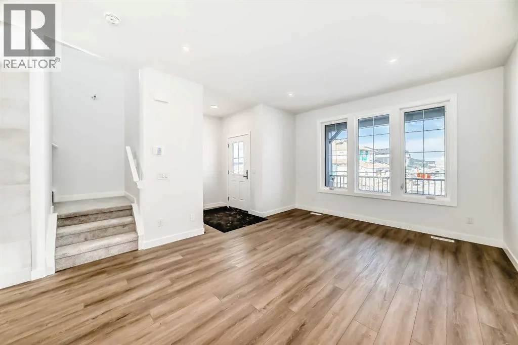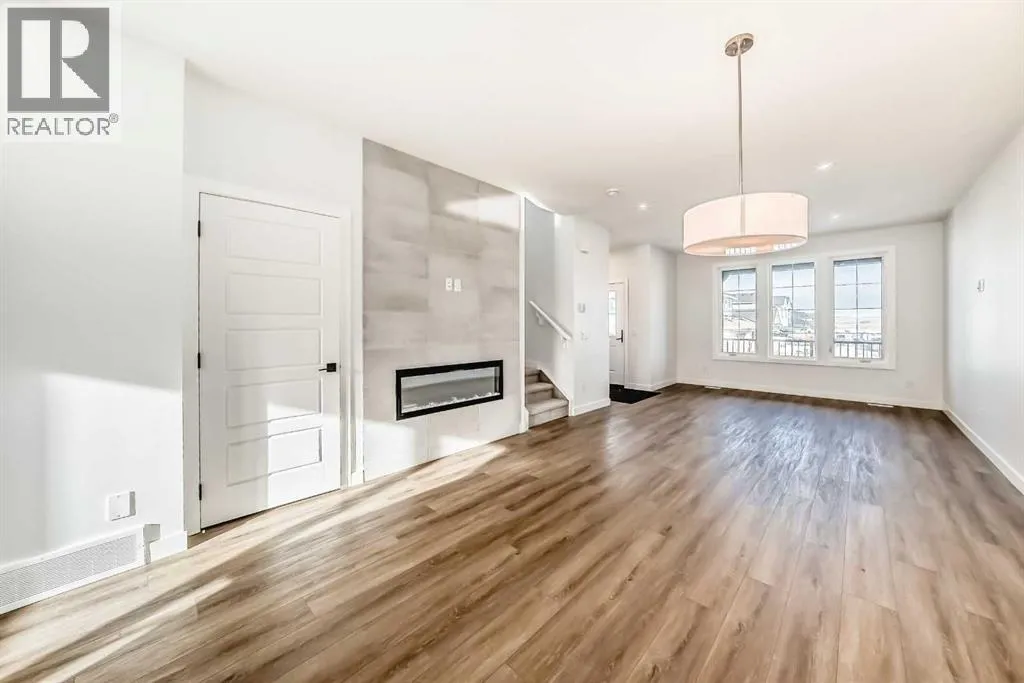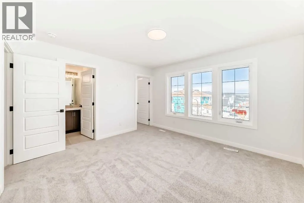 Bright, modern, and thoughtfully designed, this 1,698 sq ft Broadview Homes duplex in Harmony offers a well-balanced layout suited for both everyday living and entertaining. The open-concept main floor brings together the kitchen, dining, and living areas, creating a functional and inviting space filled with natural light. The kitchen features sleek grey cabinetry, light quartz countertops, and a complete stainless-steel appliance package including a gas range, dishwasher, hood fan, and built-in microwave. Clean lines and quality finishes carry throughout the home for a timeless, contemporary feel. Outside, enjoy a spacious rear deck and the convenience of a 20x20 double detached garage.Upstairs, the primary bedroom provides a private retreat with a walk-in closet and a well-appointed ensuite. Two additional bedrooms and a full bathroom complete the upper level, offering flexibility for family, guests, or a home office. The unfinished basement includes a rough-in for a future bathroom and is ready for your own customization.A large rear deck extends the living space outdoors, ideal for summer evenings or casual gatherings. Located in the vibrant lake community of Harmony, residents enjoy access to lakes, parks, golf, pathways, and exceptional amenities, all within one of Albertaâs most desirable communities. (id:27476)