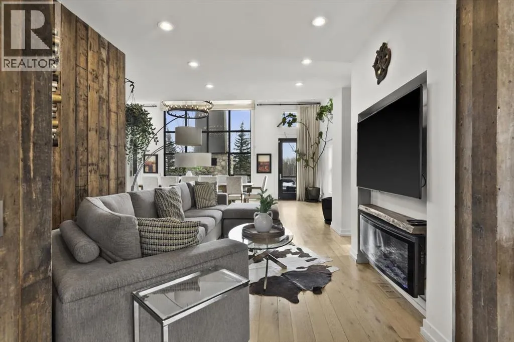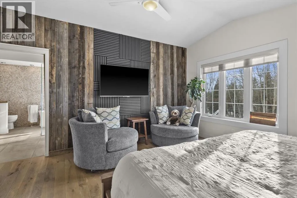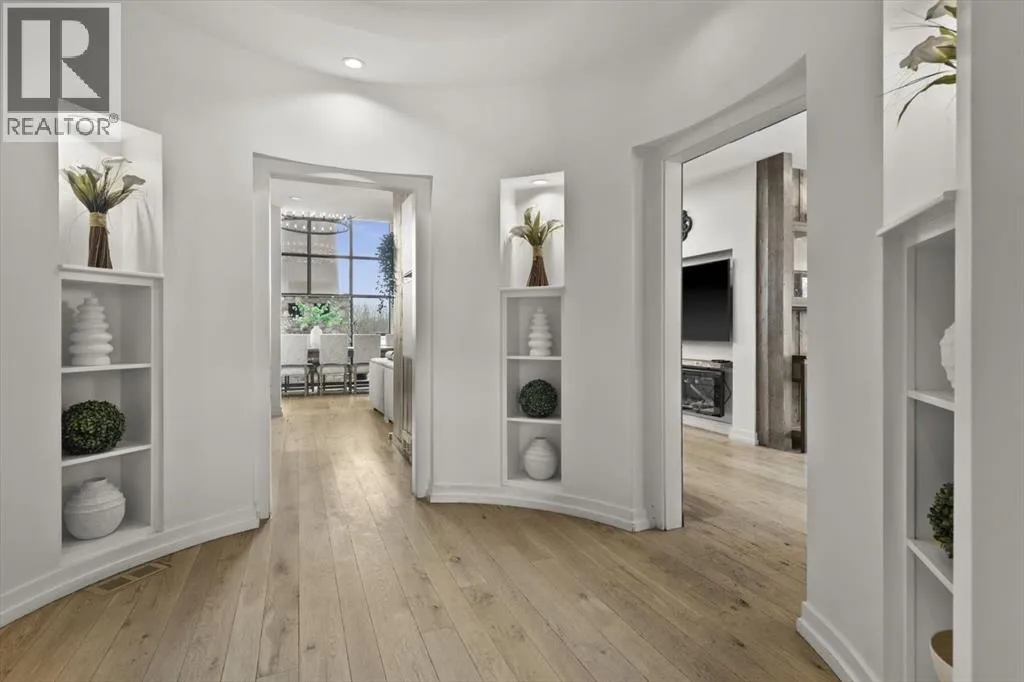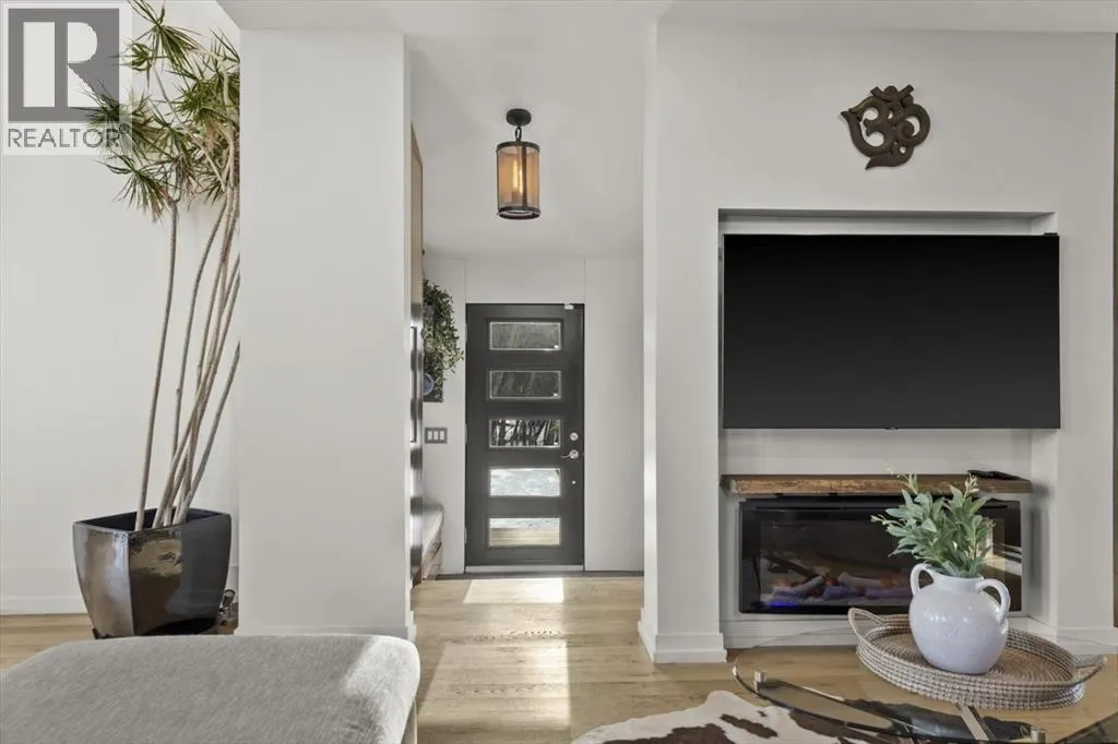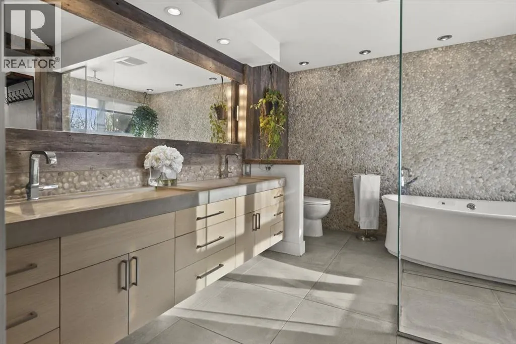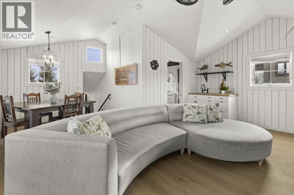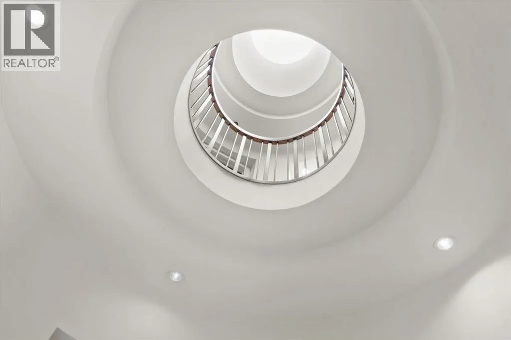 Some homes are designed for function, others for style - this one was designed for something more. Set on just over two acres in Bearspaw, this residence reveals its character the moment you arrive: sweeping curves in the architecture, river rock columns, and a presence that promises there's a story around every corner.Step inside and a circular skylight draws your eye upward, casting light through a graceful rotunda that anchors the home. Those architectural curves continue throughout - in hallways, railings, and built-in niches designed for art and treasured pieces.The main level presents two interconnected living spaces with remarkable flexibility. The larger room, currently configured as an expansive dining area easily seating 14, features soaring ceilings, a river rock fireplace, and walls of windows. The adjacent sitting area offers a more intimate scale. These spaces can easily trade purposes - a generous living room with traditional dining to the side, or kept as designed for those who entertain on a grand scale.Throughout the home, reclaimed barn-board sourced from England creates warmth against contemporary elements - concrete countertops, sleek fixtures, clean architectural lines. It's a considered contrast that feels both grounded and refined. The kitchen embodies this aesthetic, aged wood cabinetry meeting industrial concrete surfaces, a breakfast nook tucked into the window.The primary suite offers a spa-inspired ensuite with pebble stone walls, open shower, and deep soaker tub. Two additional bedrooms, family bathroom and laundry facilities share the upper level, accessed from curved hallways with a striking circular opening overlooking the rotunda.The walkout level opens to casual gathering space, a fourth bedroom, bathroom, exercise area and a very unique dual wine cellar and cigar humidor. A glass breezeway connects the main house to a secondary garage with self-contained guest suite above - Murphy beds and lounge space equally suited a s creative studio or home office. For the collector: a separate garage bay accessed by fingerprint recognition, purpose-built for a prized vehicle.Outside, the property unfolds with equal intention. In-ground pool, hot tub, and firepit create spaces for every season. Circling a stone platform at the heart of the grounds, a moat crossed by two wooden bridges - a meditative feature that speaks to the thoughtfulness woven throughout.For the right person, this won't simply be a beautiful property. It will feel like home. (id:27476)