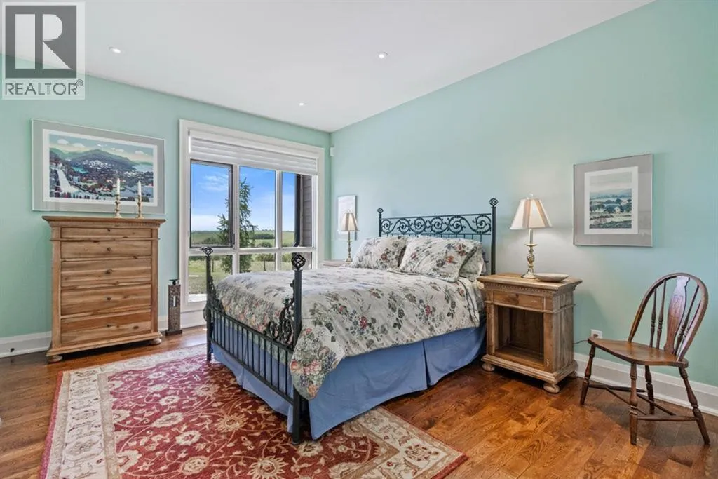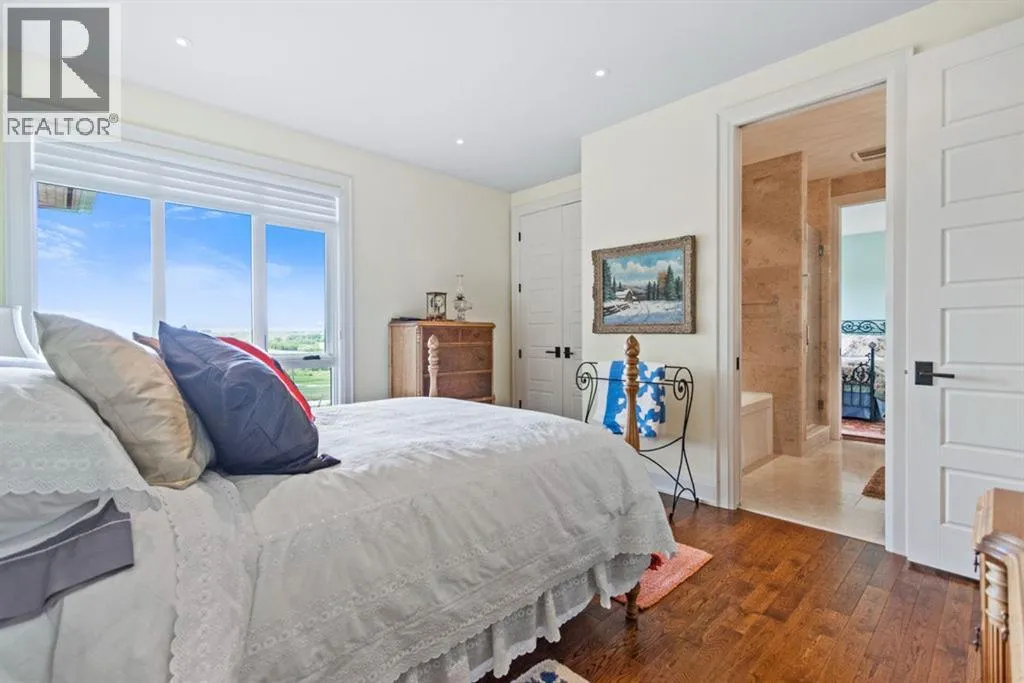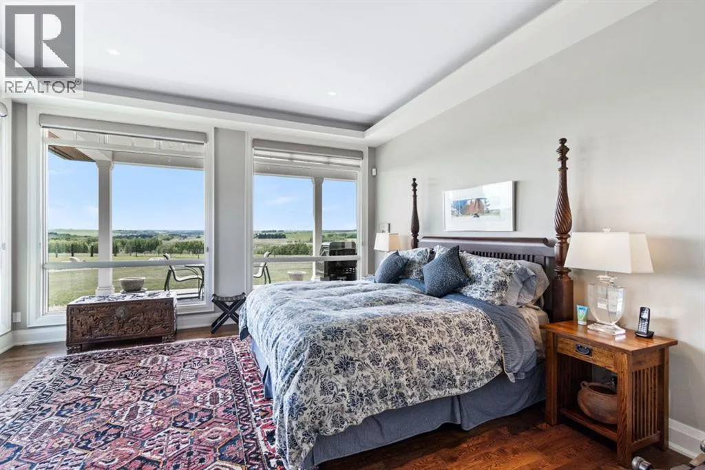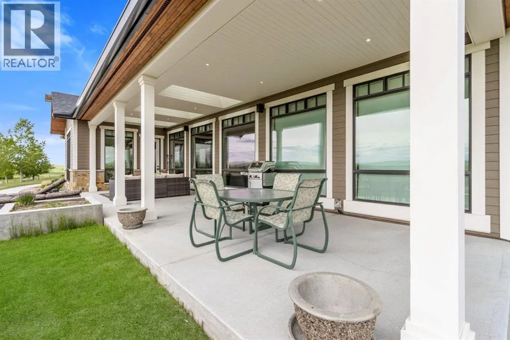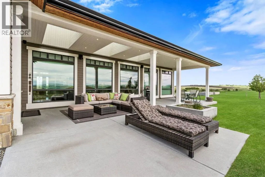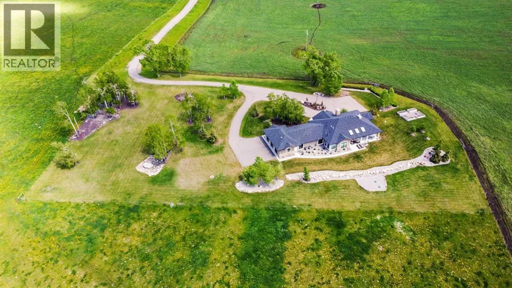Stunning Custom Built Bungalow sitting atop the biggest hill on 122 acres with breathtaking views in all directions. Unobstructed mountain views to the west, golf course to the north, the friendly hamlet of madden east and south for miles! Enter from your gated private paved lane-way and find this architectural thing of beauty at the peak. This home is just shy of 4000 sq/ft on the main level and boasts another 2700sq/ft of developed space in the basement. The main floor has gleaming hardwood flooring throughout along with slate entry and heated tile flooring in all the bathrooms. Oversized low UV transmission windows with Hunter Douglas blinds throughout helps capture the most amazing landscapes. The executive chefs kitchen has stainless steel appliances including a Wolff gas stove, Sub Zero fridge, Dacor wall oven and microwave. All cabinetry milled by Legacy with soft close and upgraded shelving and storage. Huge center island with Cambrian Black satin granite is a classic focal point in this exquisite home. There are two dining areas for all sizes of gatherings and a huge living room with descending TV from the ceiling and natural gas fireplace. The large master bedroom comes with a 4 piece en-suite with modern tiled shower, his/her sinks in Bianco Rhino marble and a walk in California closet. Main floor is completed with two other bedrooms with California closets and Jack n Jill 4 piece bathrooms, an office, and den adjacent dining room. The second fireplace is found in the library or study for those that like to kick back with a glass of wine and enjoy a good book. Basement is finished with a huge family/ games room and tons of storage. The attached triple garage measures 38x22 it has a separate entry and big bright windows and upgraded wood doors. The west facing concrete patio is covered with skylights so you can enjoy it in all weather! The property is professionally landscaped with mature trees and raised garden boxes for the green thumb. Extra features i nclude 2 independent furnaces and AC systems, in-floor heating, water softening system, instant hot water, in-wall Vacu flo, Sonos sound, Security system and more! Combination of pasture and grade A crop land with good perimeter fencing. Rare opportunity to own a beautiful parcel of land this size commutable to Calgary with an equally magnificent home to match! (id:27476)