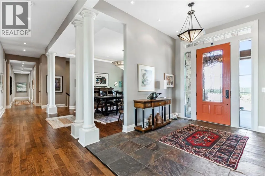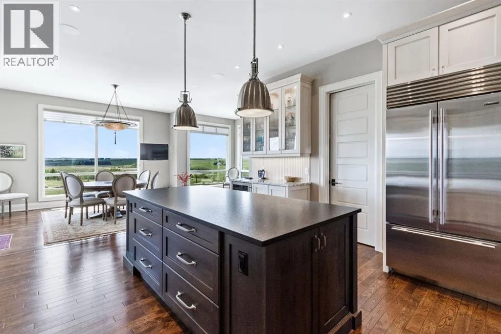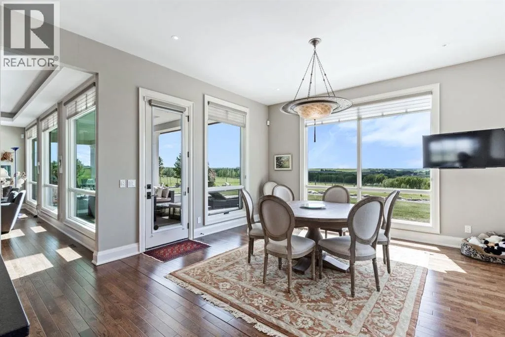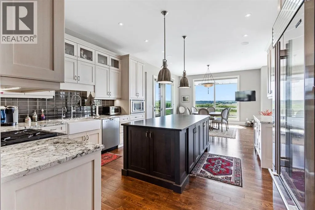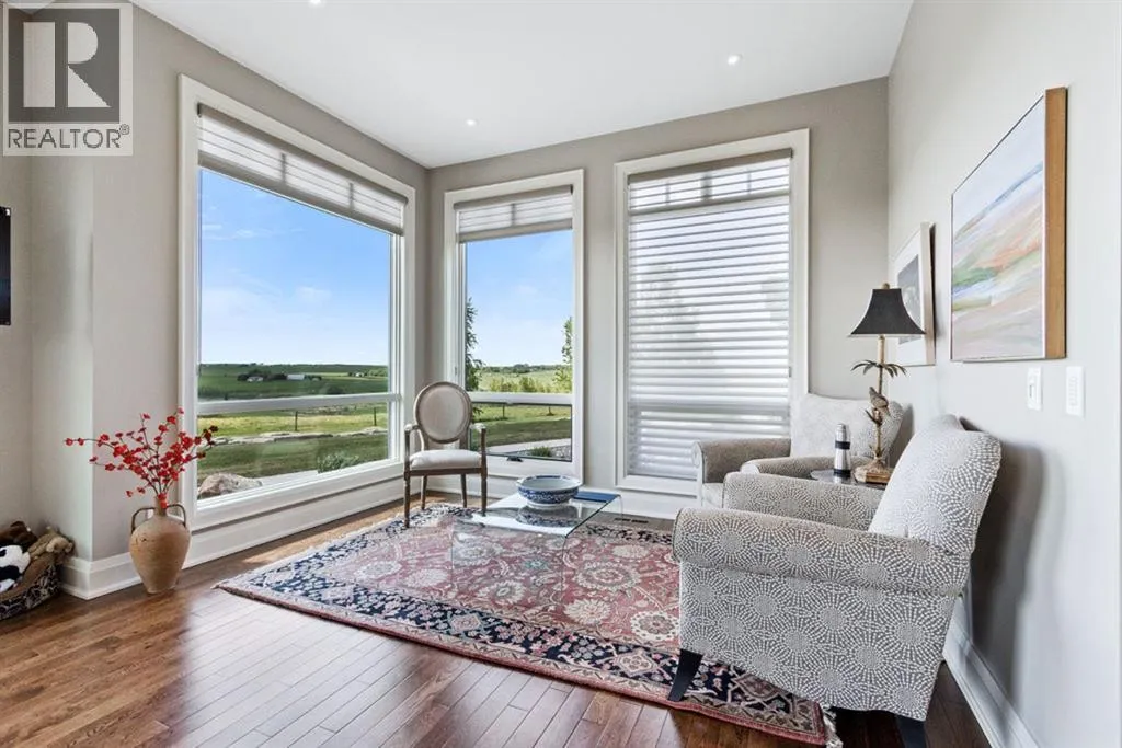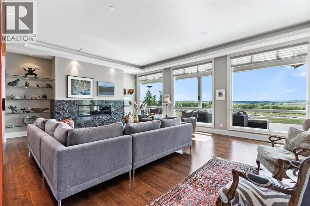 Stunning Custom Built Bungalow sitting atop the biggest hill on 122 acres with breathtaking views in all directions. Unobstructed mountain views to the west, golf course to the north, the friendly hamlet of madden east and south for miles! Enter from your gated private paved lane-way and find this architectural thing of beauty at the peak. This home is just shy of 4000 sq/ft on the main level and boasts another 2700sq/ft of developed space in the basement. The main floor has gleaming hardwood flooring throughout along with slate entry and heated tile flooring in all the bathrooms. Oversized low UV transmission windows with Hunter Douglas blinds throughout helps capture the most amazing landscapes. The executive chefs kitchen has stainless steel appliances including a Wolff gas stove, Sub Zero fridge, Dacor wall oven and microwave. All cabinetry milled by Legacy with soft close and upgraded shelving and storage. Huge center island with Cambrian Black satin granite is a classic focal point in this exquisite home. There are two dining areas for all sizes of gatherings and a huge living room with descending TV from the ceiling and natural gas fireplace. The large master bedroom comes with a 4 piece en-suite with modern tiled shower, his/her sinks in Bianco Rhino marble and a walk in California closet. Main floor is completed with two other bedrooms with California closets and Jack n Jill 4 piece bathrooms, an office, and den adjacent dining room. The second fireplace is found in the library or study for those that like to kick back with a glass of wine and enjoy a good book. Basement is finished with a huge family/ games room and tons of storage. The attached triple garage measures 38x22 it has a separate entry and big bright windows and upgraded wood doors. The west facing concrete patio is covered with skylights so you can enjoy it in all weather! The property is professionally landscaped with mature trees and raised garden boxes for the green thumb. Extra features i nclude 2 independent furnaces and AC systems, in-floor heating, water softening system, instant hot water, in-wall Vacu flo, Sonos sound, Security system and more! Combination of pasture and grade A crop land with good perimeter fencing. Rare opportunity to own a beautiful parcel of land this size commutable to Calgary with an equally magnificent home to match! (id:27476)