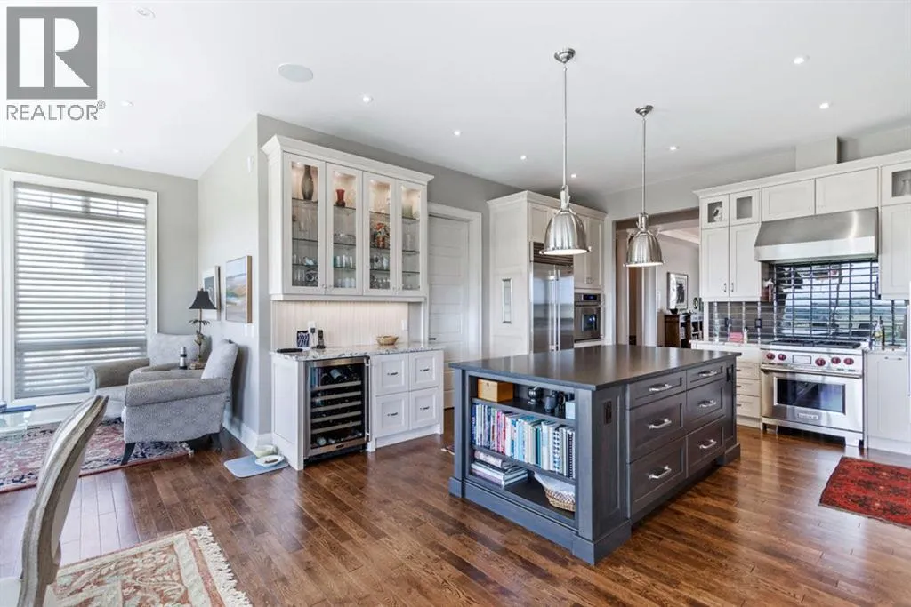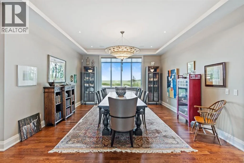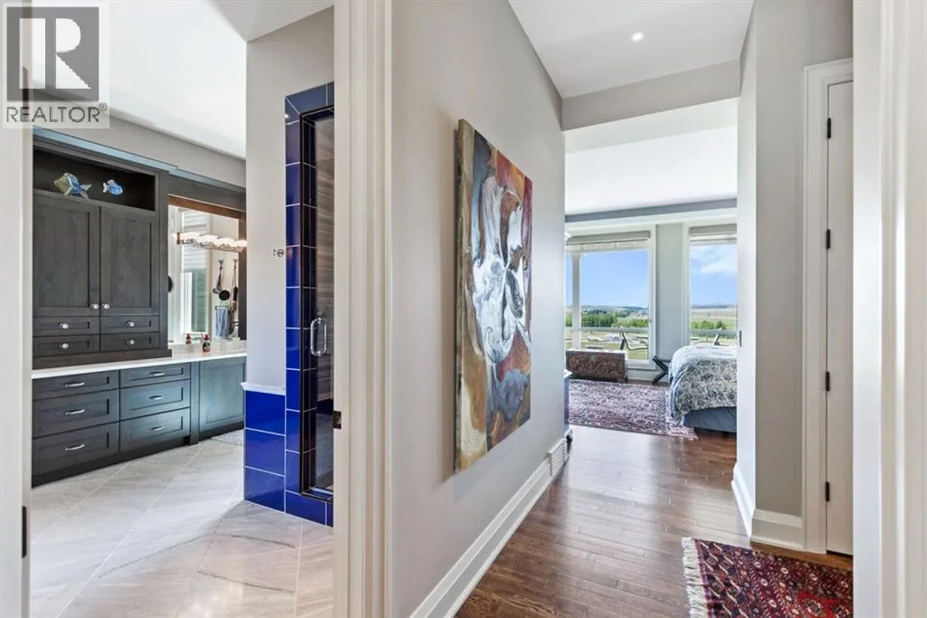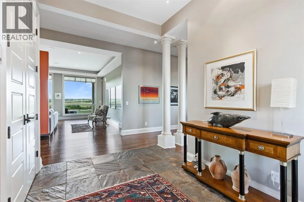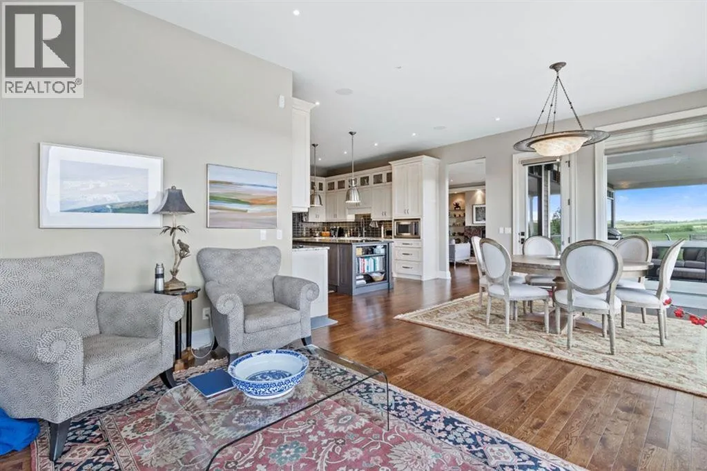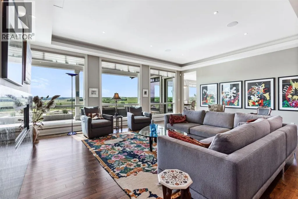 Stunning Custom Built Bungalow sitting atop the biggest hill on 122 acres with breathtaking views in all directions. Unobstructed mountain views to the west, golf course to the north, the friendly hamlet of madden east and south for miles! Enter from your gated private paved lane-way and find this architectural thing of beauty at the peak. This home is just shy of 4000 sq/ft on the main level and boasts another 2700sq/ft of developed space in the basement. The main floor has gleaming hardwood flooring throughout along with slate entry and heated tile flooring in all the bathrooms. Oversized low UV transmission windows with Hunter Douglas blinds throughout helps capture the most amazing landscapes. The executive chefs kitchen has stainless steel appliances including a Wolff gas stove, Sub Zero fridge, Dacor wall oven and microwave. All cabinetry milled by Legacy with soft close and upgraded shelving and storage. Huge center island with Cambrian Black satin granite is a classic focal point in this exquisite home. There are two dining areas for all sizes of gatherings and a huge living room with descending TV from the ceiling and natural gas fireplace. The large master bedroom comes with a 4 piece en-suite with modern tiled shower, his/her sinks in Bianco Rhino marble and a walk in California closet. Main floor is completed with two other bedrooms with California closets and Jack n Jill 4 piece bathrooms, an office, and den adjacent dining room. The second fireplace is found in the library or study for those that like to kick back with a glass of wine and enjoy a good book. Basement is finished with a huge family/ games room and tons of storage. The attached triple garage measures 38x22 it has a separate entry and big bright windows and upgraded wood doors. The west facing concrete patio is covered with skylights so you can enjoy it in all weather! The property is professionally landscaped with mature trees and raised garden boxes for the green thumb. Extra features i nclude 2 independent furnaces and AC systems, in-floor heating, water softening system, instant hot water, in-wall Vacu flo, Sonos sound, Security system and more! Combination of pasture and grade A crop land with good perimeter fencing. Rare opportunity to own a beautiful parcel of land this size commutable to Calgary with an equally magnificent home to match! (id:27476)