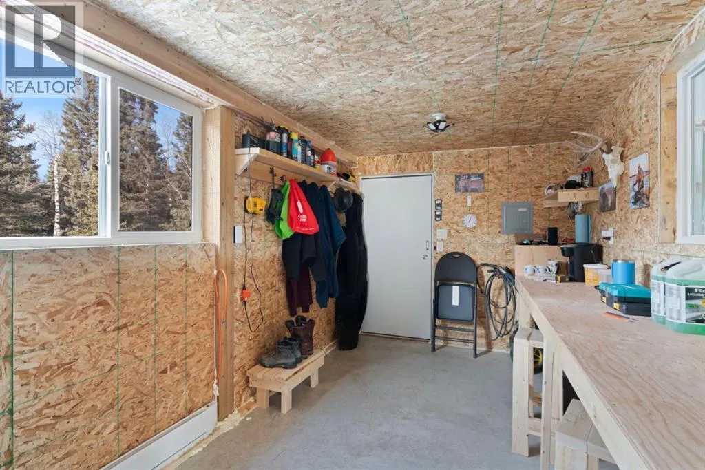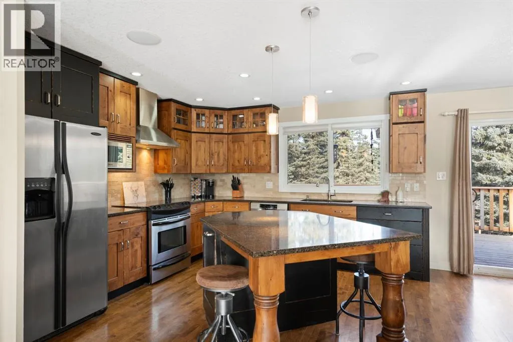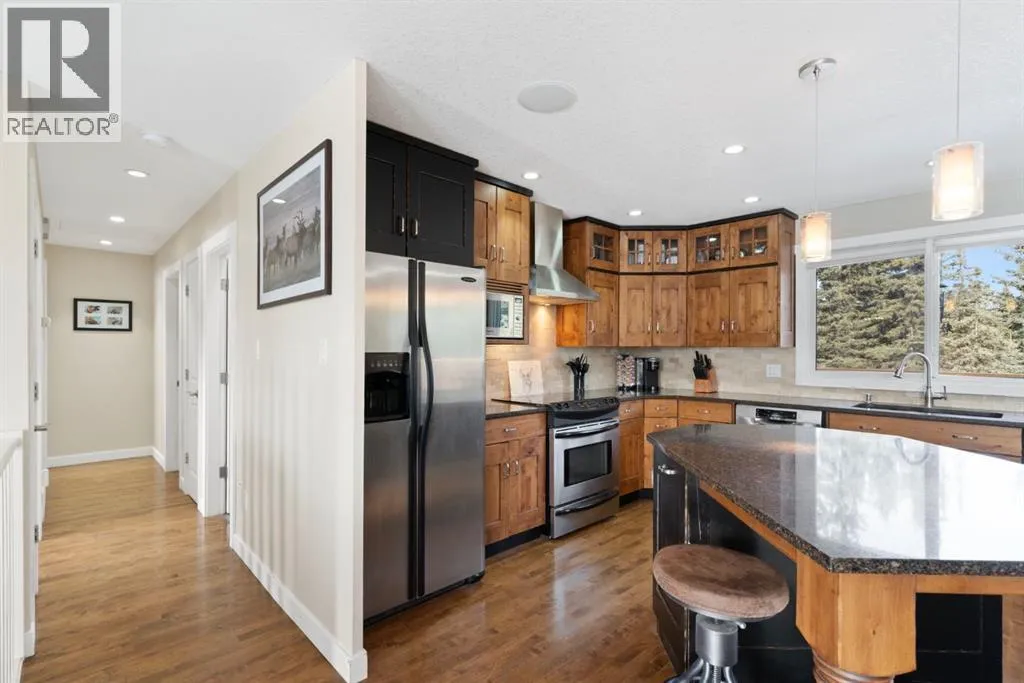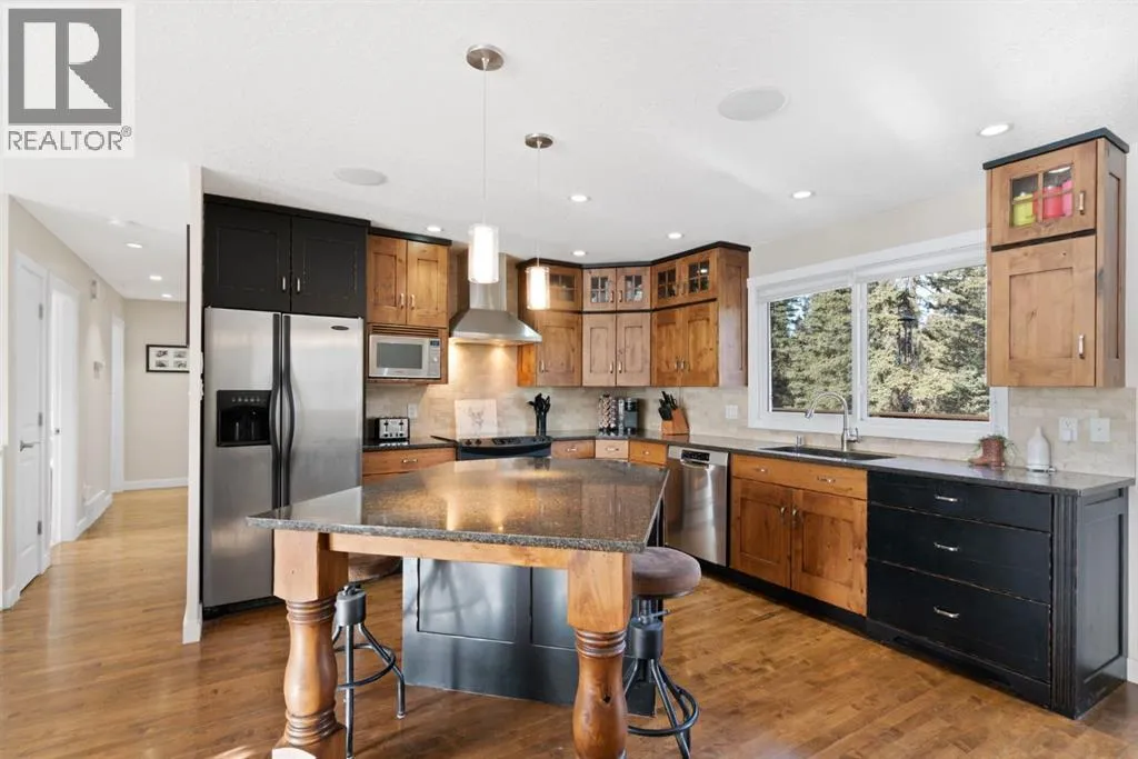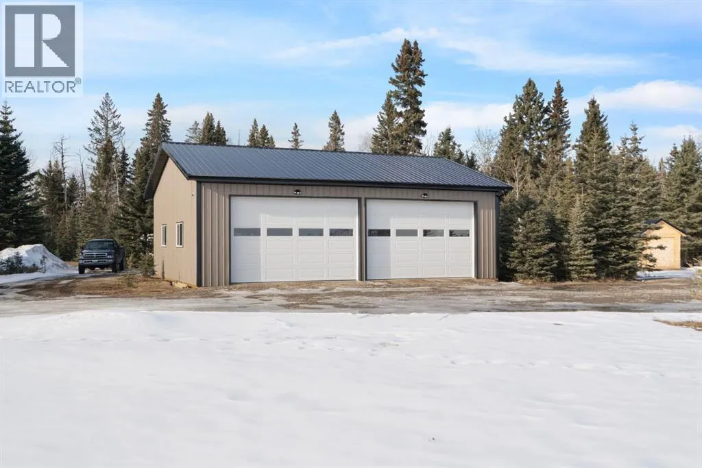 This property is set back from the road and sheltered by a beautiful stand of mature spruce and poplar trees, the home enjoys exceptional privacy while still providing open pasture and yard space for animals, recreation, or future plans. The setting offers wide-open skies, tranquil surroundings, and true separation from neighbours.The well-maintained bi-level home features a bright and welcoming main floor with warm hardwood flooring and large windows that capture natural light and views of the surrounding landscape. The kitchen is both functional and inviting, complete with rich wood cabinetry, granite countertops, stainless steel appliances, and a central island with seating. The adjacent dining area opens onto an expansive wraparound deck that spans the length of the home, creating a seamless indoor-outdoor connection and providing incredible space for entertaining, relaxing, and enjoying the peaceful setting.The main level includes a spacious primary bedroom, two more bedrooms, and a full 4-piece bathroom. The unfinished downstairs offers a generous recreation space, laundry area, and substantial storage, with room to further customize to suit your needs. This home has new siding, new roof, 100 ft well, New septic system, New services in last 3 years. Home was built in 1980 and moved onsite in Nov 2021 with updates done. The detached 40 x 32 ft shop is a standout feature, offering 12 ft high ceilings, overhead doors, excellent lighting, dedicated workspace, and abundant room for vehicles, tools, and projects. Whether youâre a hobbyist, tradesperson, or simply need serious storage, this shop delivers.If youâve been searching for a private acreage that offers usable land, established trees, and functional infrastructure, all within a reasonable drive to surrounding communities, this property presents an exceptional opportunity to enjoy rural living without compromise." Mountain views from the West side of the land. Great quad-ing trails and lots of d eer, elk, moose and other creatures have been seen on this property. Properties in this area sell fast. Call to view before its gone. (id:27476)