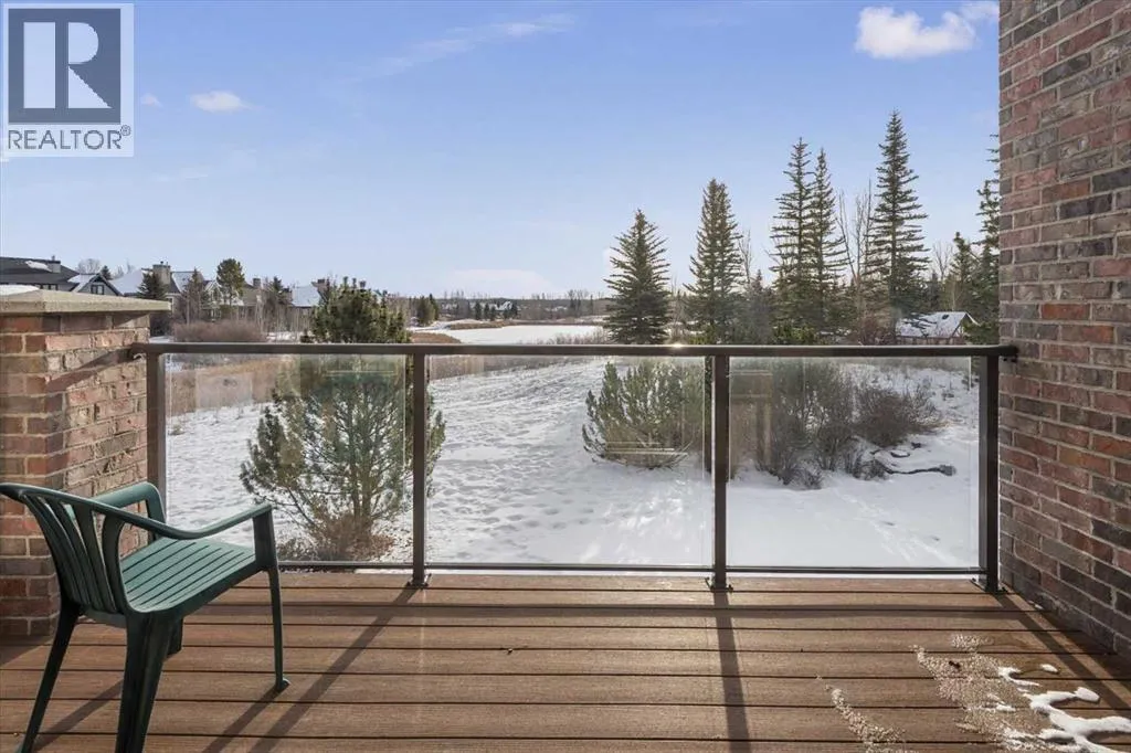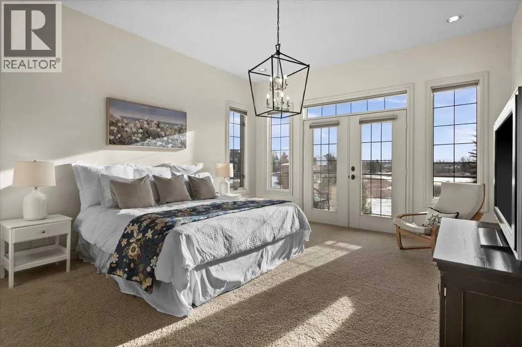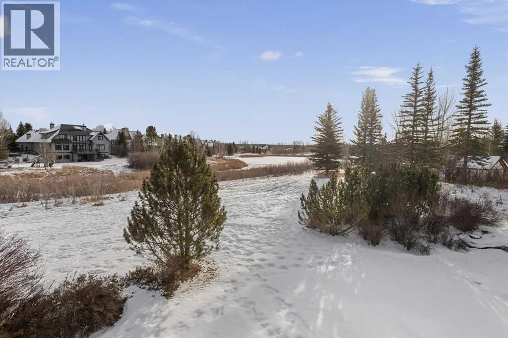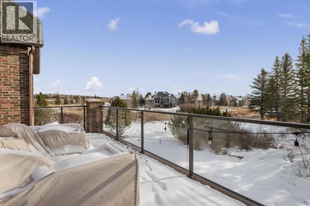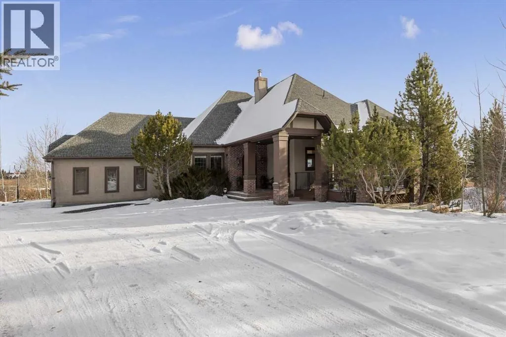 * OPEN HOUSE SATURDAY FEB 7, 1-3 PM* Stunning walk-out bungalow perfectly positioned on a rare, private one-acre lot backing onto a tranquil pond in prestigious Elbow Valley. This warm and open home is flooded with natural light, with expansive windows that seamlessly bring the outdoors in. The interior has been refreshed with new paint throughout most of the home, updated light fixtures, and renovated lower-level bathrooms. The gourmet kitchen features ceiling-height cabinetry, stainless steel appliances, a central island, and walk-in pantry, flowing into a spacious dining area with access to the west-facing wraparound deck with sleek glass railing, ideal for enjoying the serene views. The great room impresses with vaulted ceilings, a focal gas fireplace custom built-ins and gorgeous views. An expansive office with wall of built-ins is perfect for days when you are working from home. The primary retreat offers a 5-piece ensuite, walk-in closet, and private balcony. Premium main floor finishes include 10-foot ceilings, 8â solid core doors, and hardwood flooring. The fully developed walk-out level features 9-foot ceilings, radiant in-floor heating, three bedrooms, two full bathrooms, bar, fireplace and expansive recreation space. Oversized triple garage provides ample space for vehicles, storage, or toys. Elbow Valley is a master planned bareland condo community with resident access to lakes, peddle boats, beach, clubhouse, tennis/pickleball courts, basketball courts, and walking paths. A truly special property in an outstanding community! (id:27476)