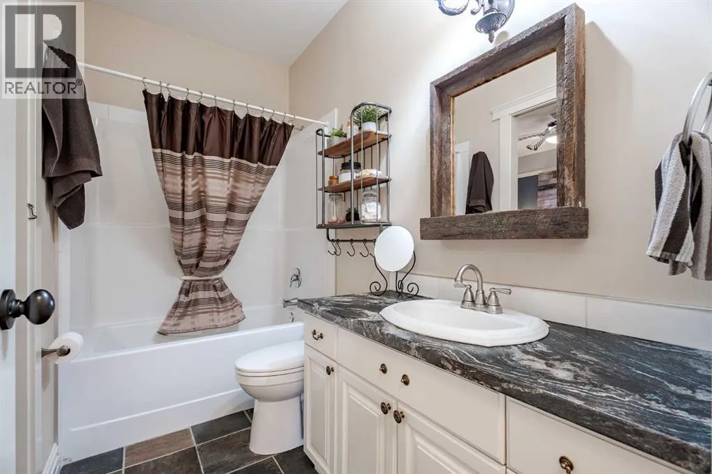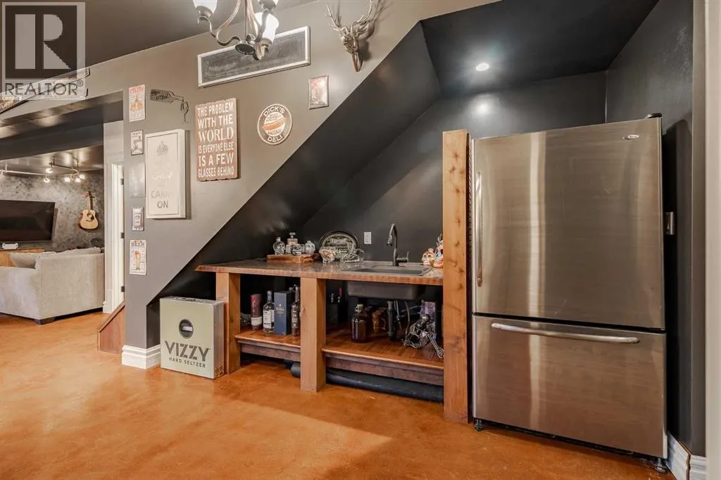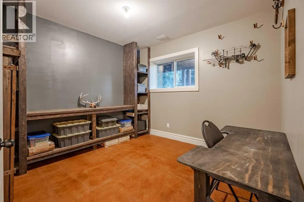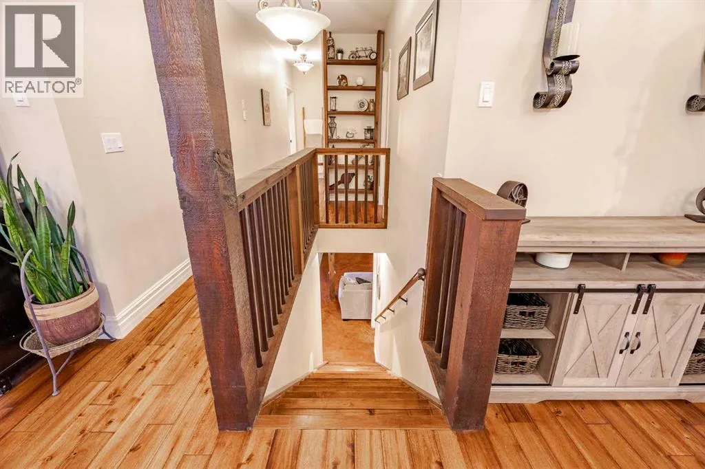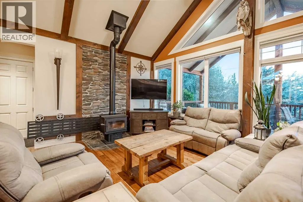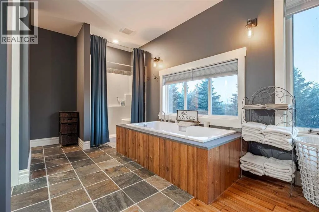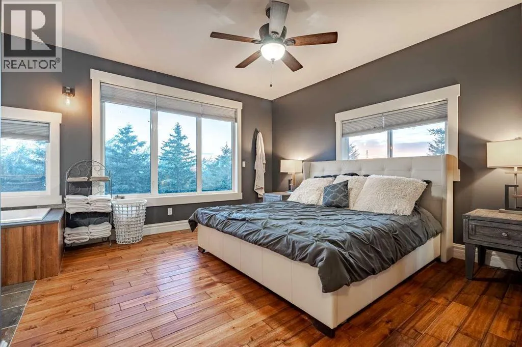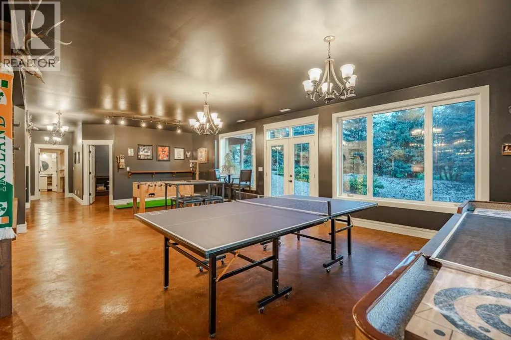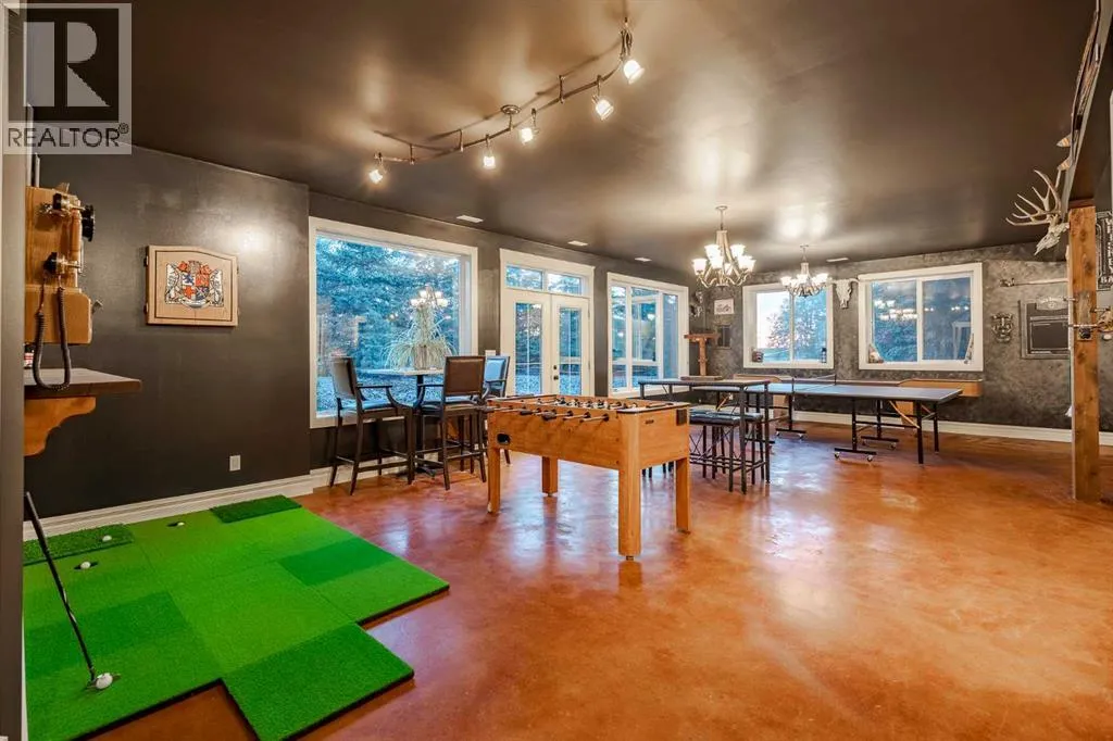 Welcome to this extraordinary walkout bungalow offering over 4,000 sq ft of thoughtfully designed living space with 6 bedrooms, 5 bathrooms, a heated oversized quad garage, a massive 40â x 60â insulated shop, and nearly 20 acres of endless possibility just minutes from Calgary. From the moment you arrive, the striking A-frame architecture stretches from the front elevation all the way to the covered back porch, perfectly framing panoramic mountain views. Step into the grand main level, where soaring vaulted ceilings with exposed beams and expansive west-facing windows fill the space with natural light and unforgettable views. The gourmet kitchen features upgraded cabinetry, a large center island, granite countertops, and premium stainless appliances designed for effortless entertaining. The spacious dining area easily accommodates large gatherings, while the open-concept living room is anchored by a cozy gas fireplace.Just down the hall, the generous primary retreat offers an open 4-piece ensuite and a spacious walk-in closet. Two additional bedrooms provide comfortable spaces for family or guests and share access to a well-appointed main bathroom. A versatile office or den is tucked away near the front entry. Downstairs, the walkout basement extends the living space with a massive recreation room, wet bar, three additional bedrooms, and two full bathrooms, including one ensuite â perfect for multi-generational living or hosting guests.Outside, the property continues to impress with an attached heated oversized quad garage and a 40â x 60â powered shop ready for your next project, hobby, or home-based business. The multiple livestock areas are thoughtfully arranged and include 3 automatic waterers to support a wide range of agricultural uses. Whether you're envisioning a private rural retreat, a hobby farm, or a future development opportunity, this nearly 20-acre parcel offers it all â and with potential for subdivision pending municipal approval, the possibiliti es are truly endless.All this just 10 minutes to Stoney Trail and 15 minutes to shopping, dining, and amenities in Seton and Mahogany. This is more than a home â itâs your gateway to rural luxury, convenience, and future opportunity. Donât miss your chance to experience it. (id:27476)