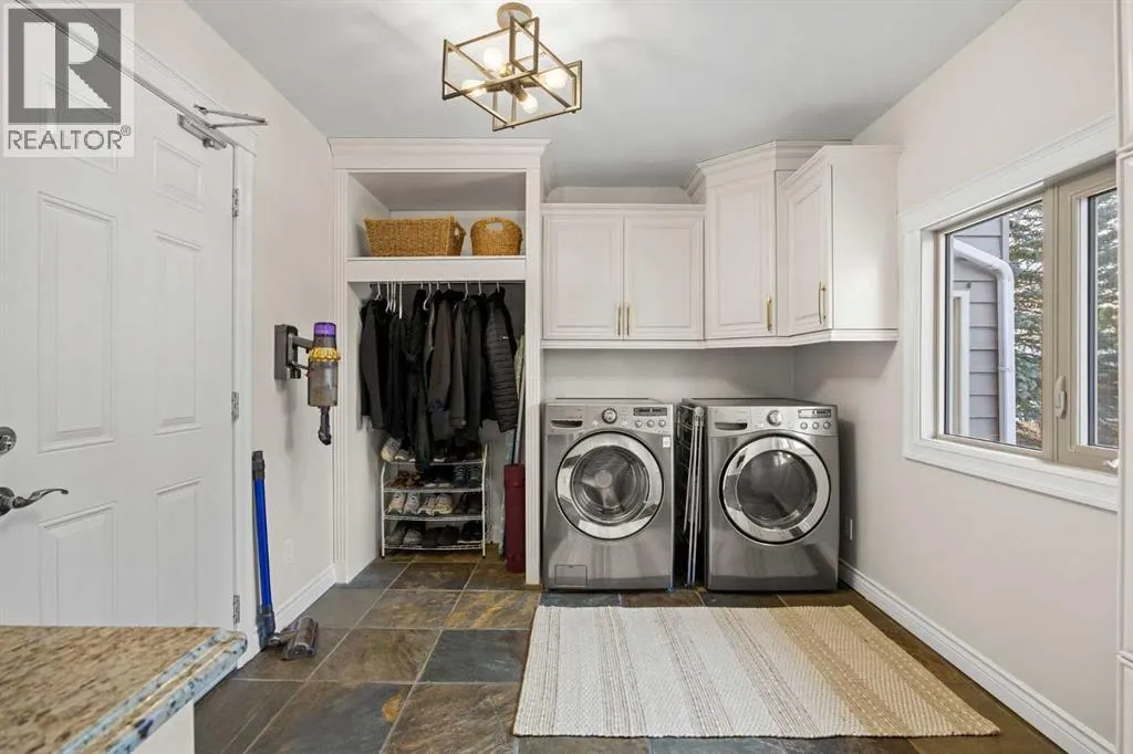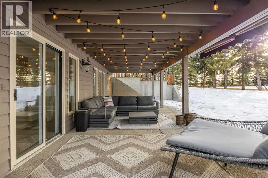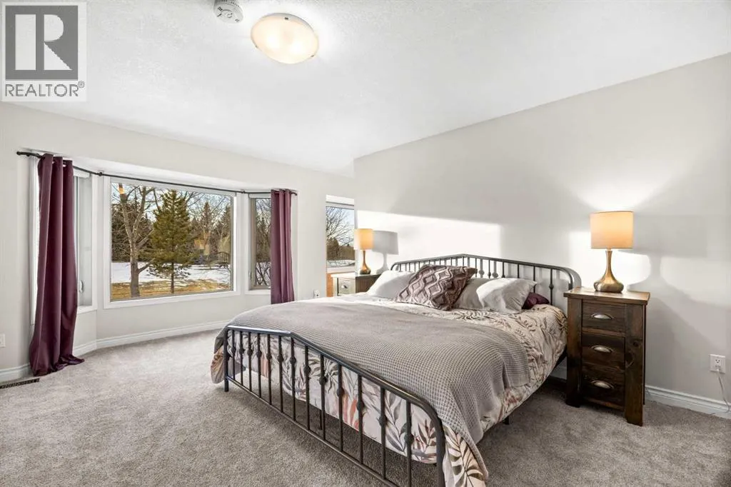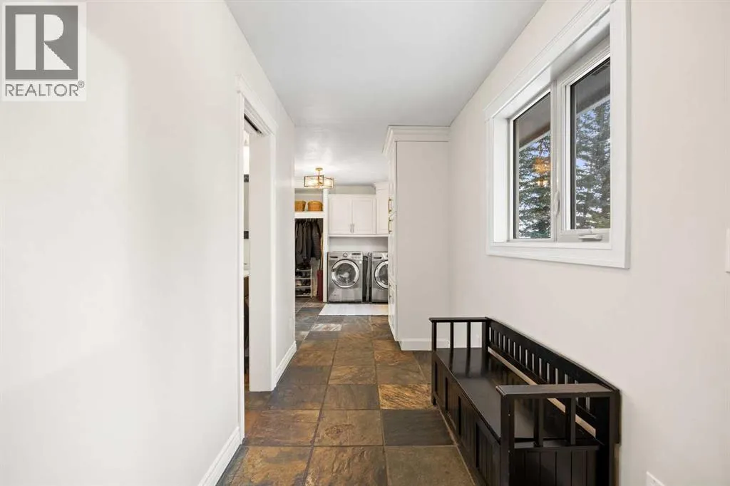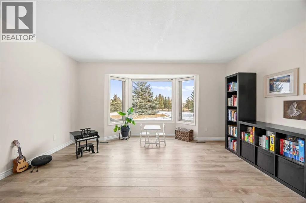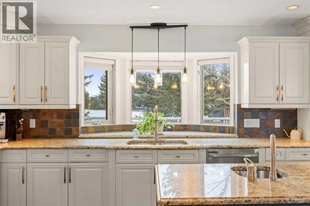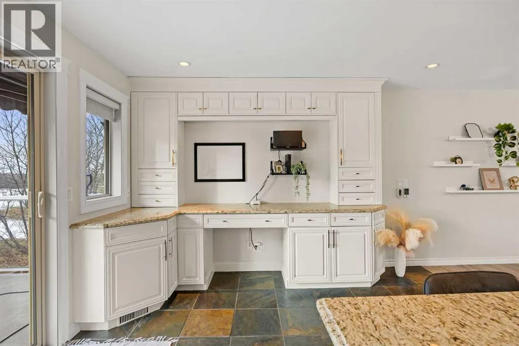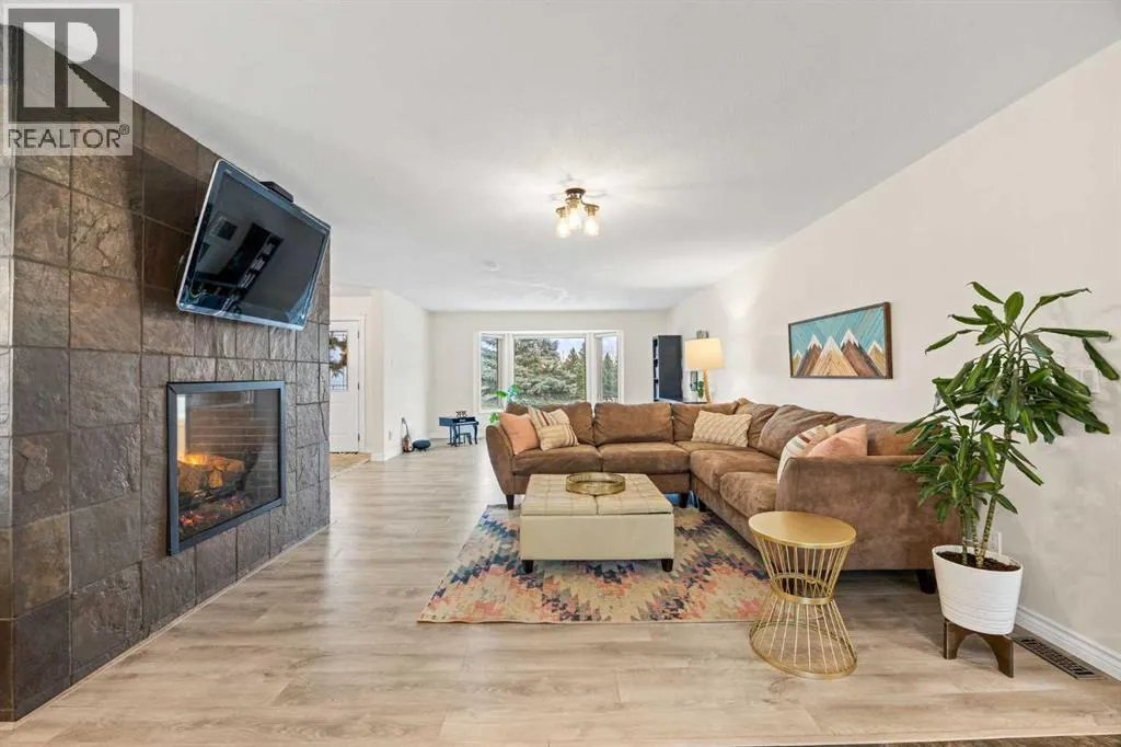 This renovated walkout bungalow is ideally situated on 2 acres of pristine land in the sought-after Elbow River Estates, offering mountain views, exceptional privacy, and a rare combination of space and lifestyle.The home backs directly onto the Glencoe Golf and Country Club drivewayâquite literally placing world-class golf just steps from your backyard. In addition, Elbow Springs Golf Club, Pinebrook Golf & Country Club, and River Spirit Golf Club are all moments away, making this an exceptional location for golf enthusiasts.Inside, the home is bright, open, and thoughtfully updated, featuring new flooring throughout (2024), including heated slate tile, and a striking double-sided fireplace anchoring the main living and dining spaces. The expansive kitchen is designed for entertaining, offering custom cabinetry, granite countertops, heated slate floors, and a massive centre island that truly serves as the heart of the home.Enjoy sunrises from the front porch and spectacular sunsets from the west-facing back deck, where mountain views create a stunning natural backdrop. The west-facing primary retreat features his-and-hers closets and a renovated 5-piece ensuite finished with heated travertine tile. Two additional large bedrooms and a full bathroom complete the main level.The fully developed walkout basement adds outstanding versatility with a fourth bedroom, full bathroom, wine room, family room, media space, gym, and more. A wet sauna, accessible from the exterior, enhances the homeâs wellness appeal. Outside, a concrete slab at the rear of the home is perfectly suited for a future hot tub or pool, creating an exceptional outdoor entertaining area.Major mechanical upgrades include new high-efficiency furnaces, hot water tank, and water softener (2021). Garage space is equally impressive, featuring an oversized attached 2-car garage plus a 4-car oversized attached garage/shop, fully insulated and heatedâideal for vehicles, hobbies, or serious workspace. Residents of Elbow River Estates enjoy a true community lifestyle with access to a playground, tennis courts, basketball courts, a winter outdoor rink, and a community horse arena, all while being just minutes from Calgary. (id:27476)