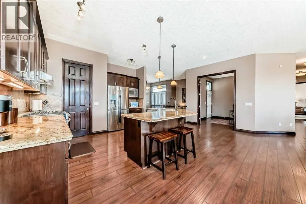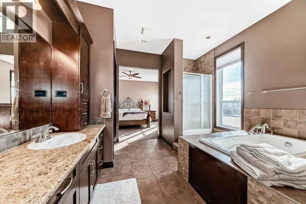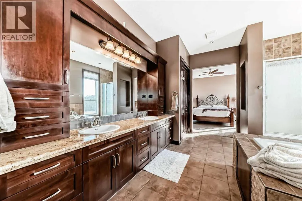 When you DREAM, do you dream of living a "City Close, Country Quiet" existence, on a 18 acre estate, boasting over 2100 sq ft (main level) and over 3650 total developed sq ft , just 1.5 miles from Calgary's border, with MASSIVE upside as Calgary grows over the next few decades? WELCOME home. The heart of the home, the kitchen, opens up to the great room creating a massive open space. The kitchen is a chefâs delight with massive granite countertops, gas oven, upgraded stainless steel appliances, timeless real wood shaker cabinets, with undercabinet lighting and a gargantuan central island. The adjacent great room hosts the cozy gas fireplace and ample sitting area. Both the kitchen and great room have amazing views of the south and west of the yard, and are bathed in sunshine. Down the hall, past the child bedroom and 4 pce bath, we find the master retreat, with it's decadent ensuite, and walk-in closet. Completing the main level is the rear laundry / mud room and is the main floor den / office, with it's own door for work-from-home types that need to have clients stop by. The walkout lower level boasts a MASSIVE room, the width of the house, 2 bedrooms, and another 4 pce bath, all heated with hydronic in-concrete-slab heat (n. gas boiler). Outside you have oodles of outbuildings, hundreds of trees, and a private oasis tucked into the trees to the north. Seldom to you feel so completely private this close to a major city. If you love horses, donkeys, llama, or chickens it's fully setup with large corral with shelter, tack and feed room, and 4 season livestock waterer. Adjacent is a fully insulated chicken coop with treed outdoor space for a happy flock. Fully fenced paddock for livestock, and mixed alfalfa / grass hayfield for cutting/grazing. Land is zoned R-RUR which gives lower taxation and provides for a wide range of potential options for development (accessory buildings, home based businesses, etc). A large part of the value is in the land, wit h 18.68 acres or over 813 000 sq ft; put another way, it would fit over 220 "average" new lots in Calgary. This much space is both a private oasis for you and your family, but also the long term redevelopment gain as HUNDREDS of families could eventually live here, post development. The mind boggles at the potential future returns. Although Calgaryâs city limits are only 1.4 miles away, it's possible Airdrie could annex first. It is a city close, but country quiet. Call your agent today to book a showing. (id:27476)