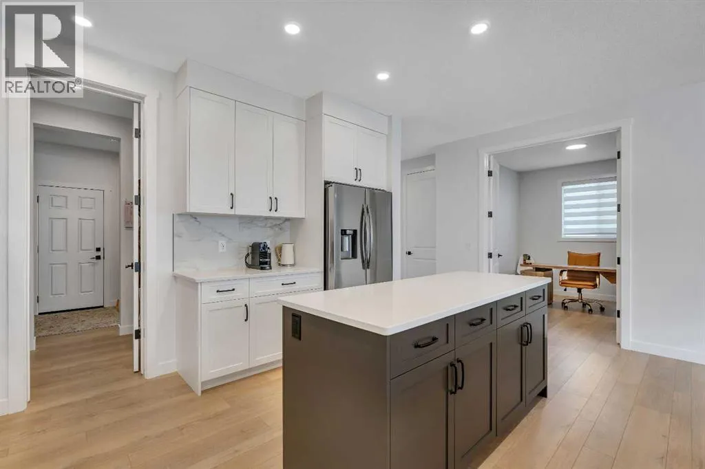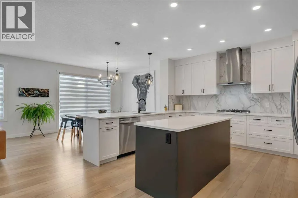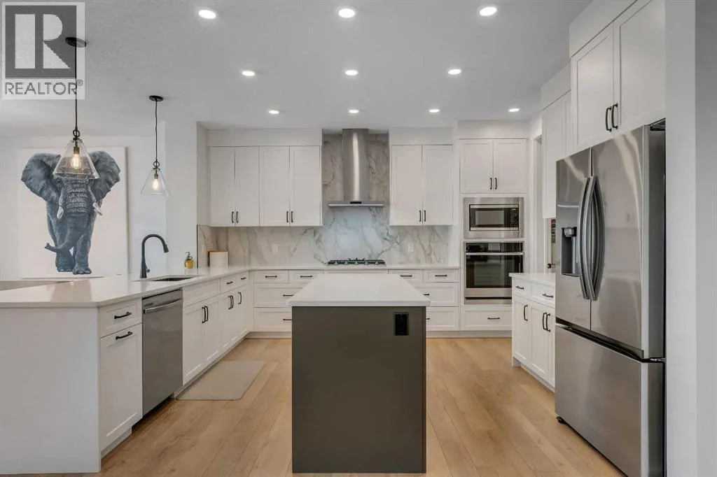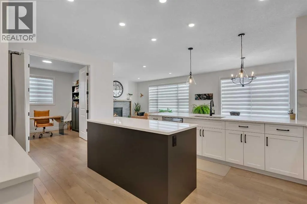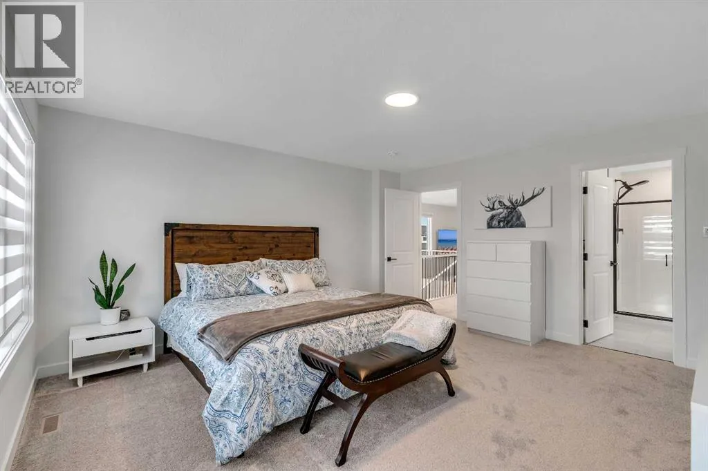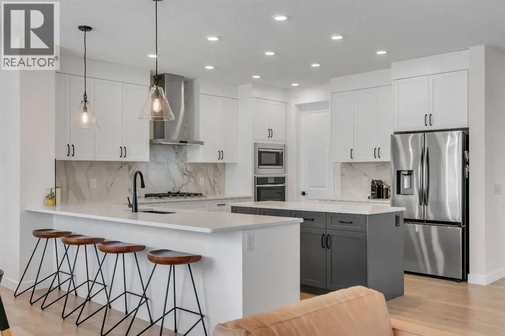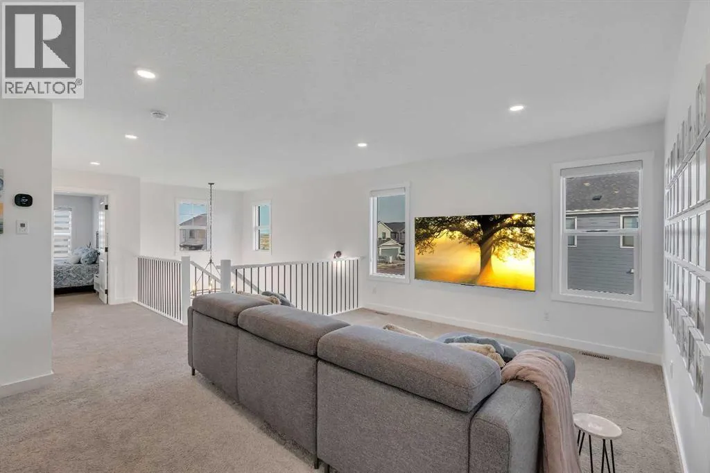 Welcome to 649 Sailfin Drive, located in the brand new lake community of Harmony just 10 minutes west of Calgary and approximately 30 minutes to the mountains, where you are buying more than just a home but a true lifestyle. This 2025 Daytona built home presents like new and features numerous upgrades throughout including being situated on an oversized lot and in one of the most desirable phases of Harmony within walking distance to the lake and community amenities. Offering over 2600 sq ft of living space with 3 bedrooms and 2.5 bathrooms, the layout is both functional and thoughtfully designed for families. The main floor welcomes you with a large foyer, private office with French doors, 2 piece powder room, and a spacious living room centred around a gas fireplace, perfect for family time or entertaining after a day at the lake. The dining area flows seamlessly into the chefâs kitchen, showcasing full height custom cabinetry, a gas range, built in wall oven and microwave, quartz countertops throughout, a large breakfast bar, and an oversized island with plenty of space for a growing family. This level is completed by a massive walk through pantry that connects to the mudroom with custom lockers and direct garage access, ideal for busy households. Upstairs you will find a large bonus room, 3 bedrooms, and a well planned layout. The primary bedroom measures approximately 14.5 by 15.6 ft and features a large walk in closet along with a spa inspired ensuite offering a double vanity, custom stand up shower, and standalone soaker tub. The second and third bedrooms are generously sized and each includes a large walk in closet. You will also find a spacious laundry room with sink and a full 4 piece bathroom on this level. Mechanical highlights include 2 high efficiency furnaces, 2 central A C systems, and a sump pump. Additional upgrades include a custom high end blind package throughout, railing upgrades, and many more. Why wait 12 months for a new home when you can mov e in today and save the GST. Set in the award winning community of Harmony with its 2 private lakes, world class golf at Mickelson National, extensive pathway system, playgrounds, and future village centre, this home offers an exceptional blend of comfort, quality, and lifestyle. Please book your private shwoing today. (id:27476)